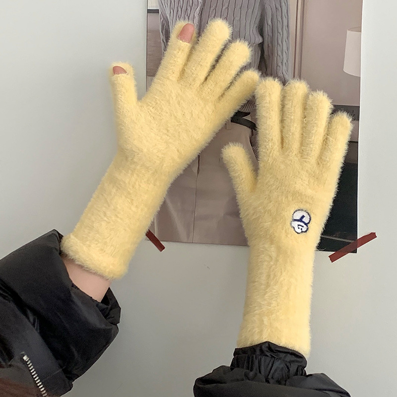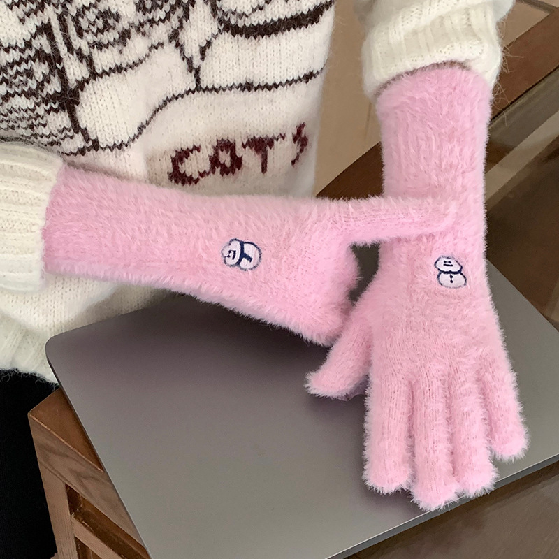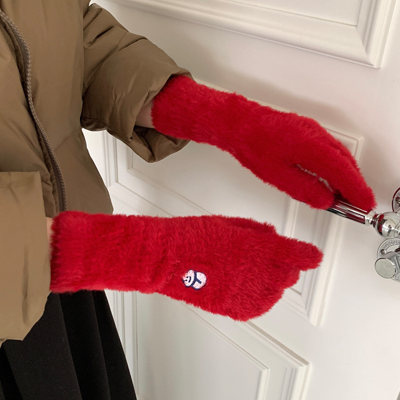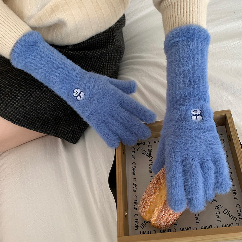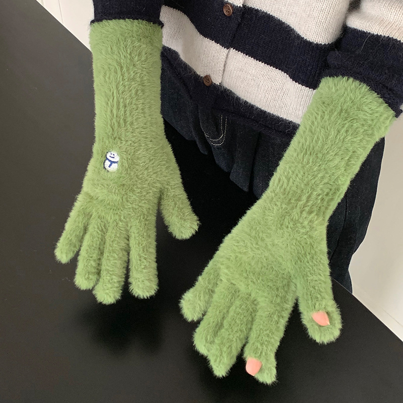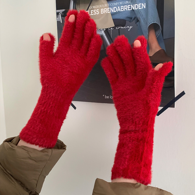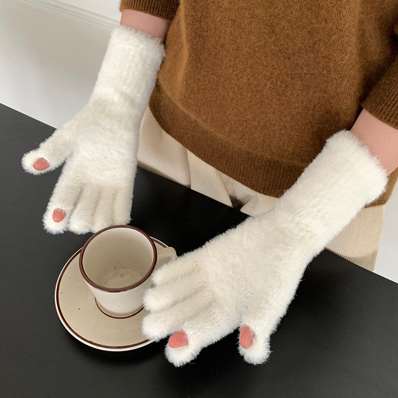 여행 장갑 여성의 가을과 겨울 부드러운 대학 스타일 솔리드 컬러 니트 핑거 따뜻한 방한 라이딩 큰 어린이 봄스토어 가기