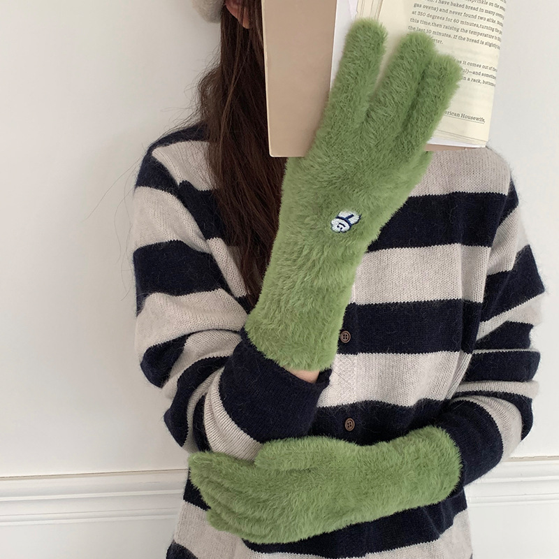 여행 장갑 여성의 가을과 겨울 부드러운 대학 스타일 솔리드 컬러 니트 핑거 따뜻한 방한 라이딩 큰 어린이 봄