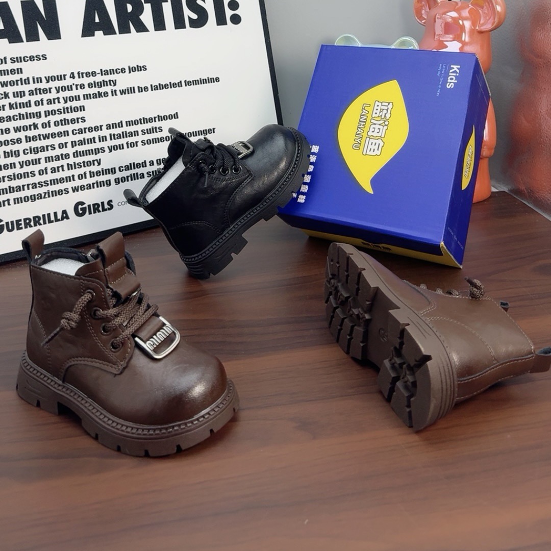 푸른 바다 물고기 소년 부츠 검은 겨울 어린이 부드러운 바닥 마틴 부츠 아기 패션 두면 부츠 작은 노란색 부츠 도매