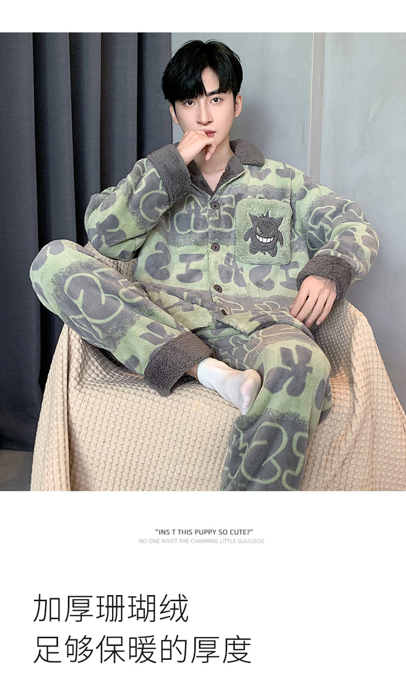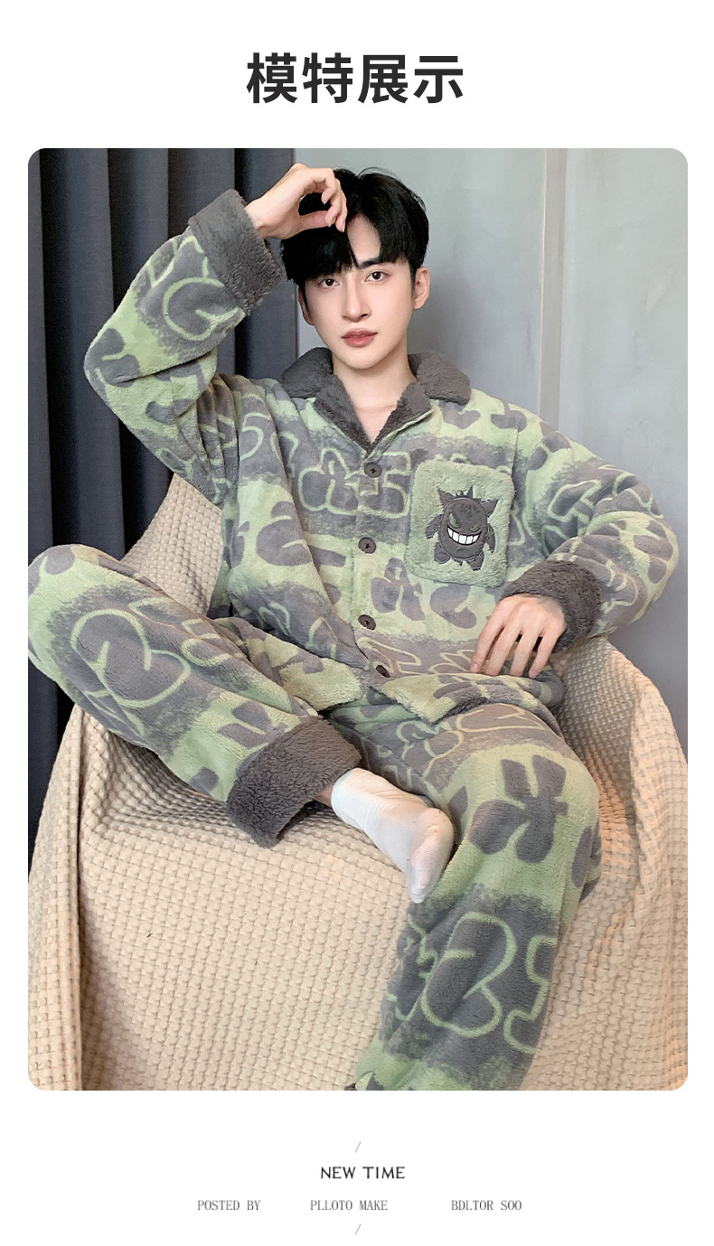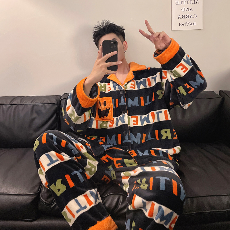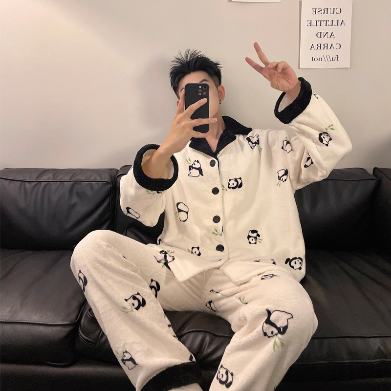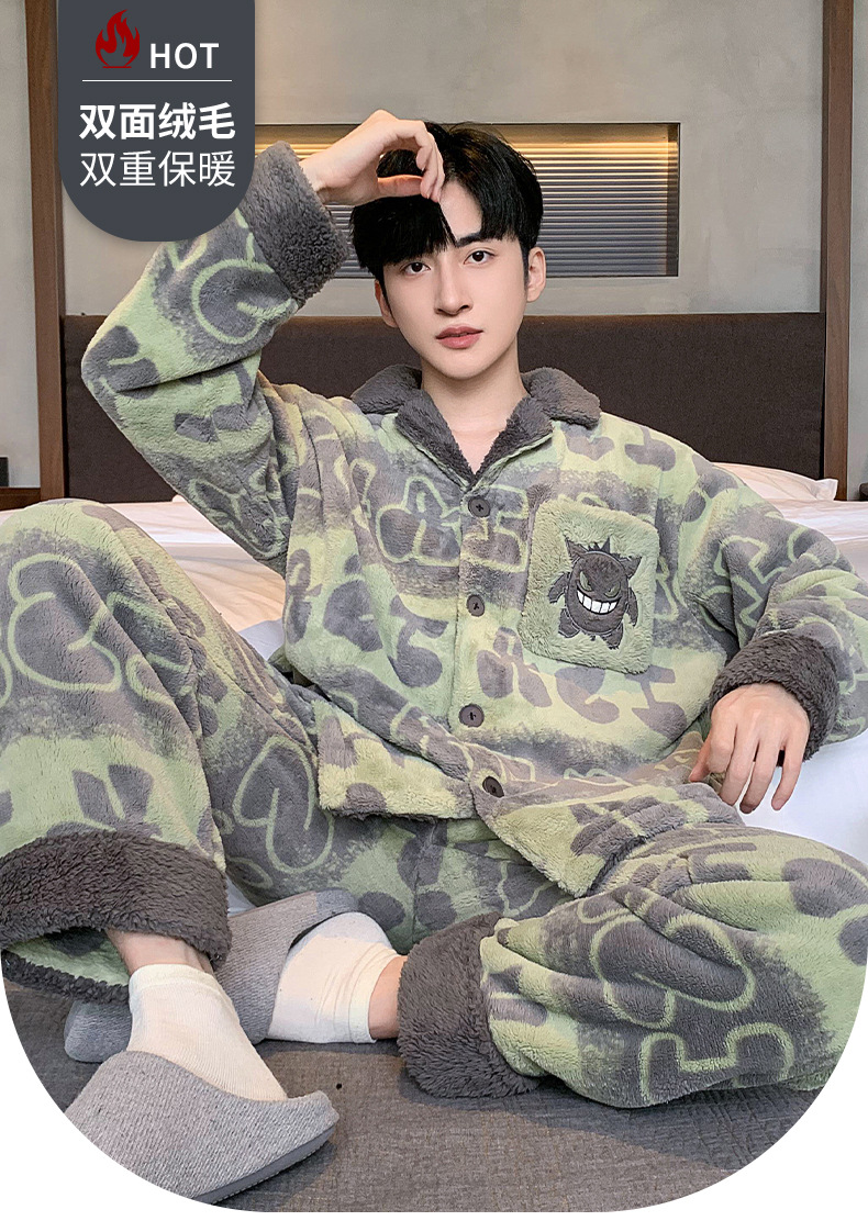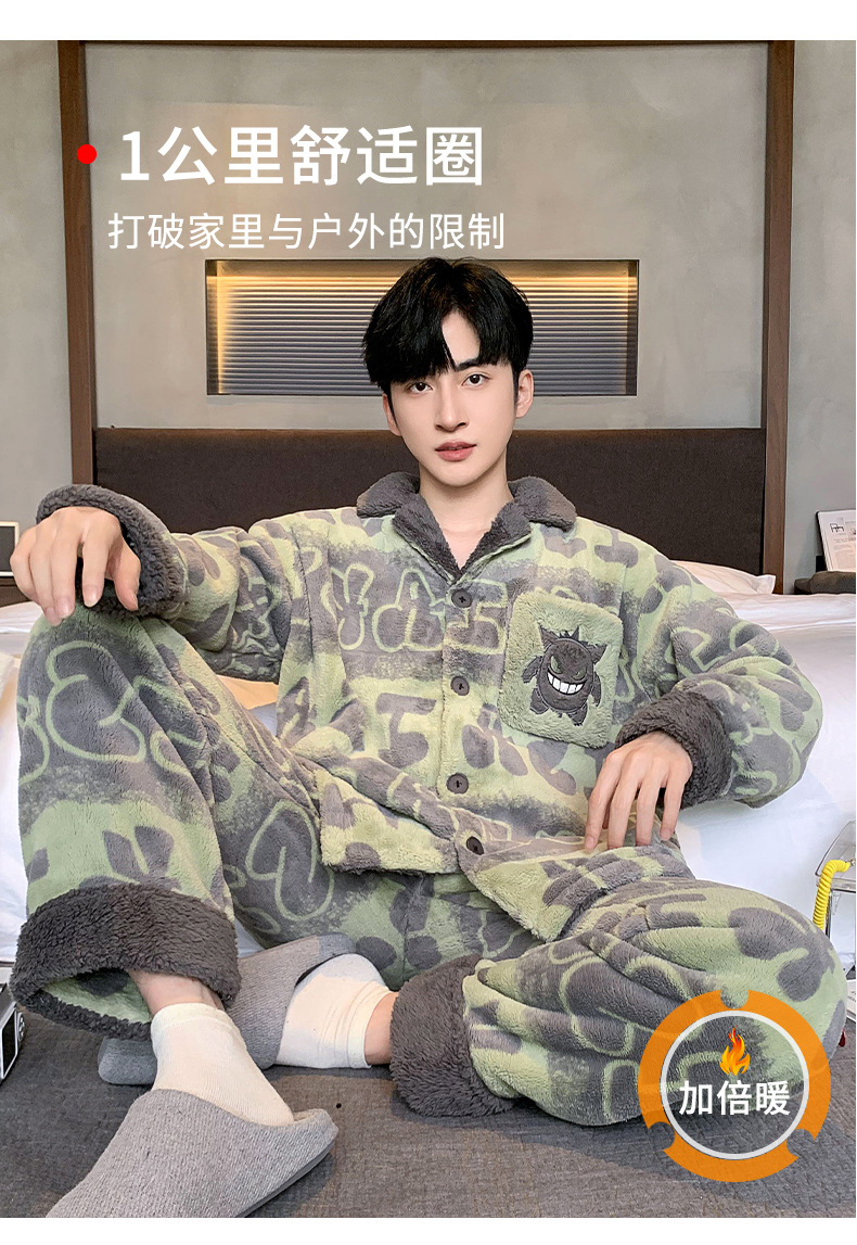 겨울 잠옷 남자 기모 두꺼운 산호 양털 만화 캐주얼 플러스 사이즈 플란넬 남자 홈 옷 투피스 세트스토어 가기