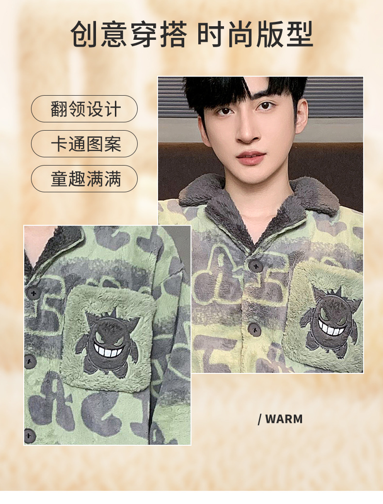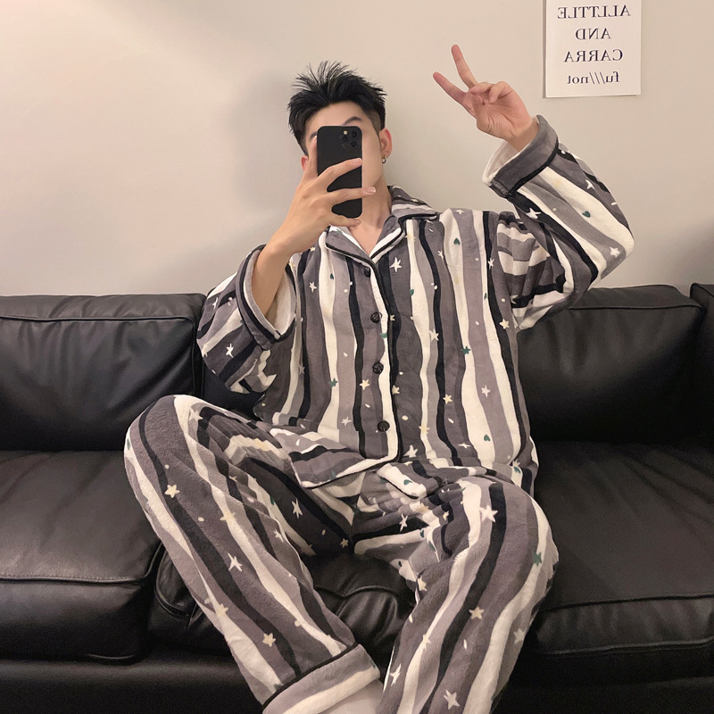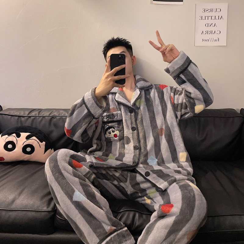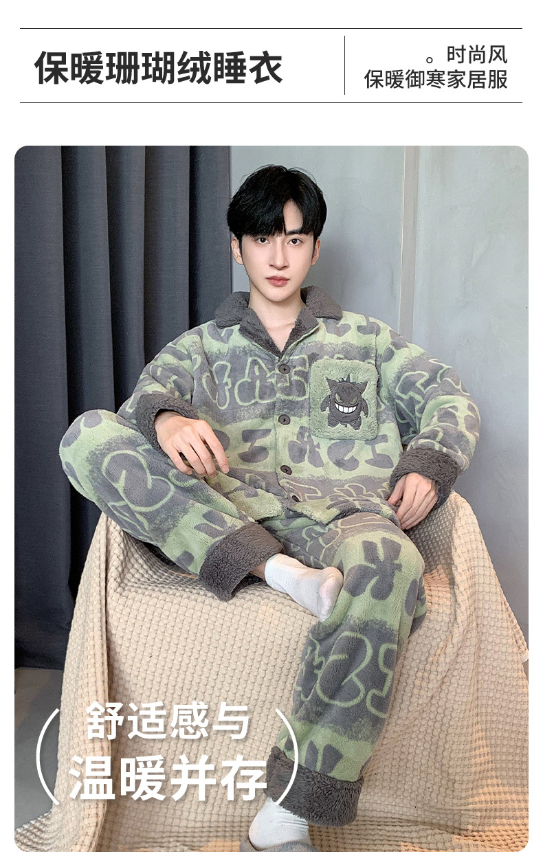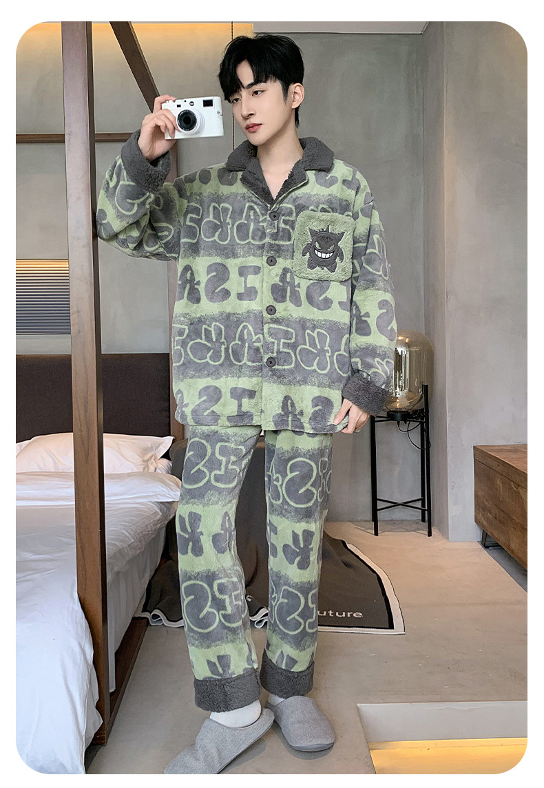 겨울 잠옷 남자 기모 두꺼운 산호 양털 만화 캐주얼 플러스 사이즈 플란넬 남자 홈 옷 투피스 세트스토어 가기