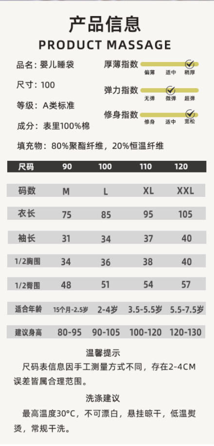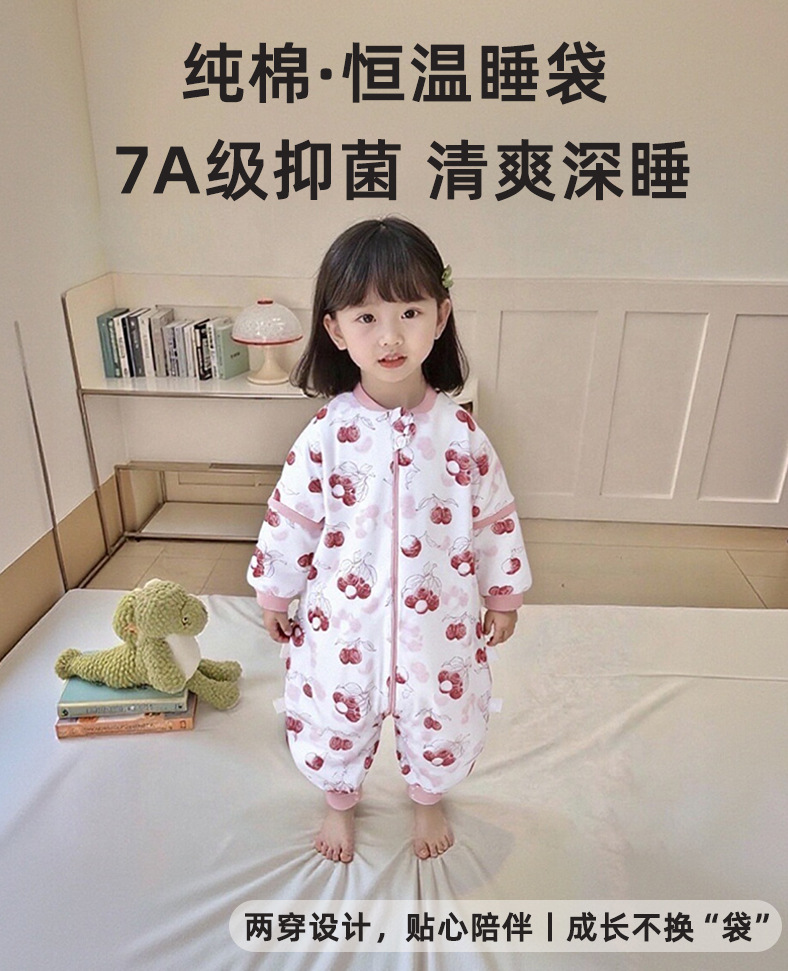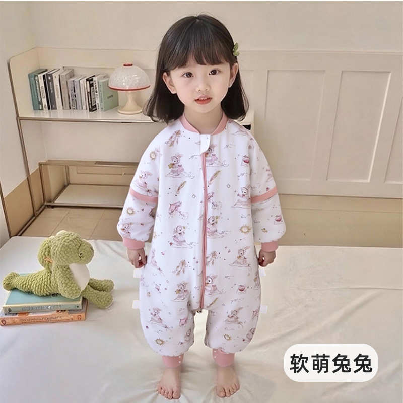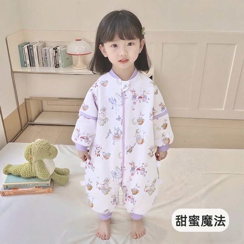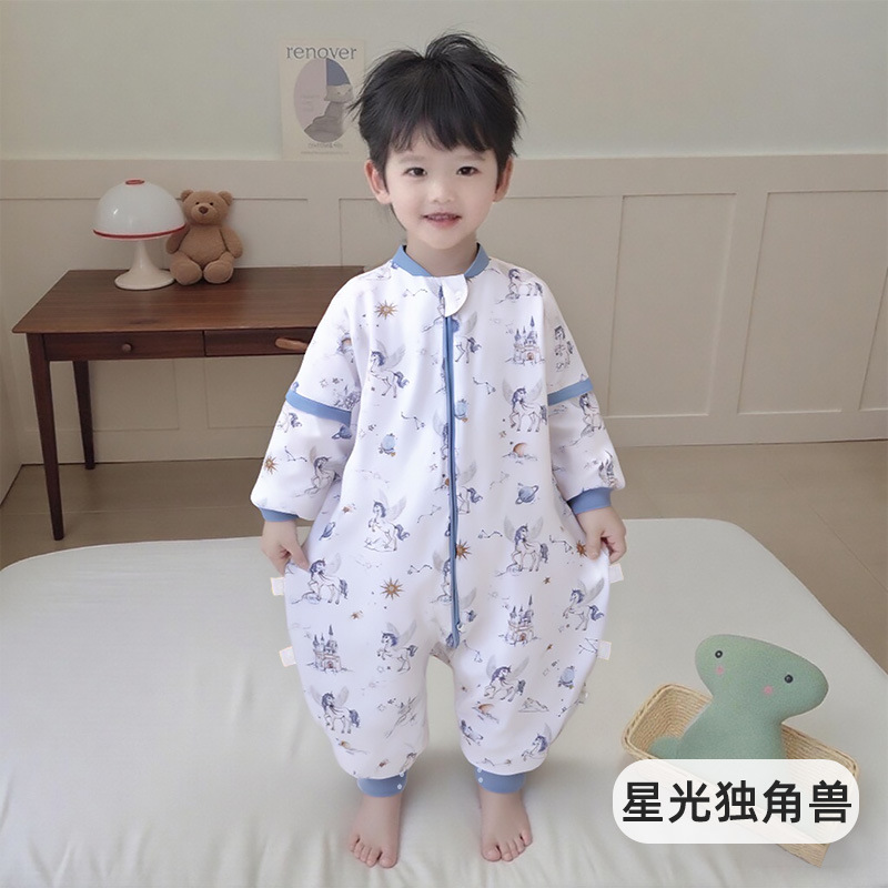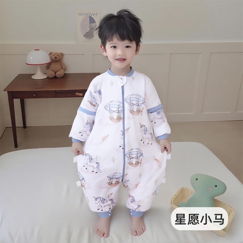 가을 겨울 퀼트 아기 다리 분할 침낭 7A 항균 유아 및 어린이 일정한 온도 안티 킥 어린이 탈착식 슬리브 점프 슈트