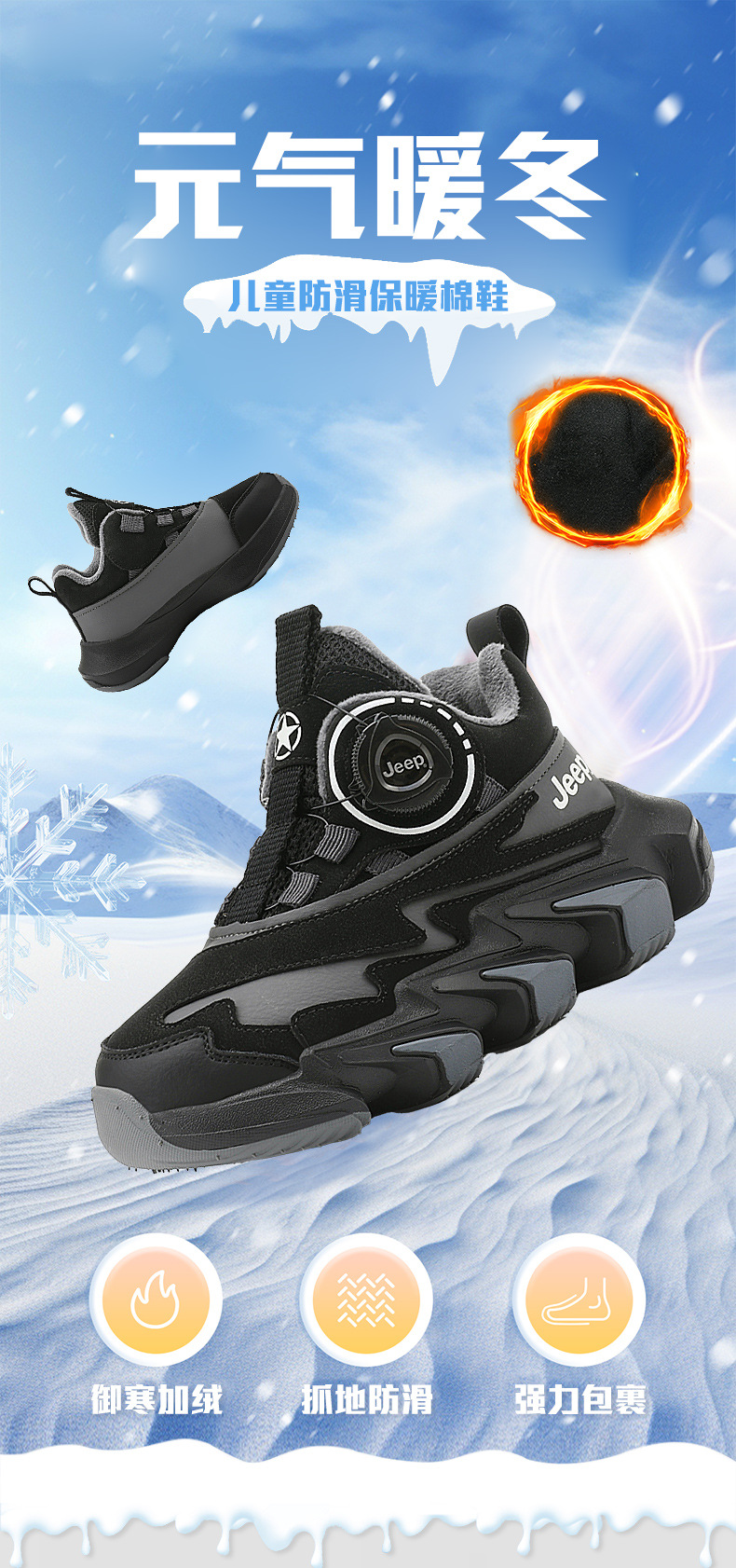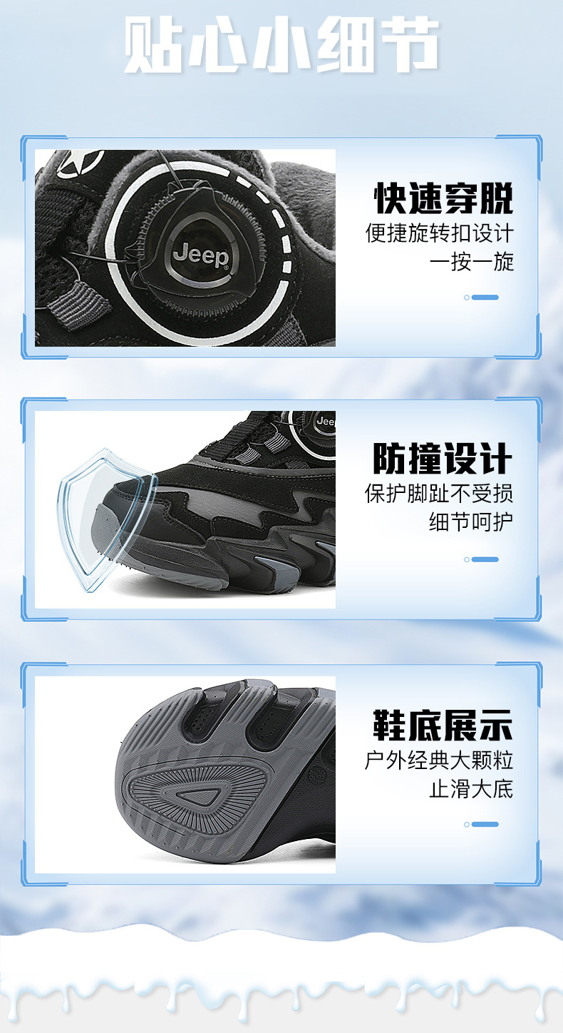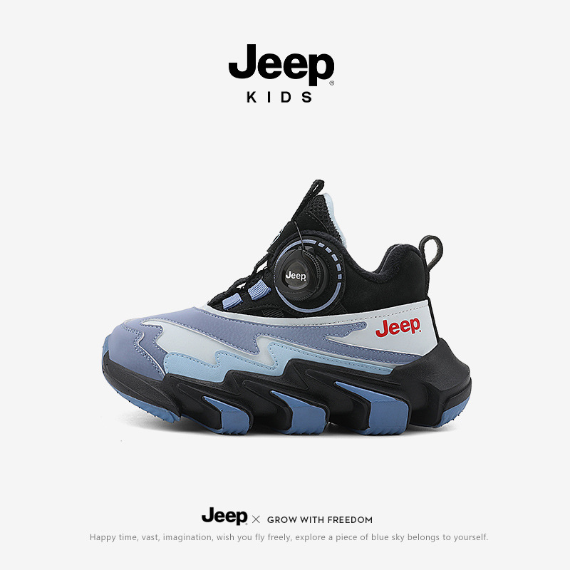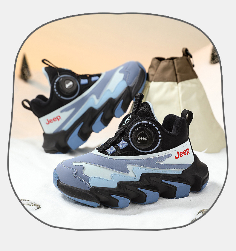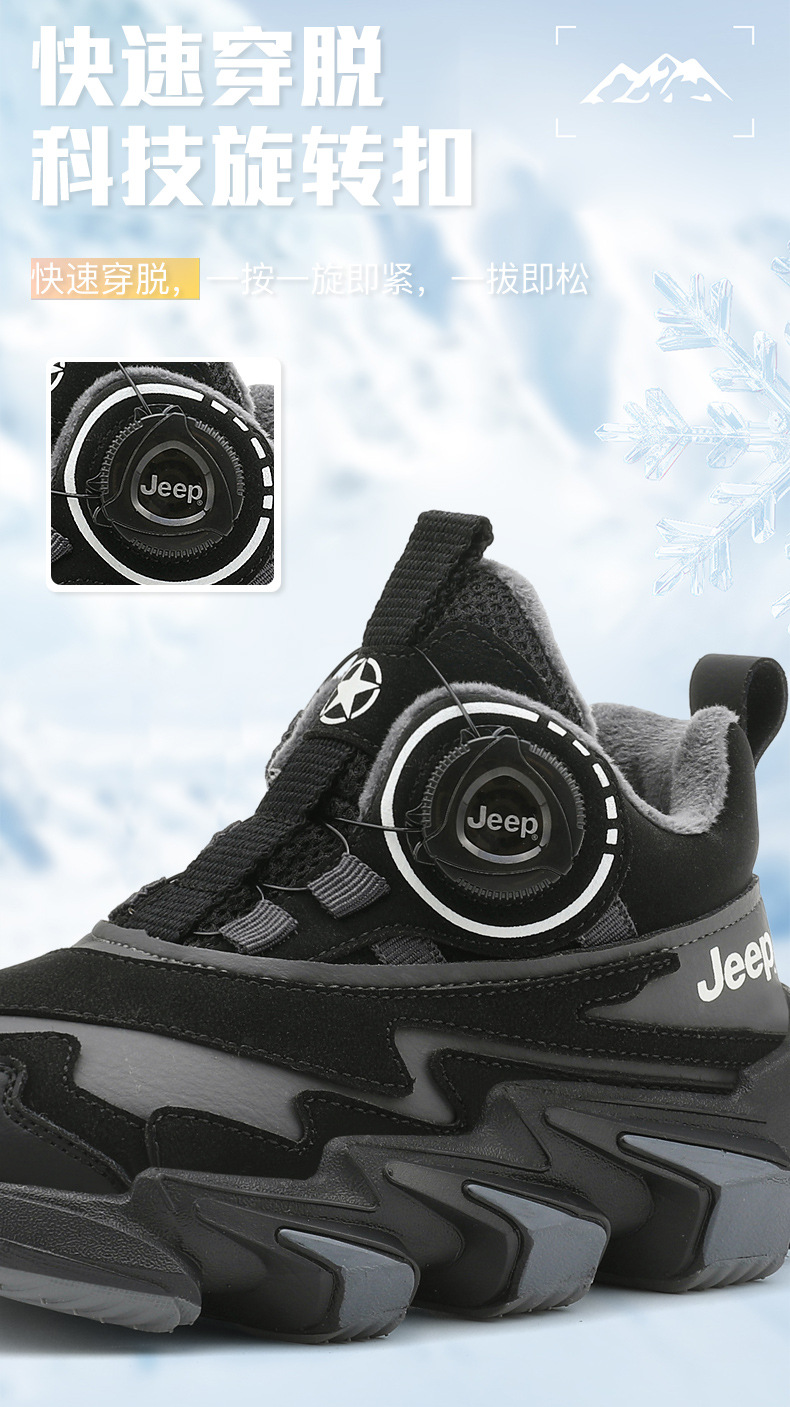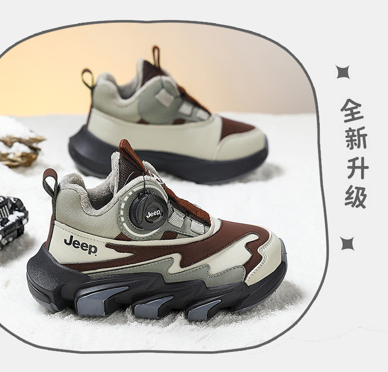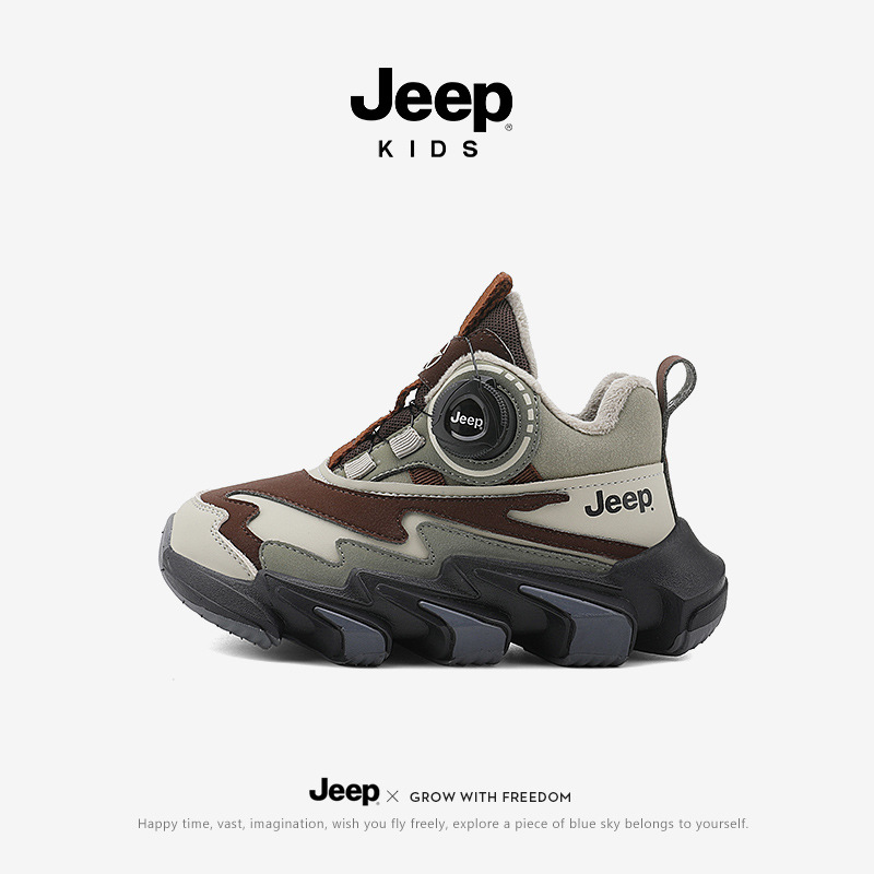 겨울을 따뜻하게 유지하는 벨벳이 포함된 Jeep 소년 면화 신발 2024 새로운 트렌디 도파민 아빠 신발 소녀 가죽 방수스토어 가기