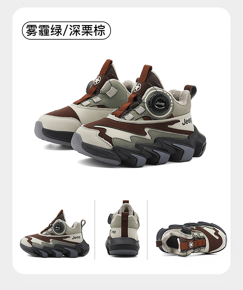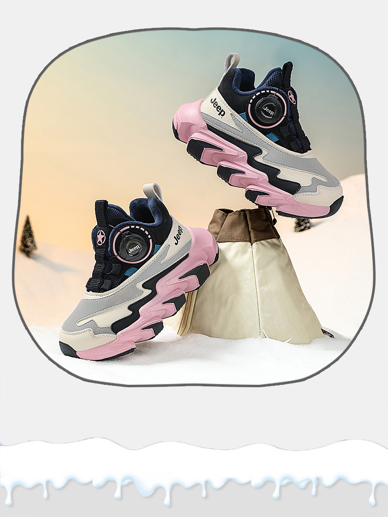 겨울을 따뜻하게 유지하는 벨벳이 포함된 Jeep 소년 면화 신발 2024 새로운 트렌디 도파민 아빠 신발 소녀 가죽 방수