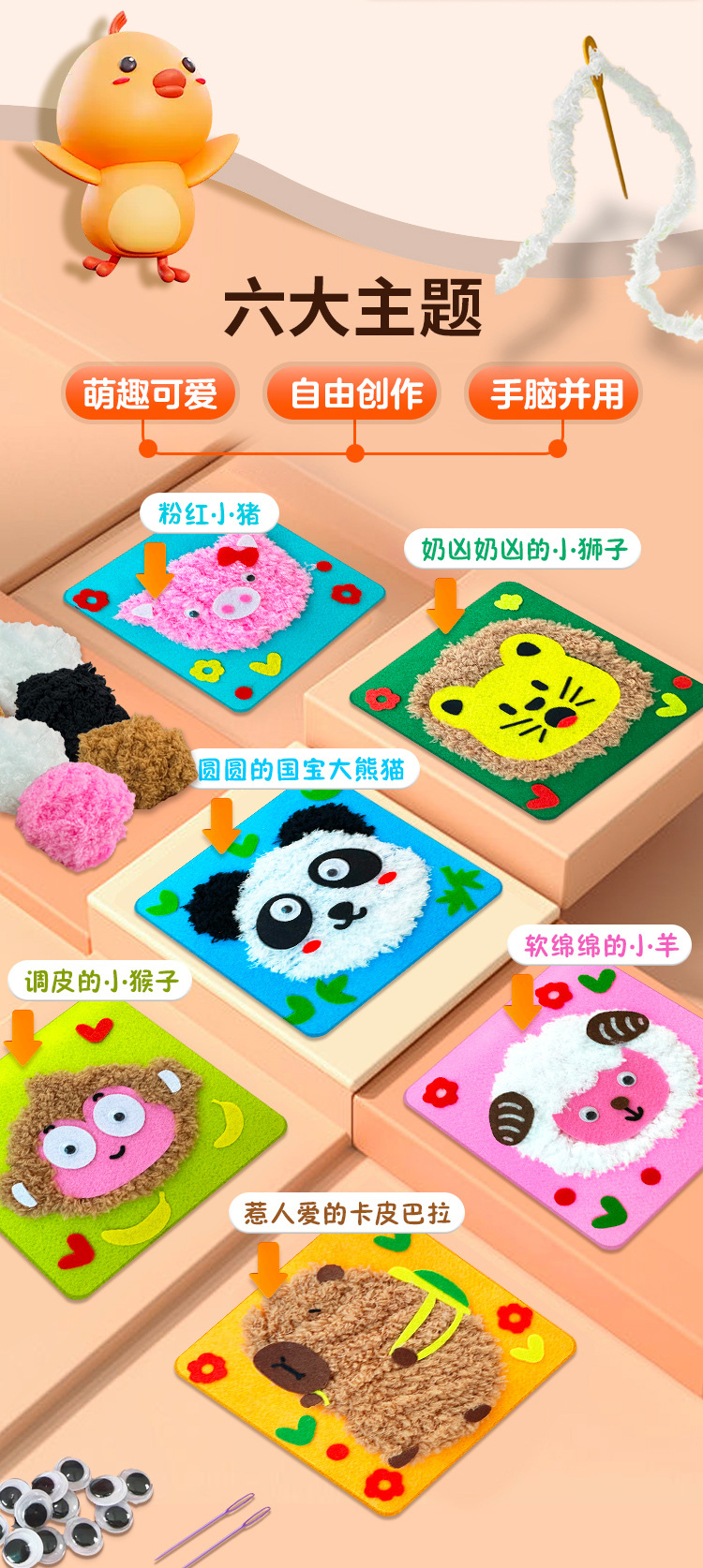 3-9 세 자수 그림 창조적 인 DIY 수제 양모 자수 짜기 어린이 초등학생 장난감 6
