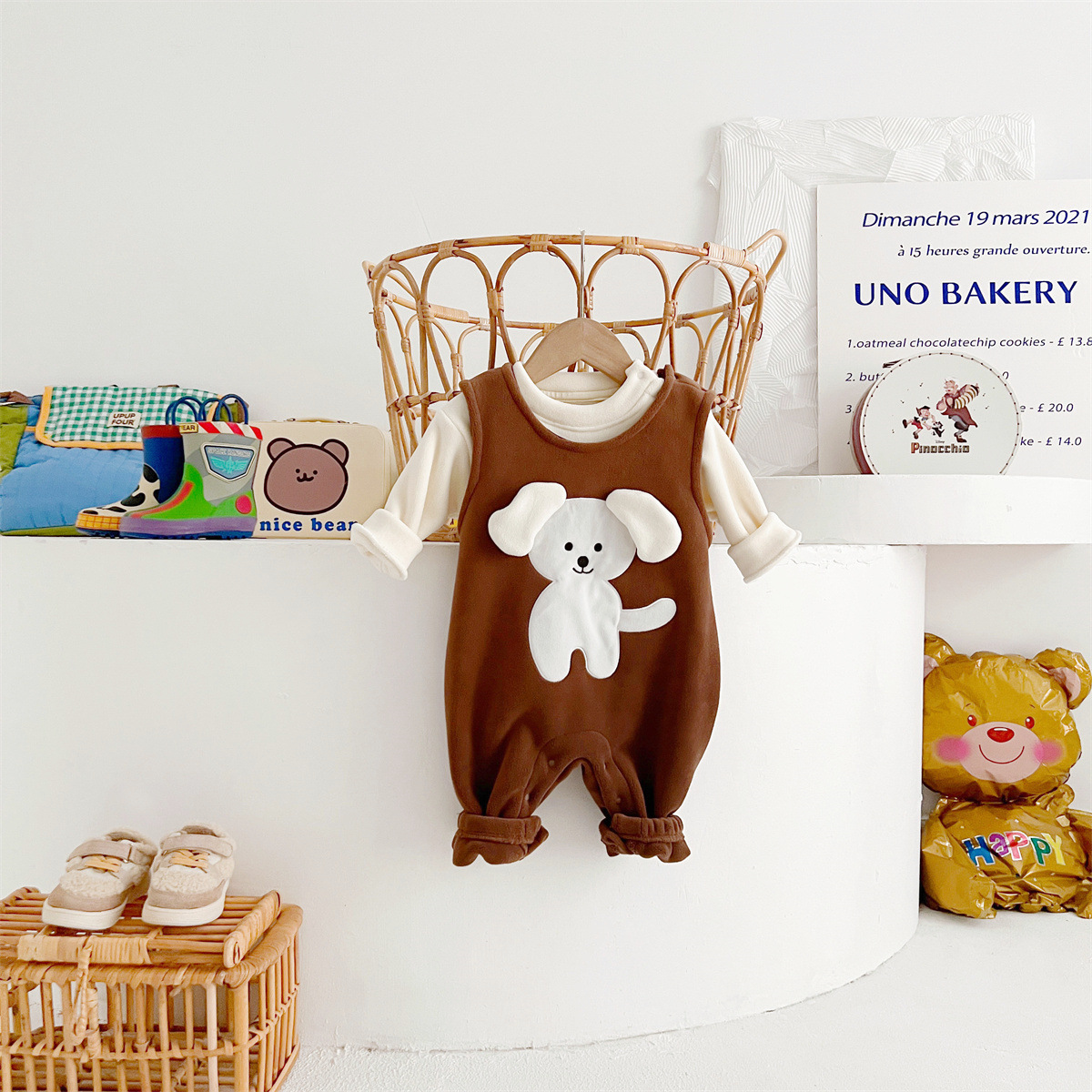 0-2 세 유행 가을/겨울 기모 아기 가방 토끼 옷 두 조각 세트 개 다크 브라운 한국 아기 옷스토어 가기