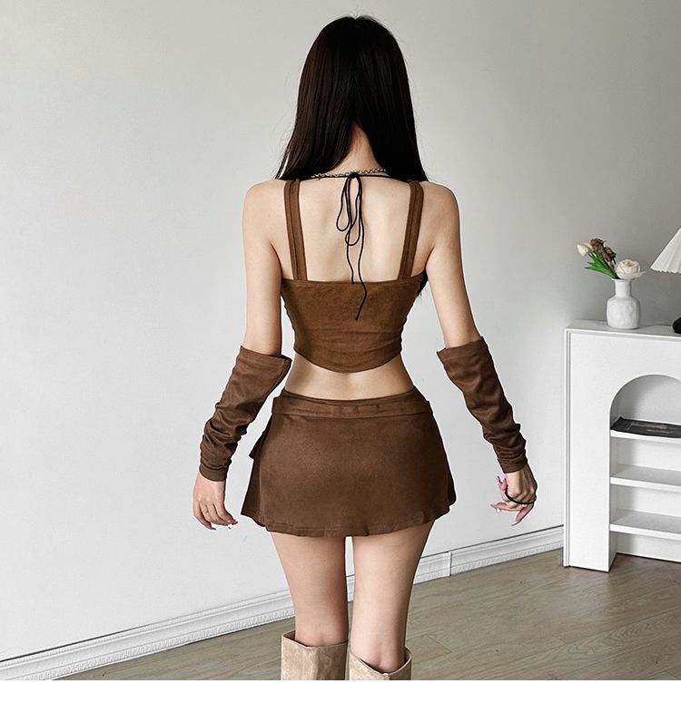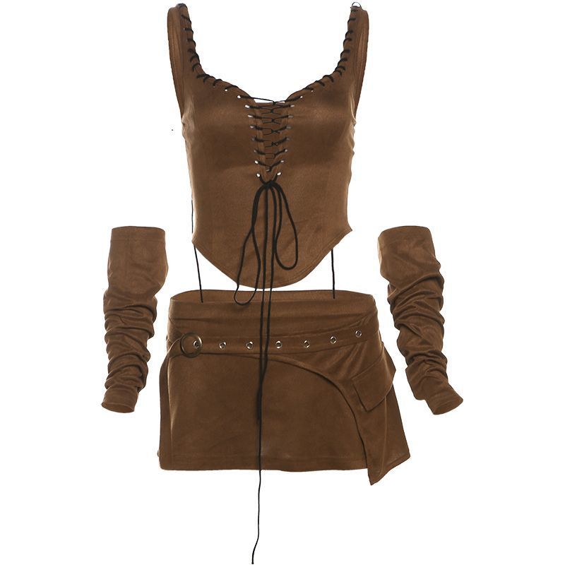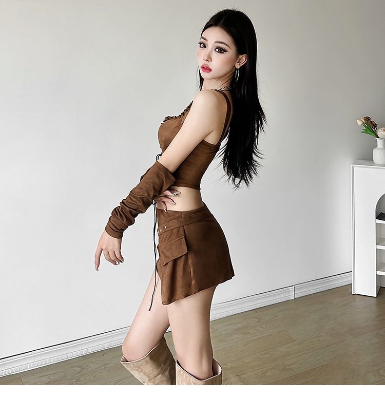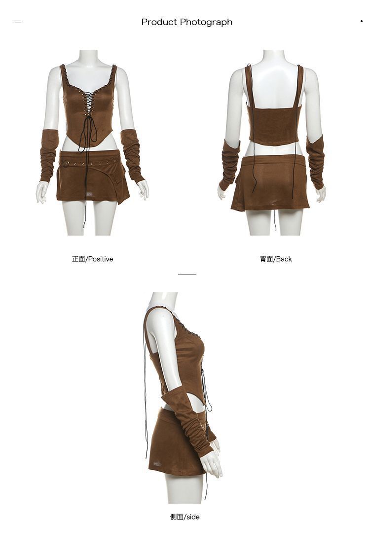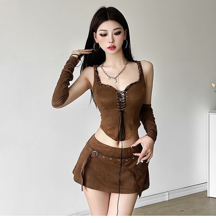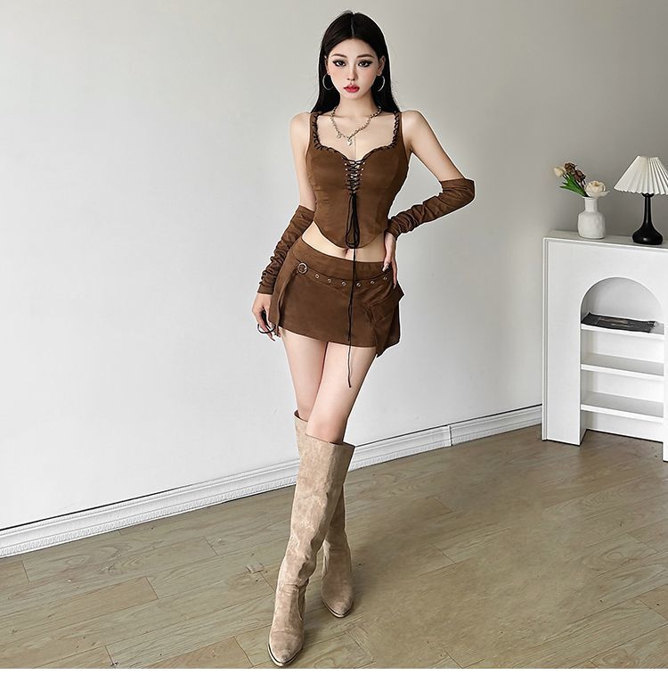 서양 WASTE Tsai 스타일 뜨거운 소녀 섹시한 슬림 핏 레이스 업 조끼 짧은 치마 세트 여성 유행스토어 가기