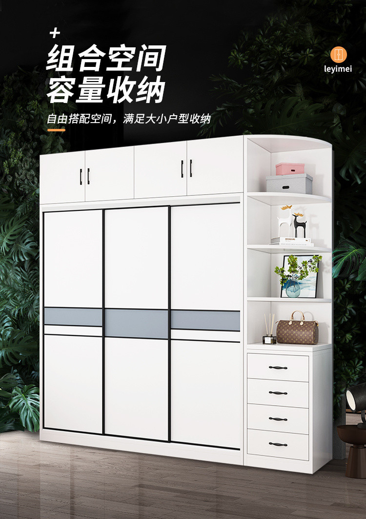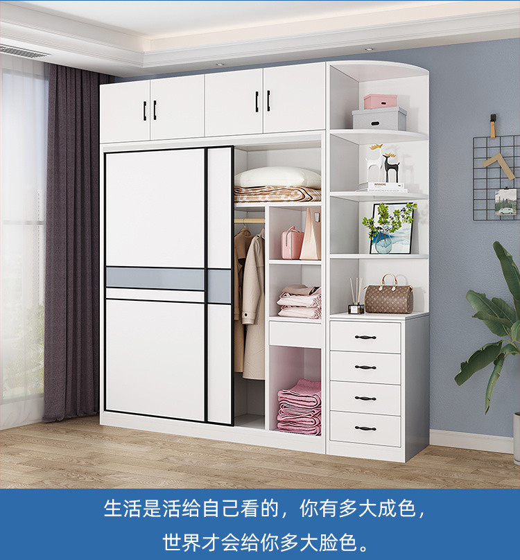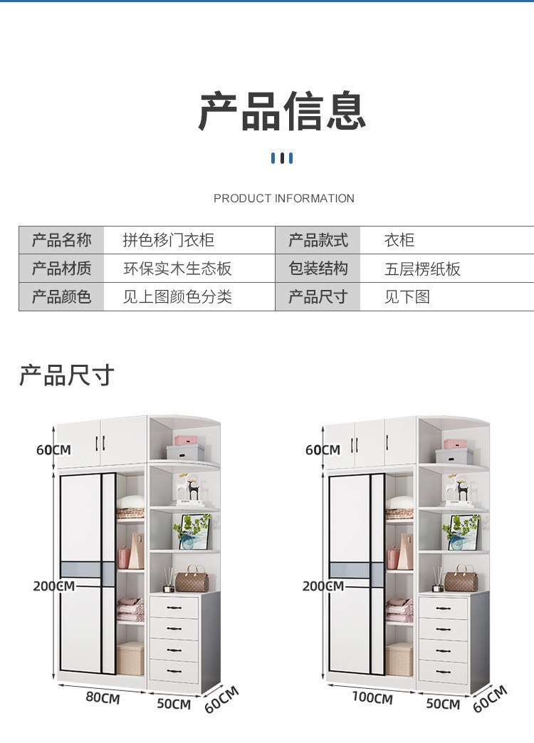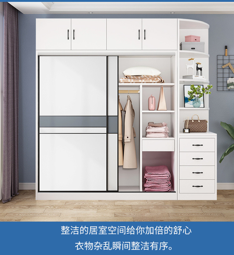 LW0 옷장 홈 침실 단단한 나무 슬라이딩 도어 작은 아파트 캐비닛 간단한 현대 어린이 간단한 조립 나무