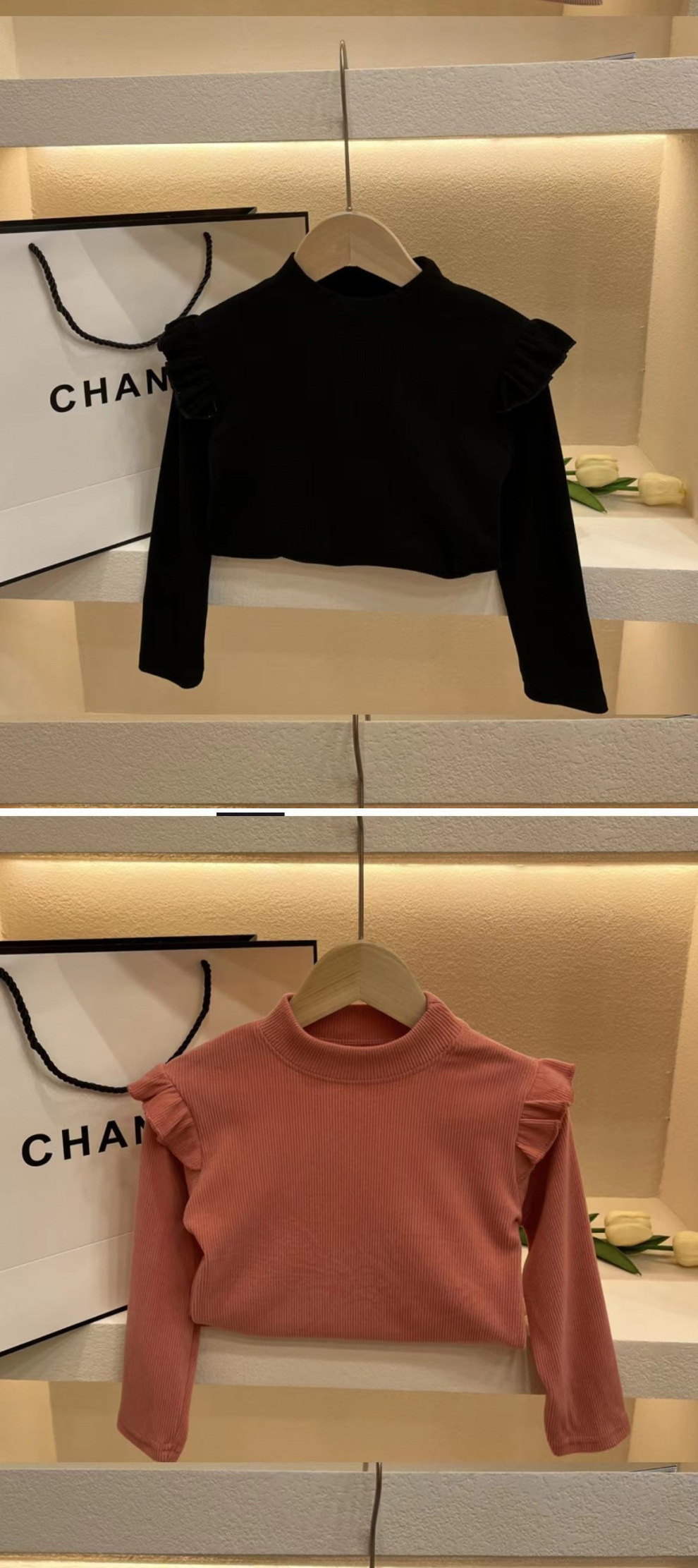 소녀베이스 셔츠 기모 가을과 겨울 새 어린이 아기 올 매치 연꽃 잎 슬리브 탑 걸스 스타일 세미 터틀넥 셔츠스토어 가기