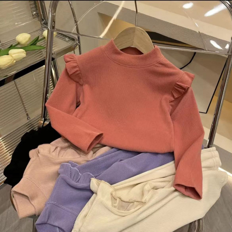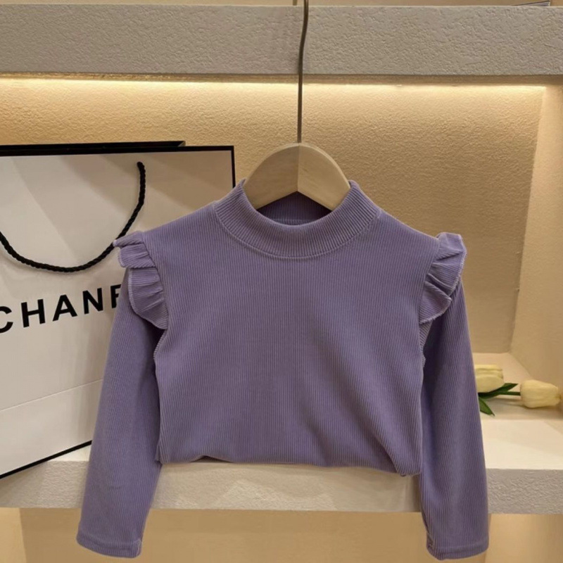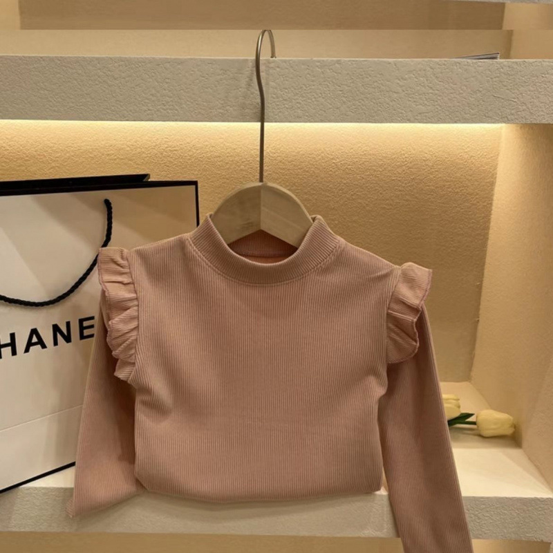 소녀베이스 셔츠 기모 가을과 겨울 새 어린이 아기 올 매치 연꽃 잎 슬리브 탑 걸스 스타일 세미 터틀넥 셔츠