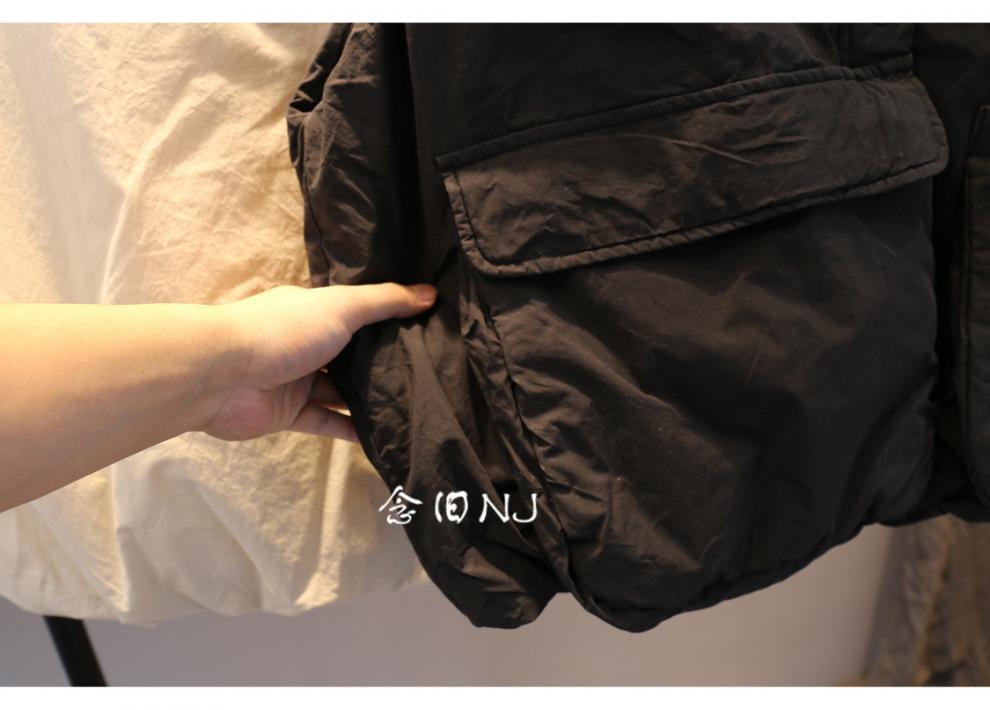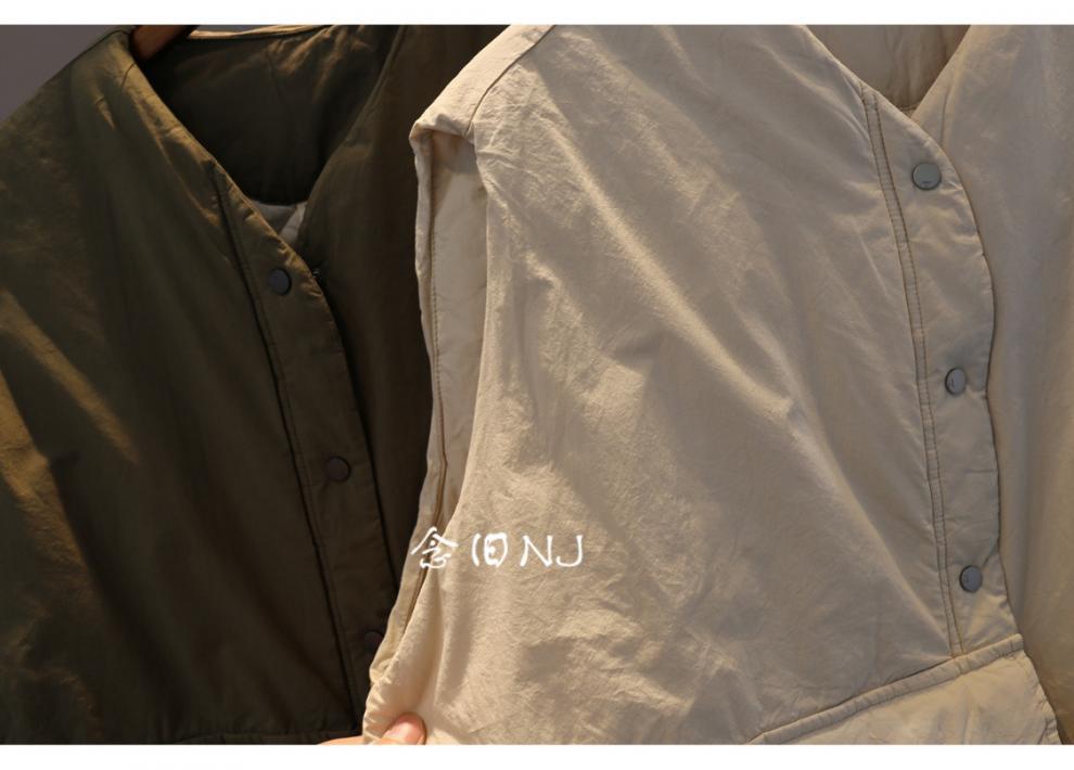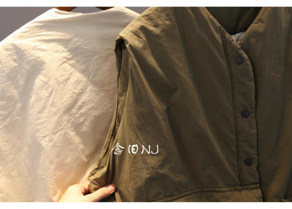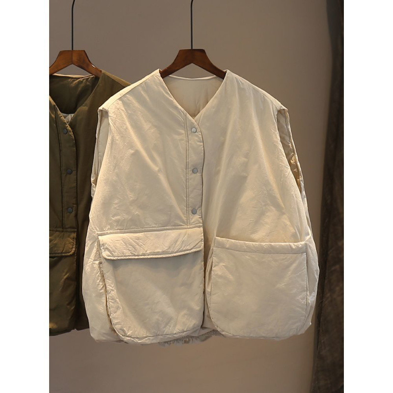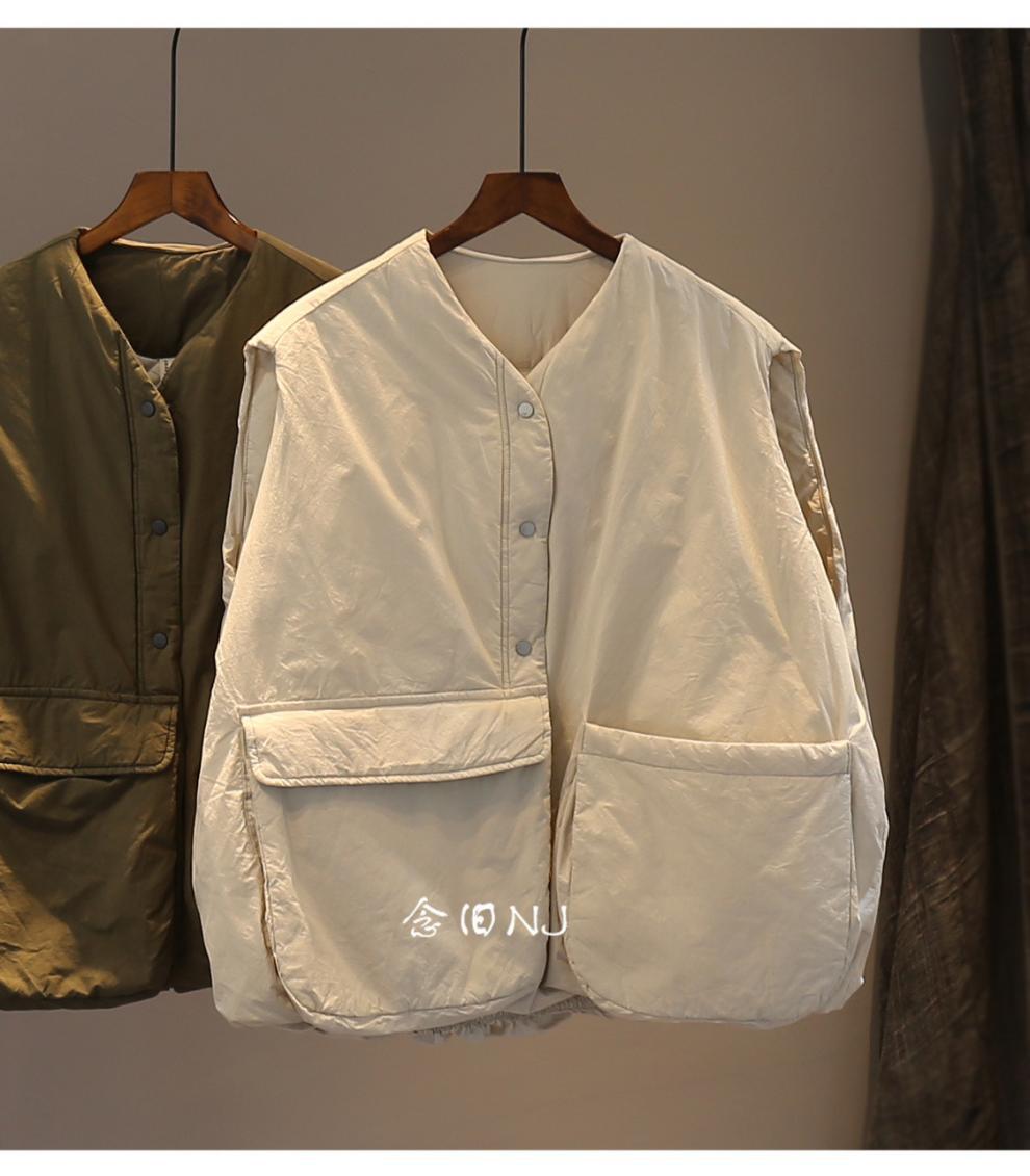 H8A 예술적 플러스 사이즈 단색 대형 포켓 클립 코튼 조끼 여성의 겨울 두꺼운 캐주얼 민소매 조끼
