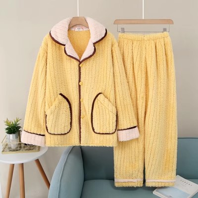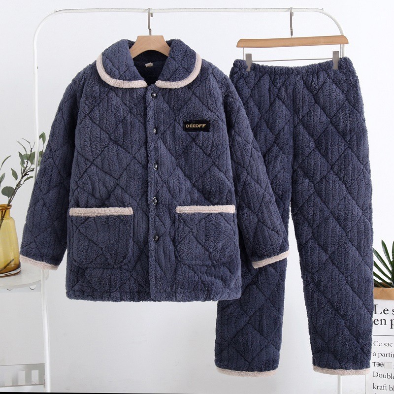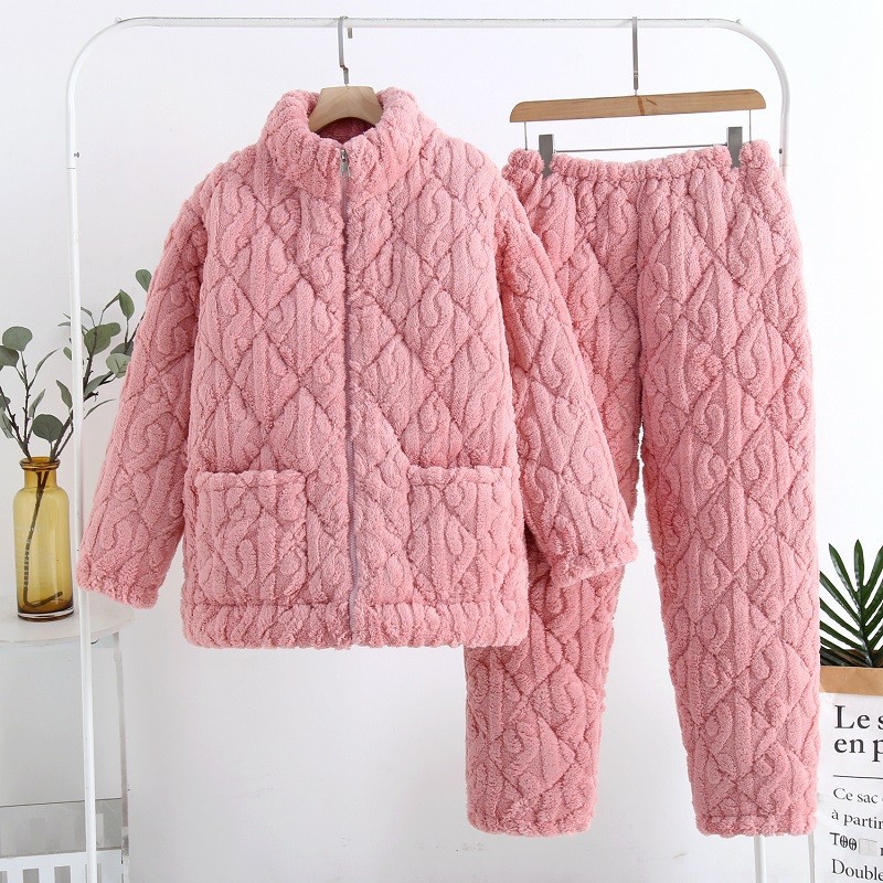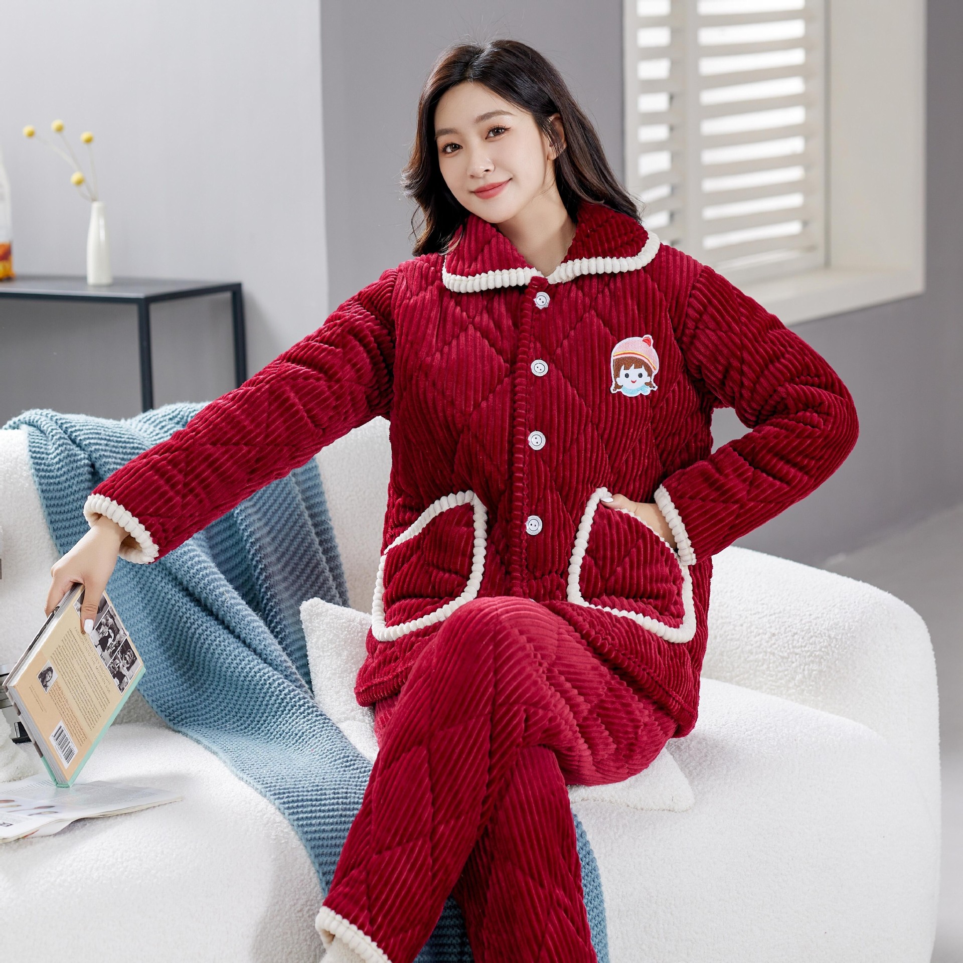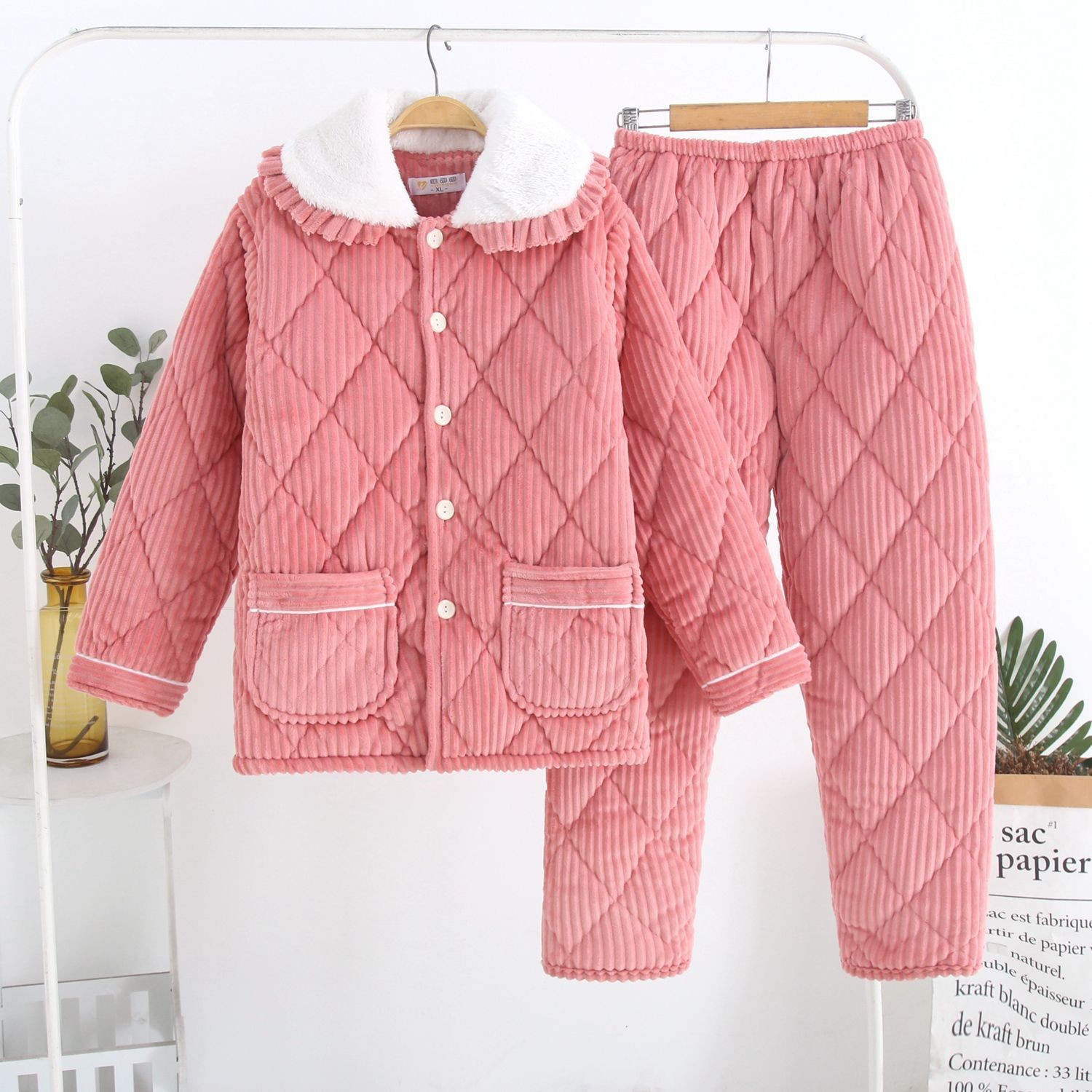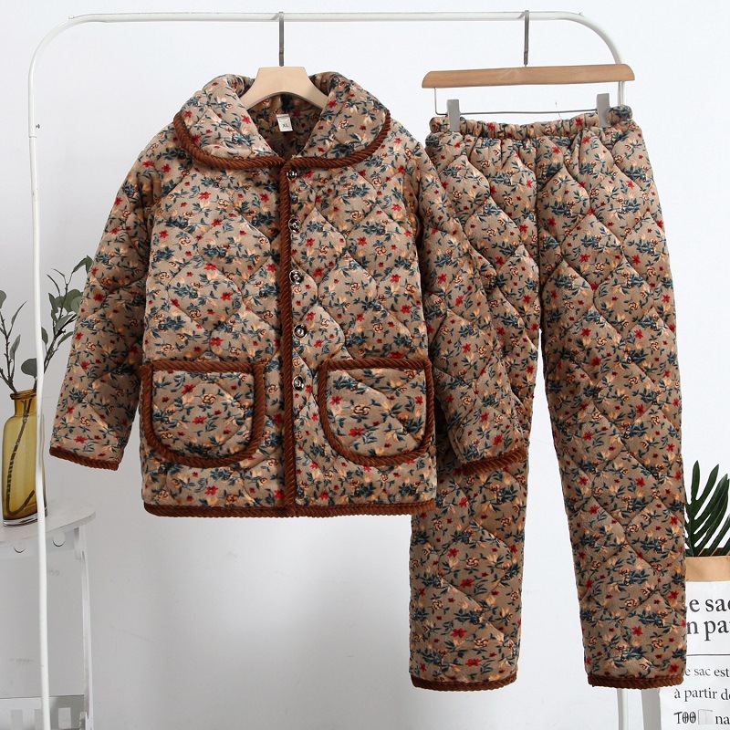 겨울 두꺼운 중년 및 노인 산호 양털 파자마 3 층 퀼트 플러스 사이즈 면 패딩 재킷 플란넬 따뜻한 여성 가정 옷