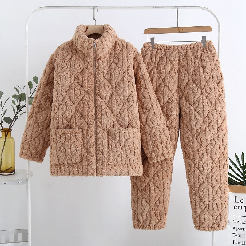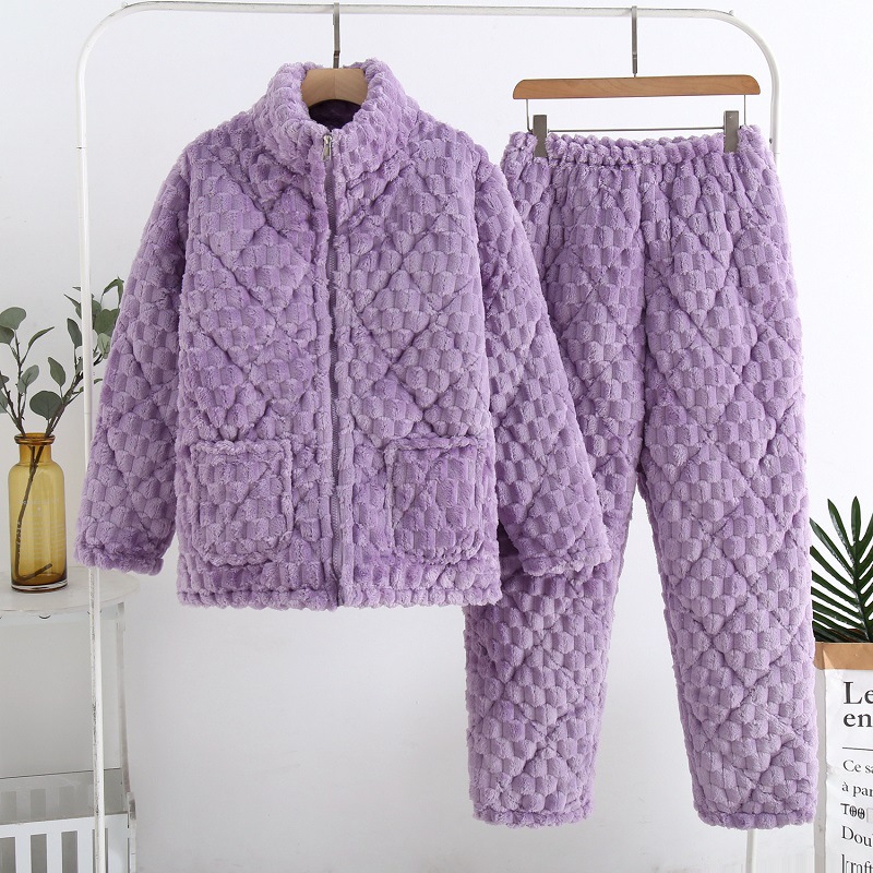 겨울 두꺼운 중년 및 노인 산호 양털 파자마 3 층 퀼트 플러스 사이즈 면 패딩 재킷 플란넬 따뜻한 여성 가정 옷스토어 가기
