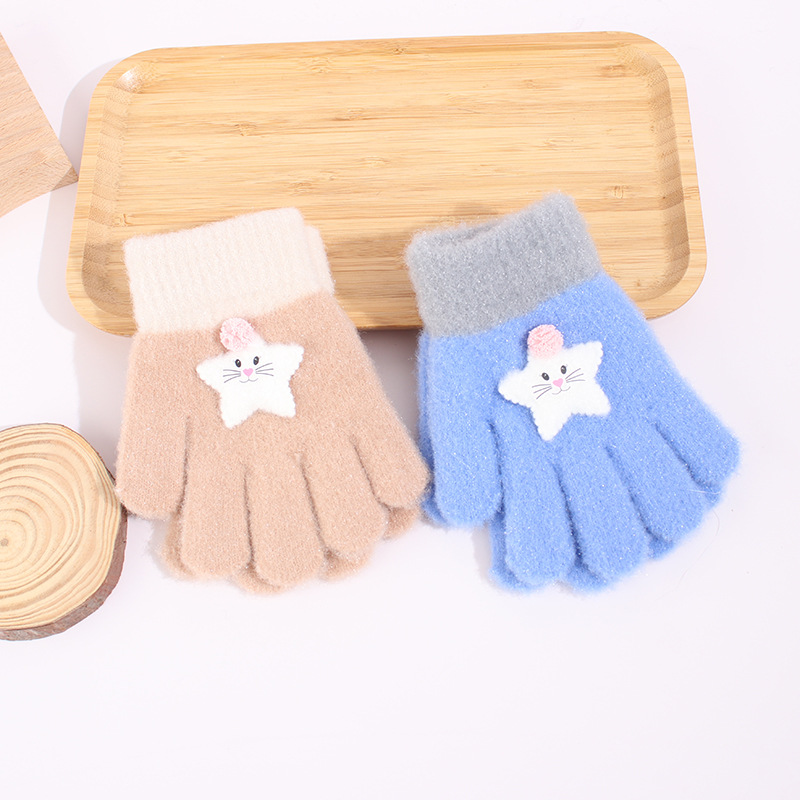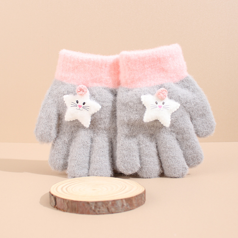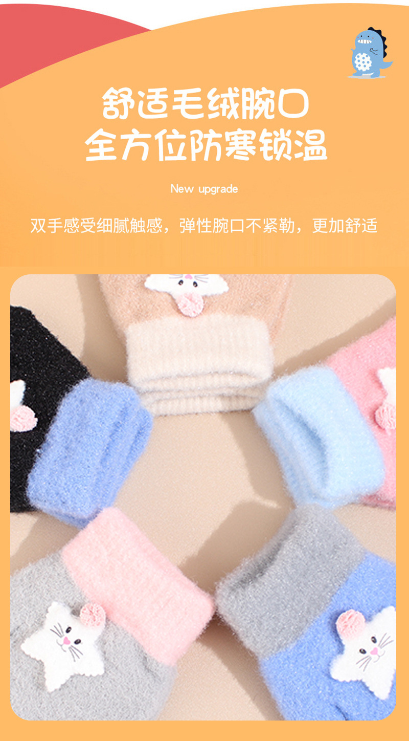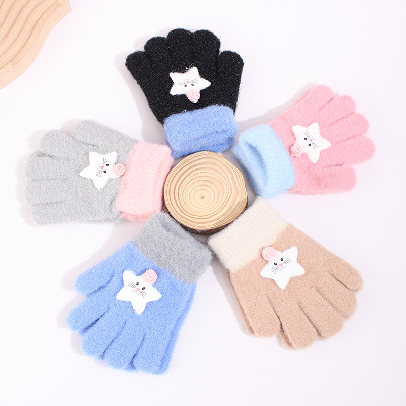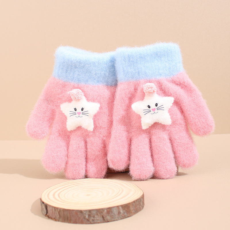 3-6 세 소년과 소녀 겨울 어린이 장갑 따뜻한 만화 감기 방지 니트 귀여운 유치원 학생 장갑