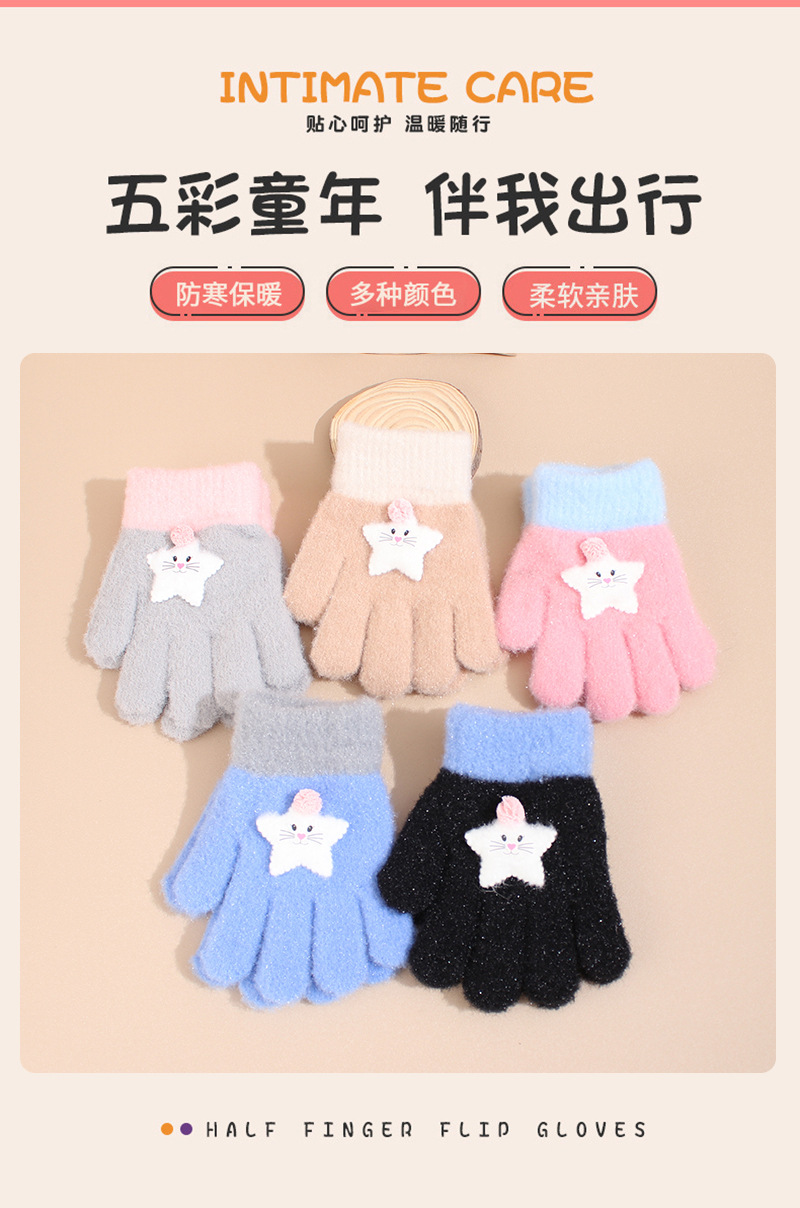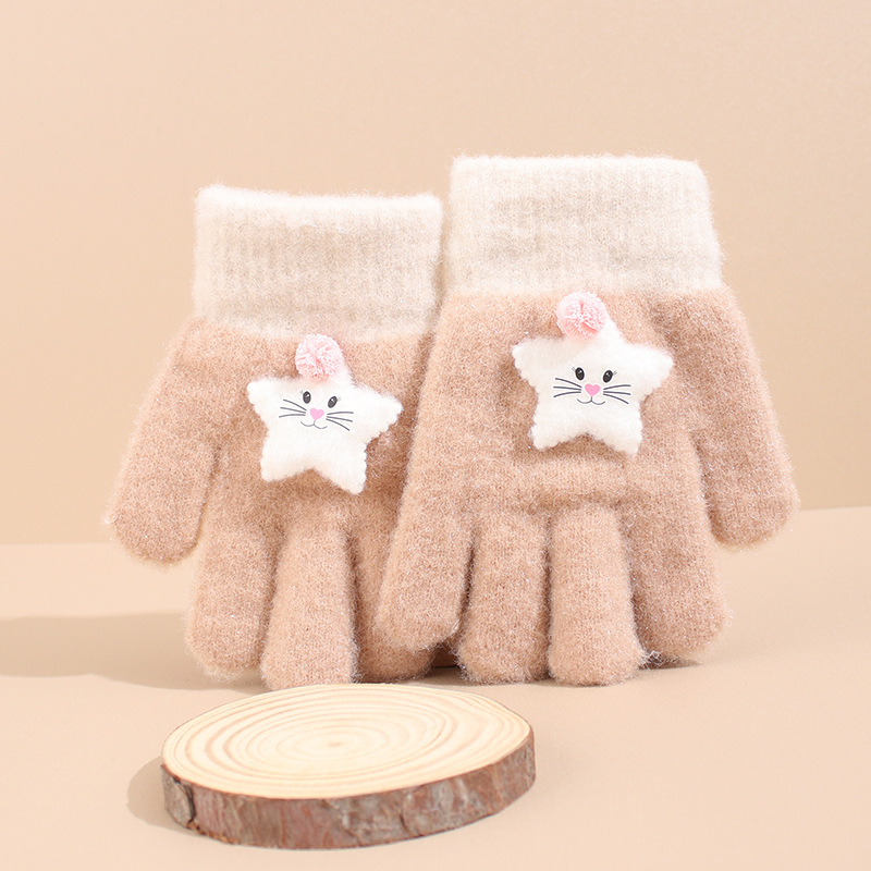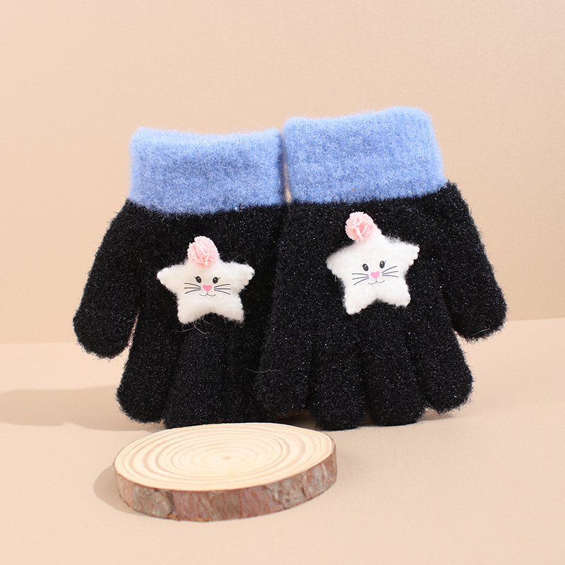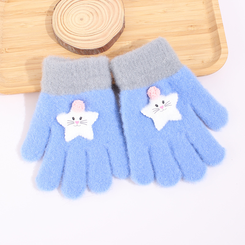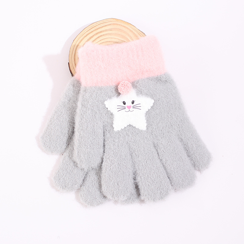 3-6 세 소년과 소녀 겨울 어린이 장갑 따뜻한 만화 감기 방지 니트 귀여운 유치원 학생 장갑