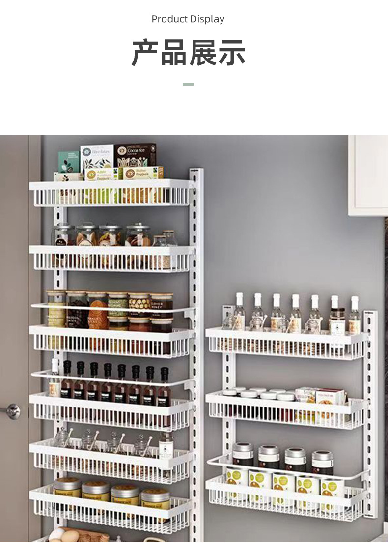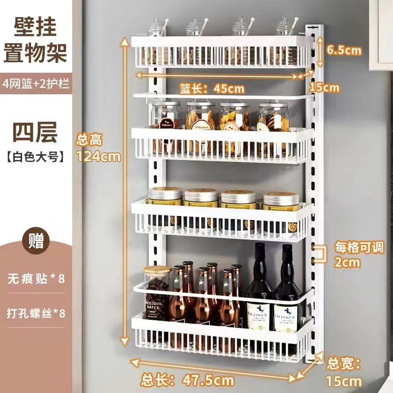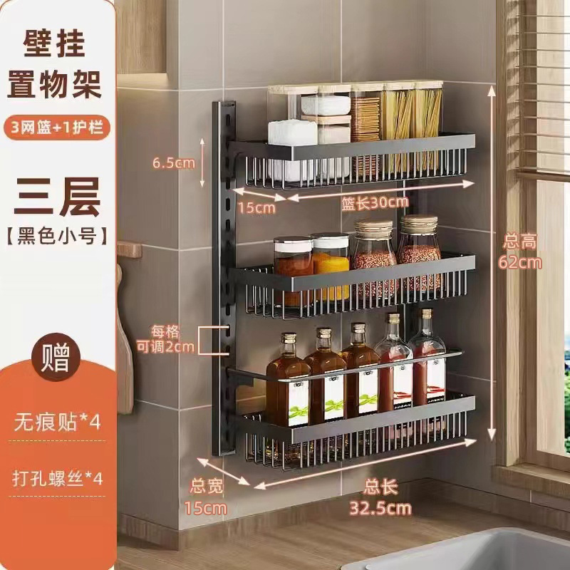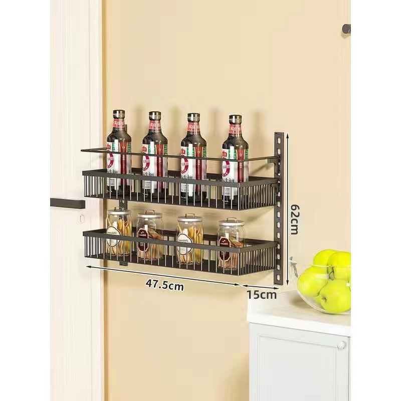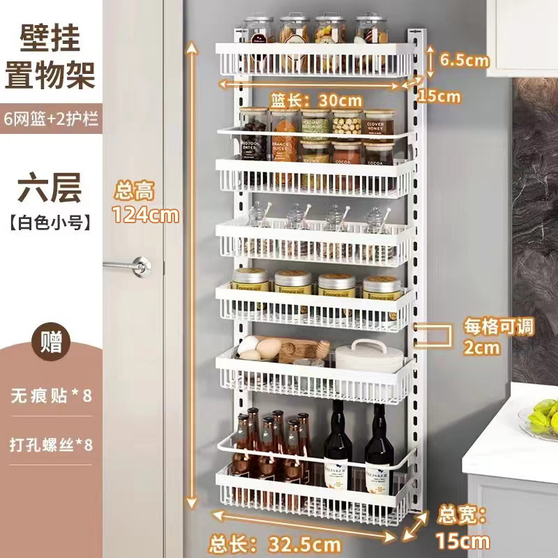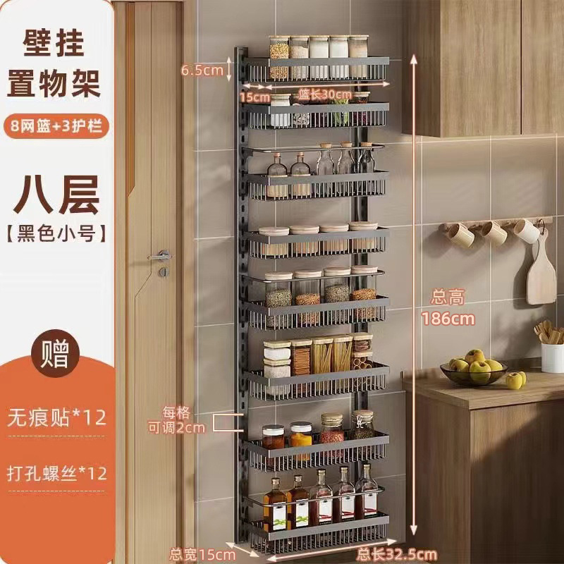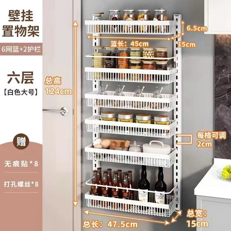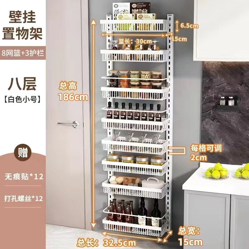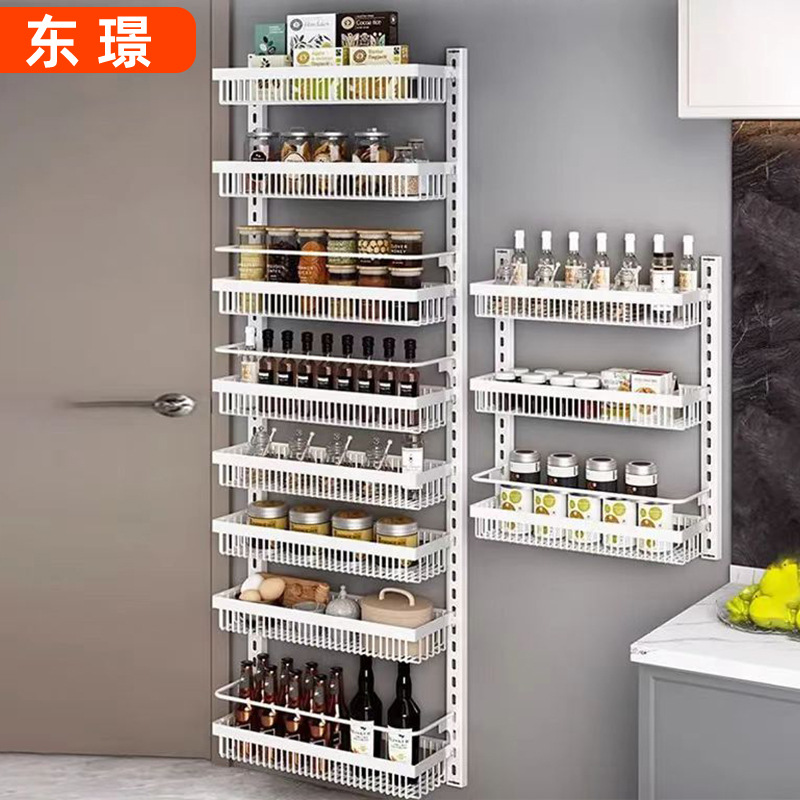 구멍을 뚫지 않는 문 뒤 벽걸이 수납 선반 주방 조미료 선반 다층 틈새 수납 선반 벽걸이 조미료 수납 선반