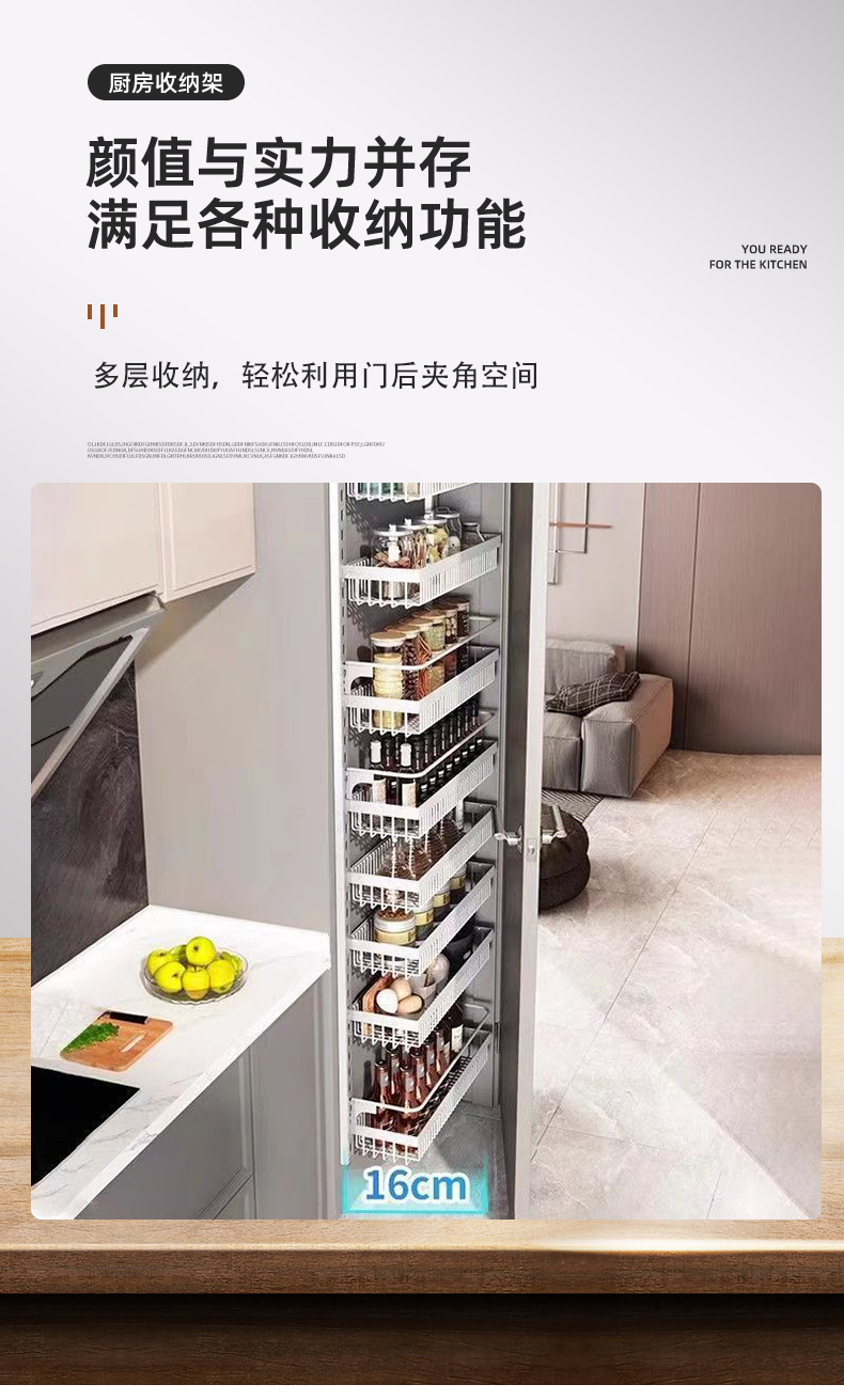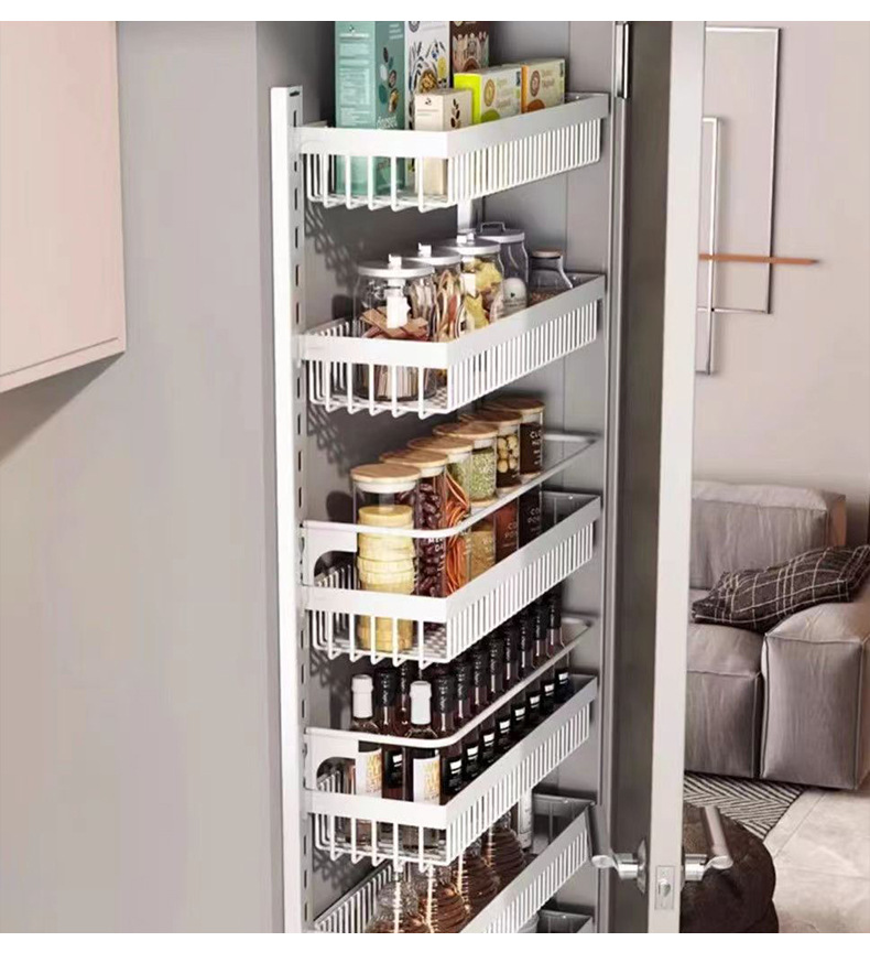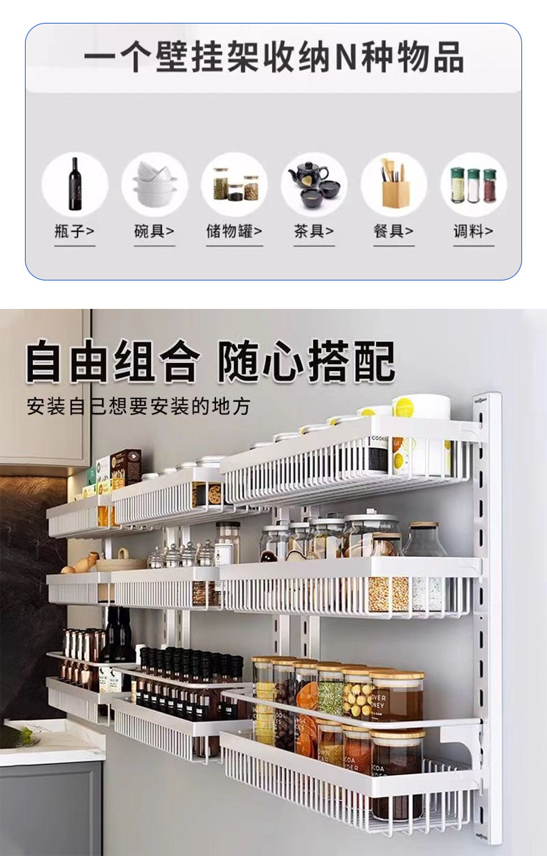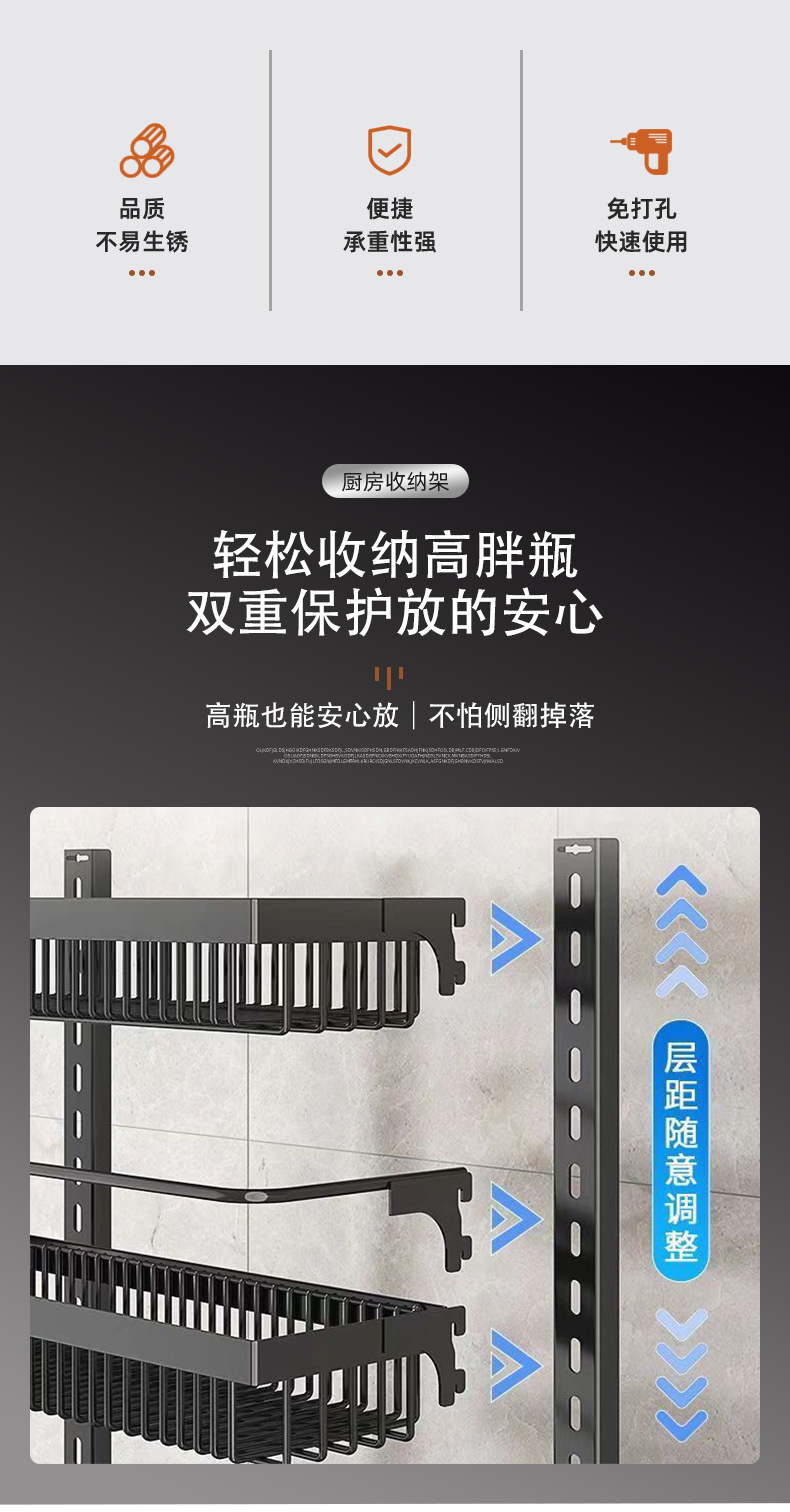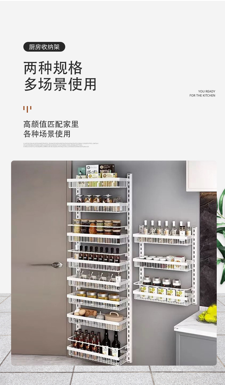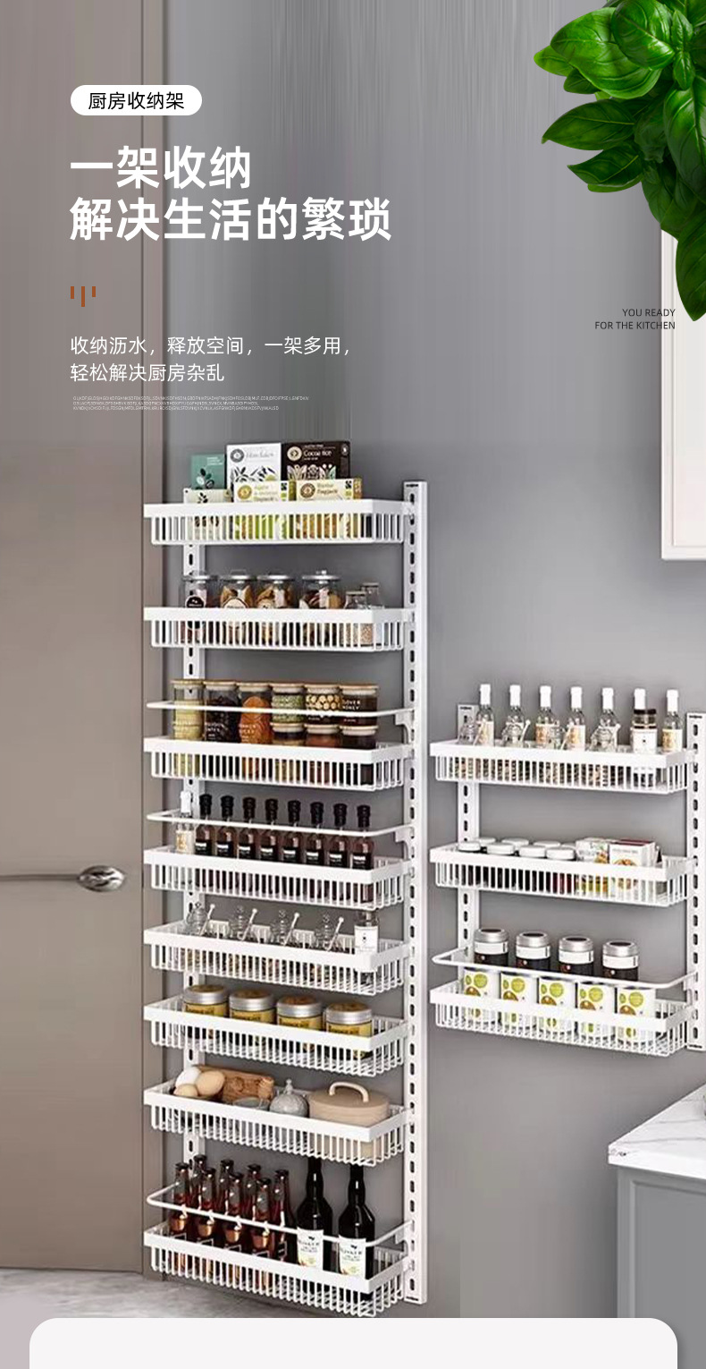 구멍을 뚫지 않는 문 뒤 벽걸이 수납 선반 주방 조미료 선반 다층 틈새 수납 선반 벽걸이 조미료 수납 선반