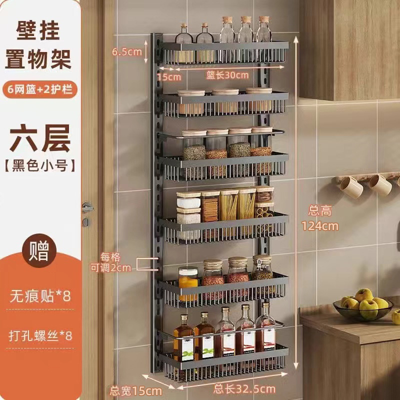 구멍을 뚫지 않는 문 뒤 벽걸이 수납 선반 주방 조미료 선반 다층 틈새 수납 선반 벽걸이 조미료 수납 선반스토어 가기