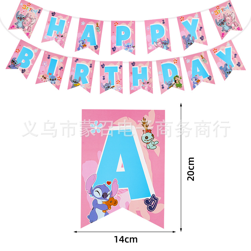 스팟 만화 스티치 생일 편지 배너 깃발 어린이 생일 파티 테마 장식 공장 직접 판매스토어 가기