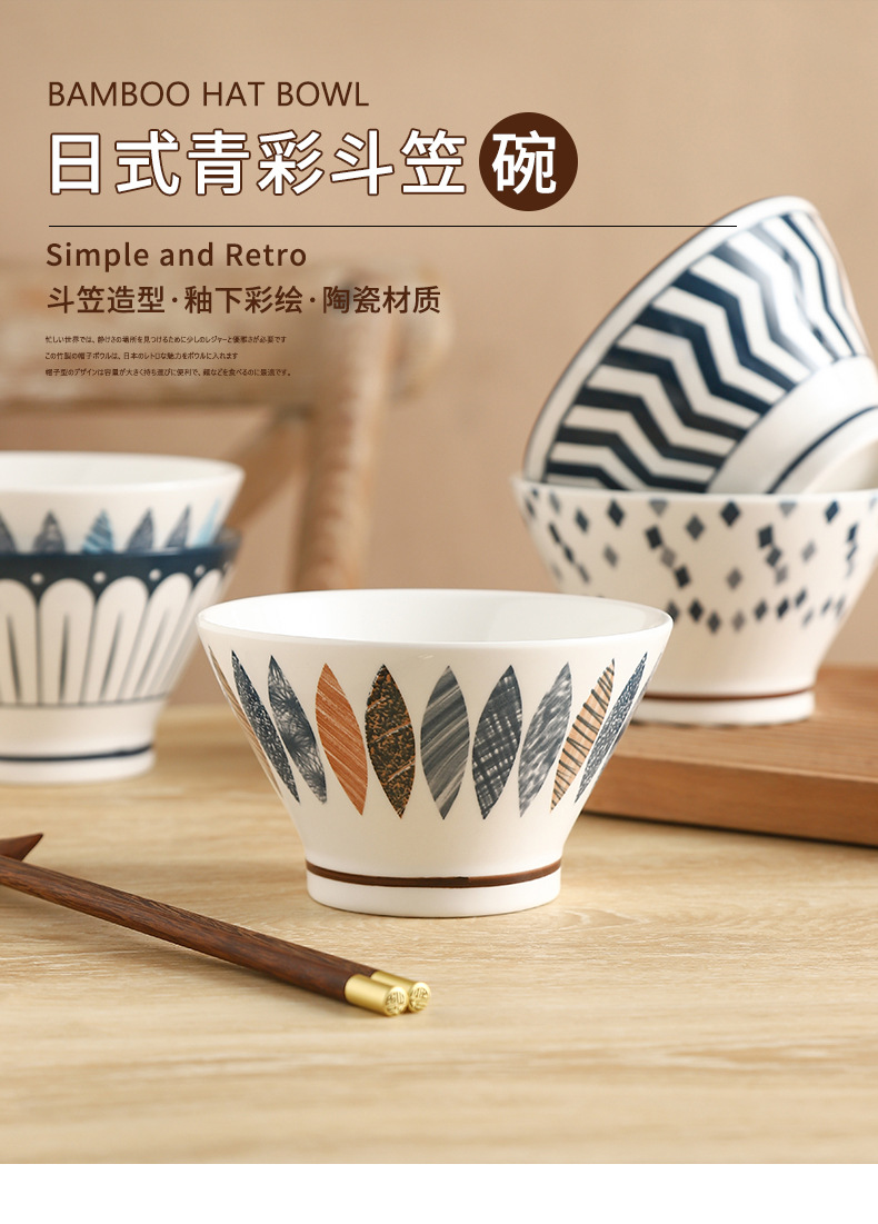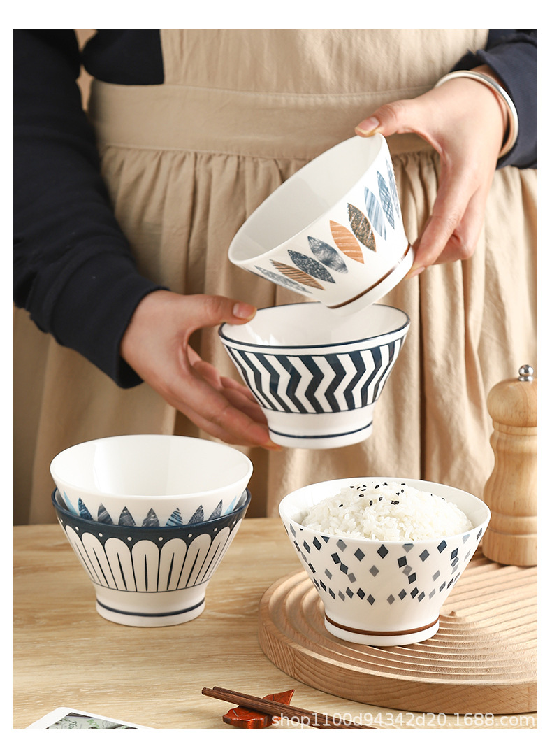 Underglaze Color 세라믹 라이스 볼 5 인치 버킷 보울 식기 2022 새로운 홈 하이 볼 안티 스케일 샐러드 그릇스토어 가기