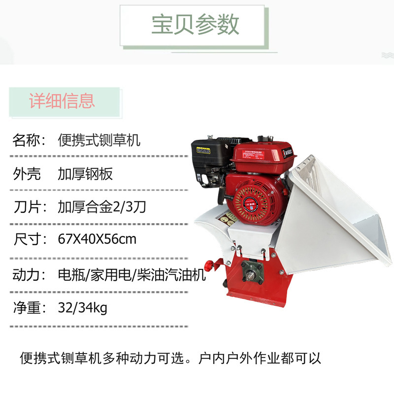 야외 휴대용 마초 세발 자전거 건초 커터 작은 배터리 잔디 슈레더 젖고 건조한 가솔린 엔진 가지스토어 가기