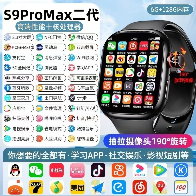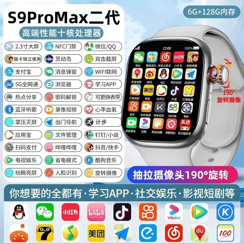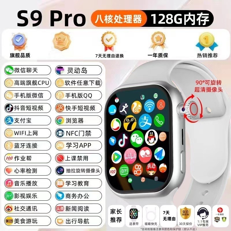 Huaqiang North s9 스마트 시계 셀룰러 탑 에디션 5G 풀 넷콤 삽입 가능한 카드 청소년 전화 시계 자기 흡입스토어 가기