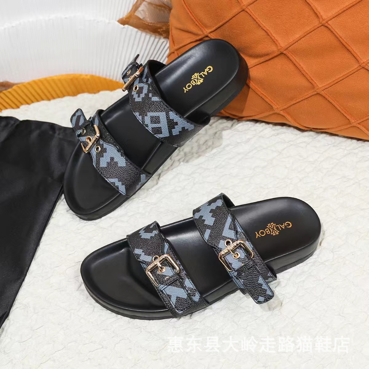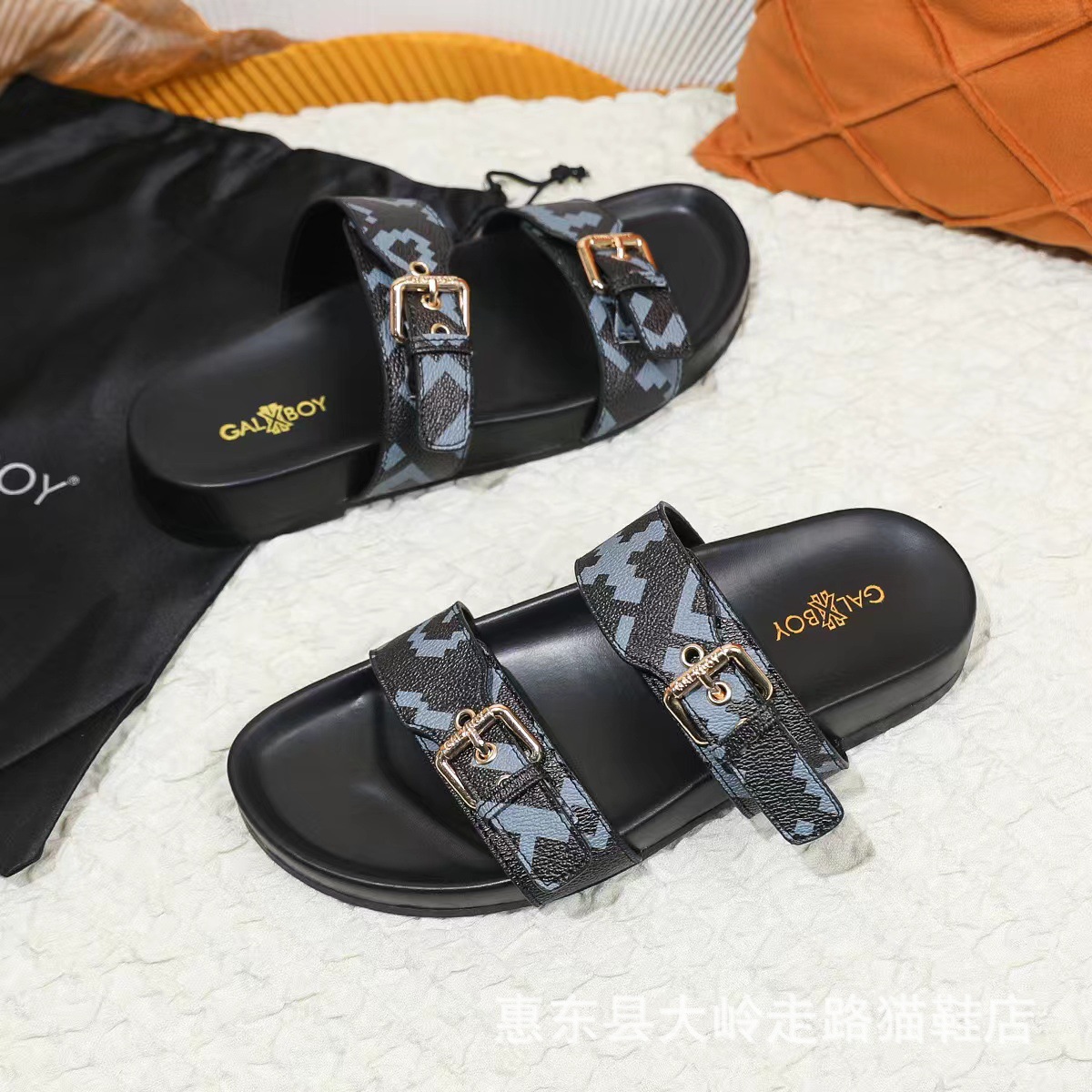 대외 무역 플러스 사이즈 플랫 바닥 새로운 대외 무역 유럽과 미국 여성 아우터웨어 플랫 바닥 금속 버클 더블 버클 레터 비치 샌들스토어 가기