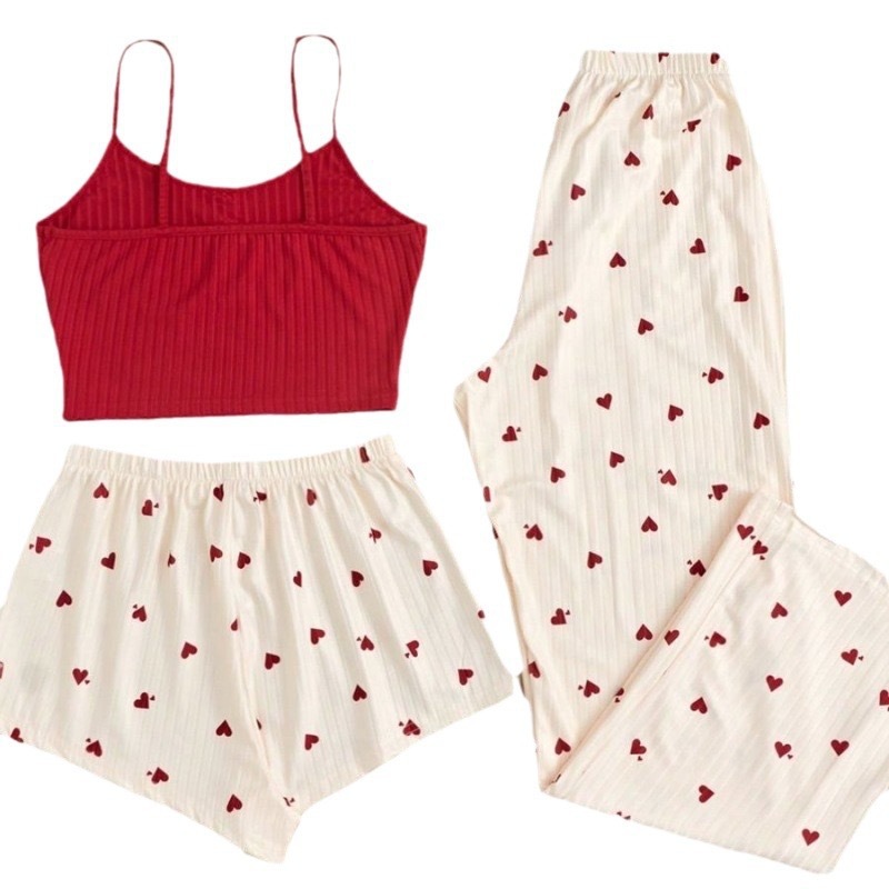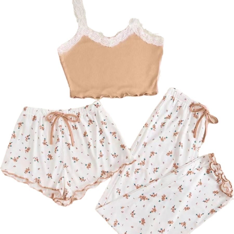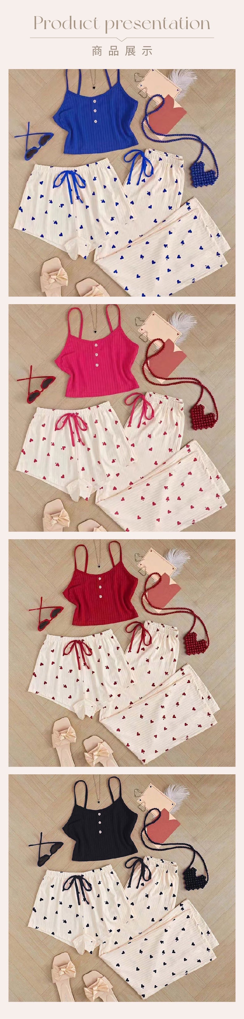 여자 사랑 잠옷 여자 봄 여름 달콤한 귀여운 3 피스 하이 엔드 슬링 반바지 세트 섹시한 가족 여성스토어 가기