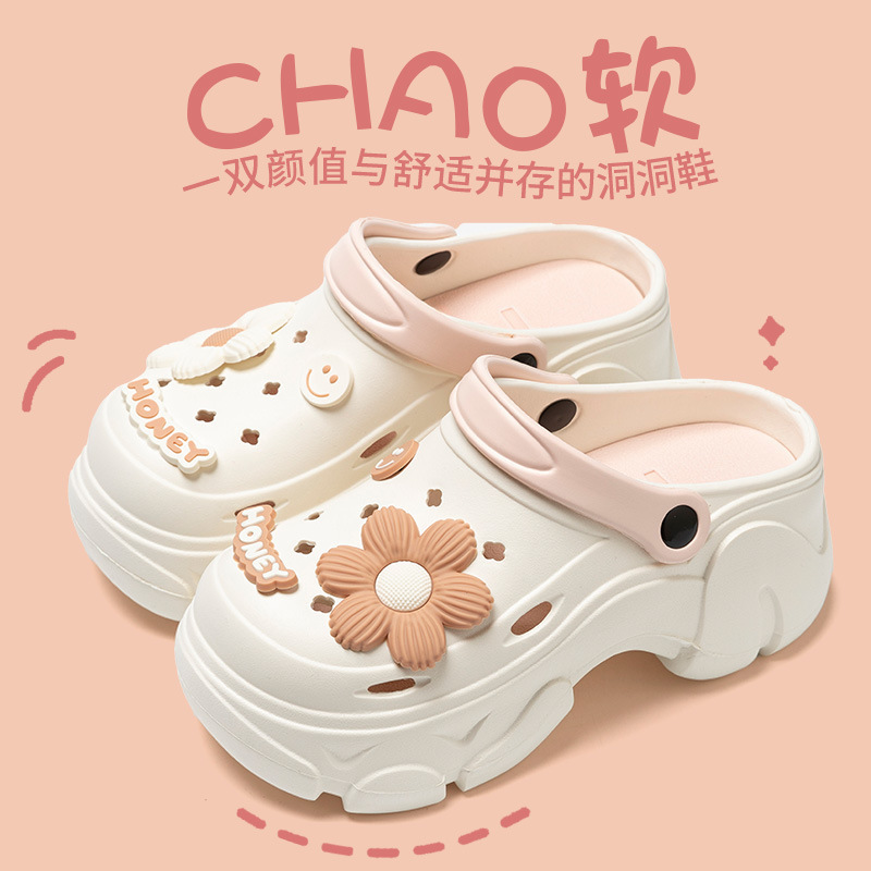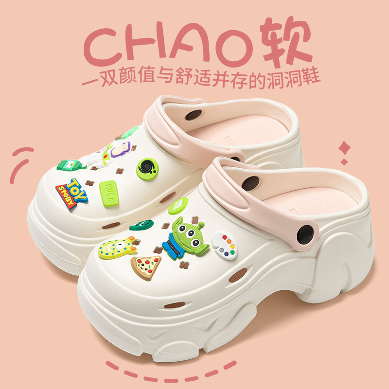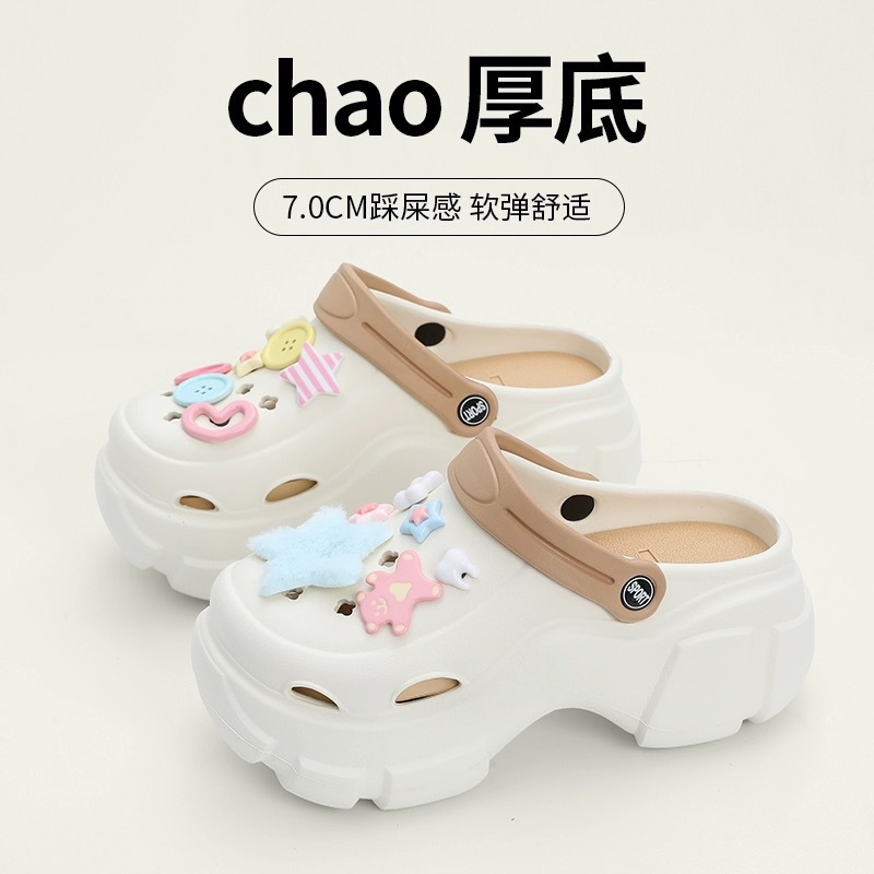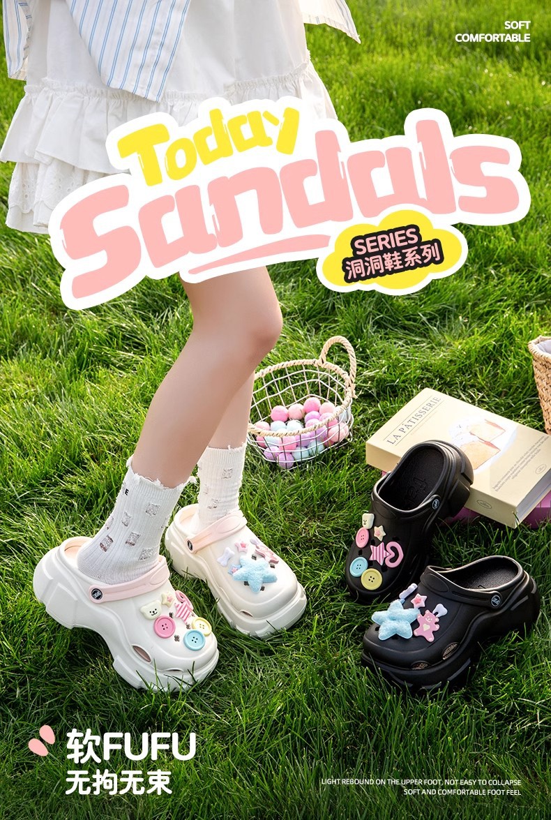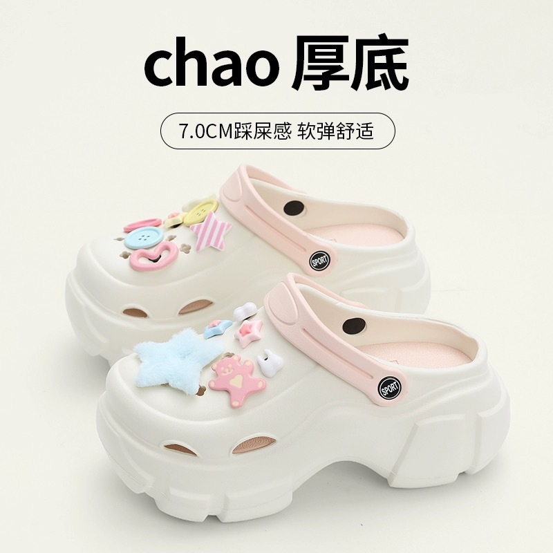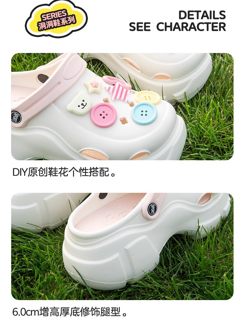 스타 버튼 홀 신발 여성 여름 의류 슬리퍼 2024 새로운 두꺼운 밑창 강화 미끄럼 방지 양방향 샌들스토어 가기