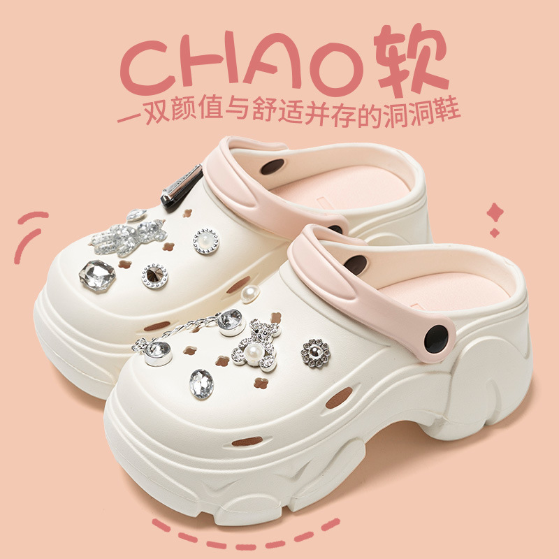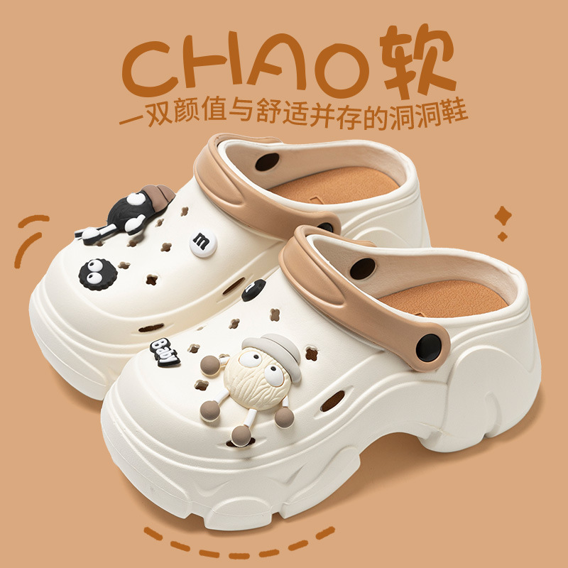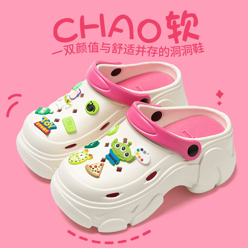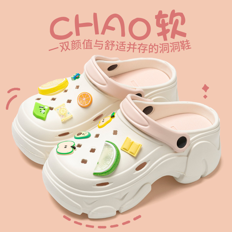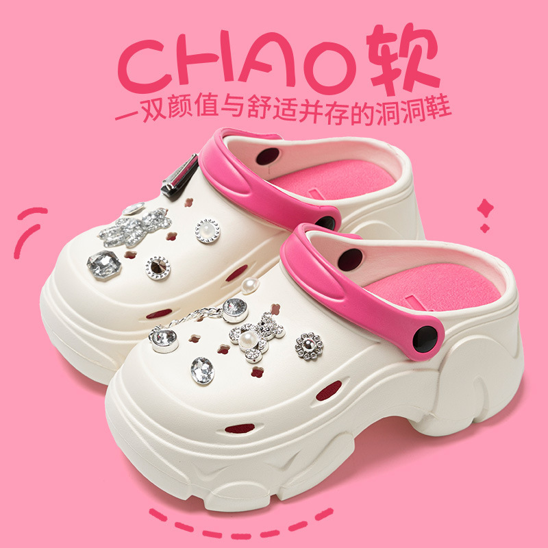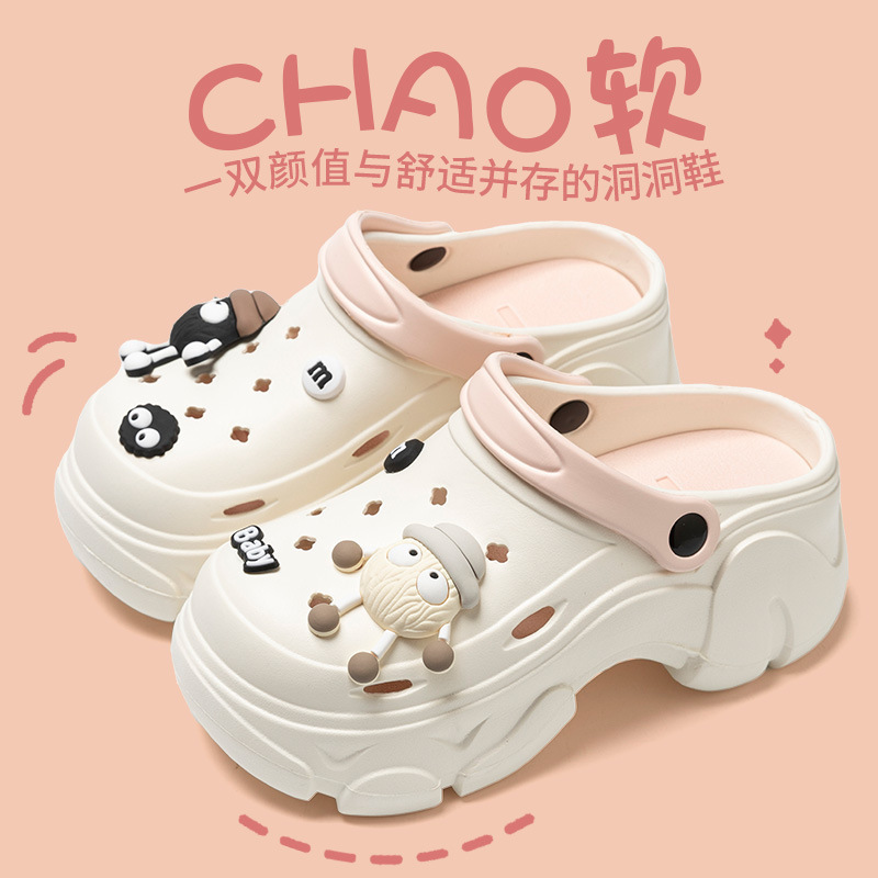 스타 버튼 홀 신발 여성 여름 의류 슬리퍼 2024 새로운 두꺼운 밑창 강화 미끄럼 방지 양방향 샌들스토어 가기