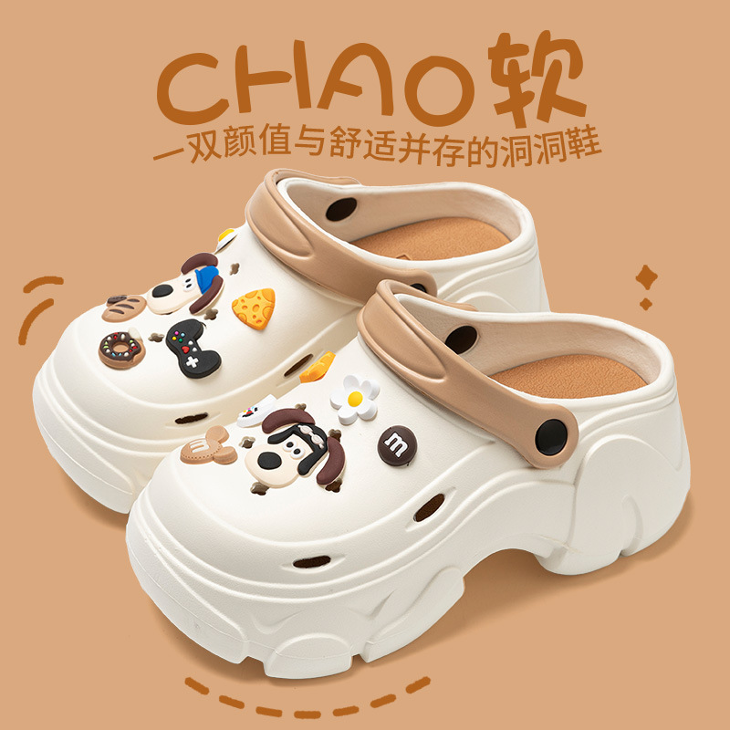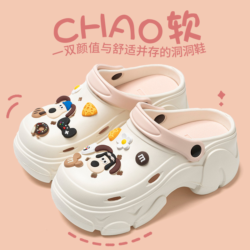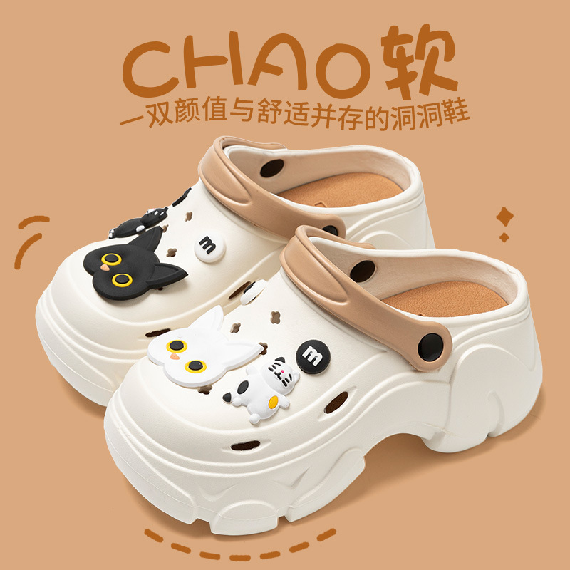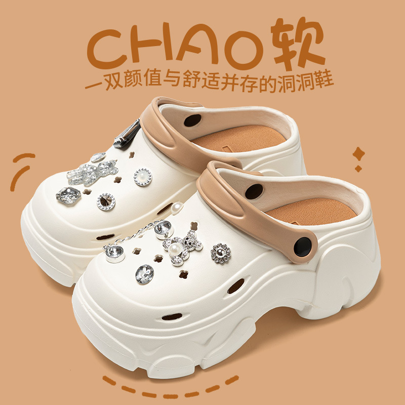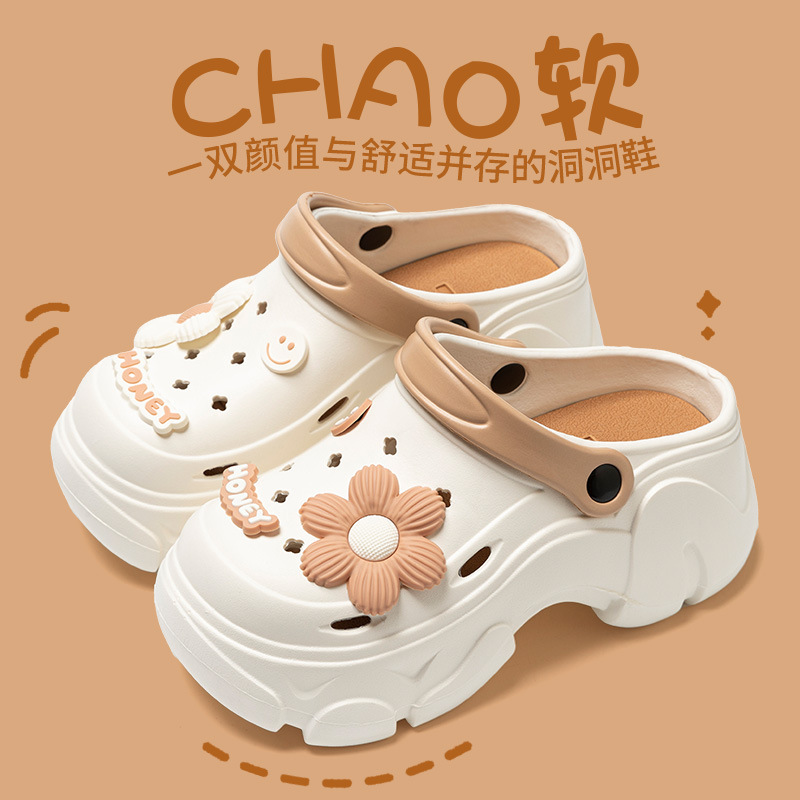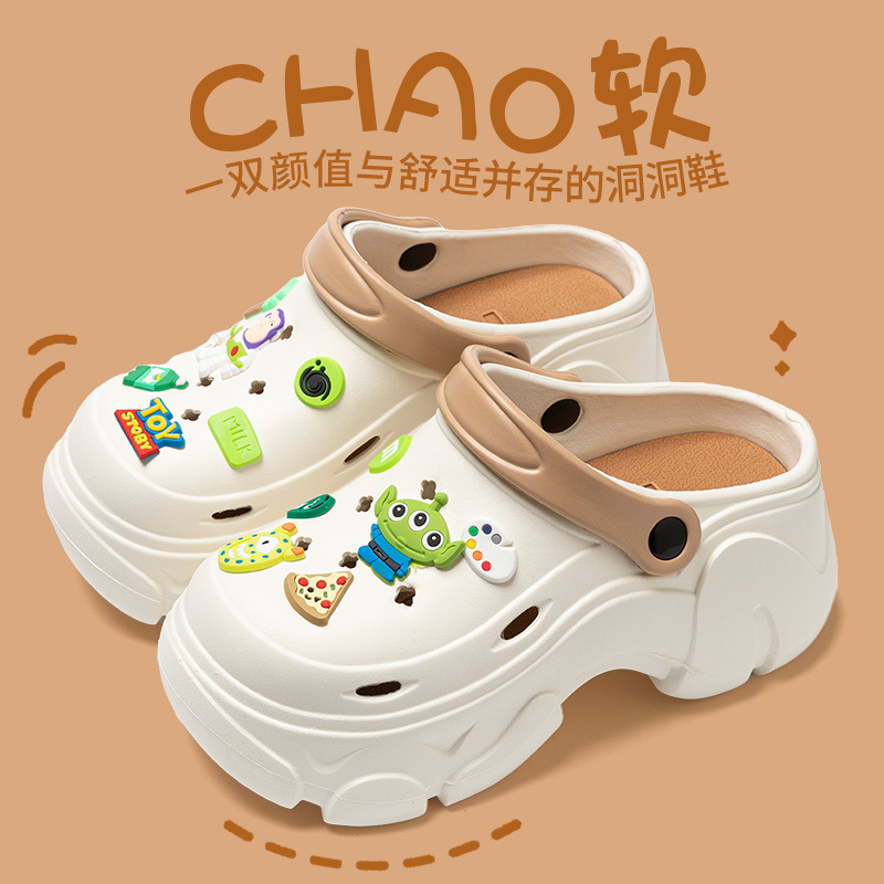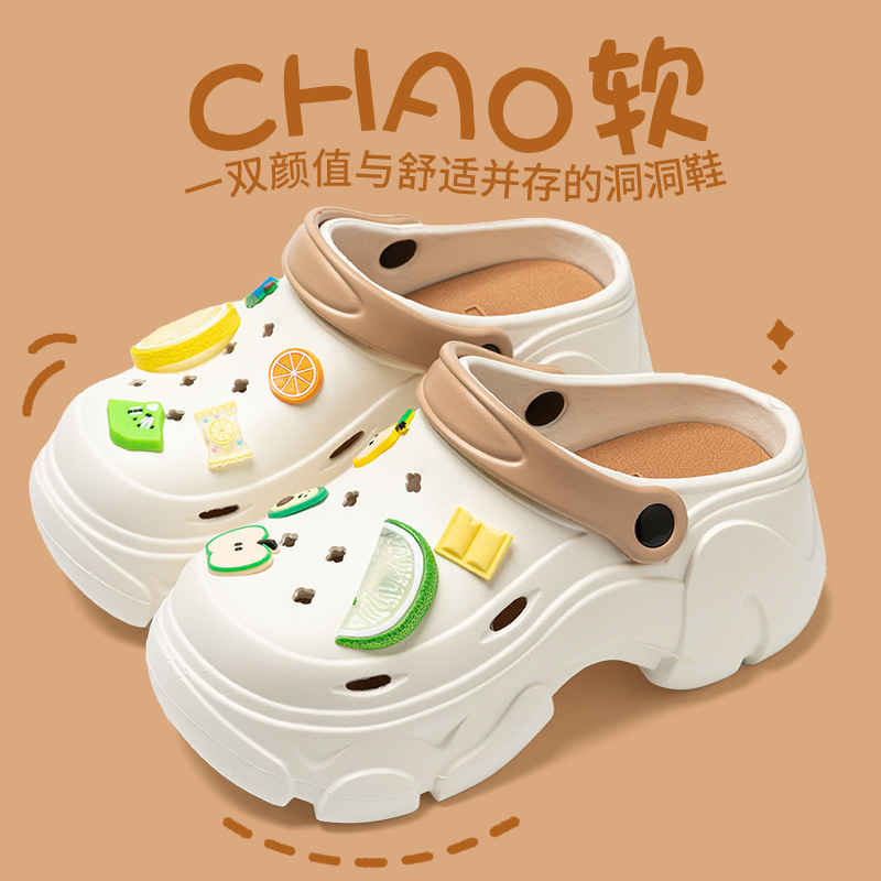 스타 버튼 홀 신발 여성 여름 의류 슬리퍼 2024 새로운 두꺼운 밑창 강화 미끄럼 방지 양방향 샌들스토어 가기