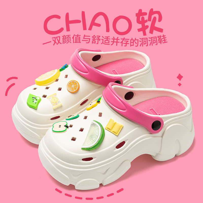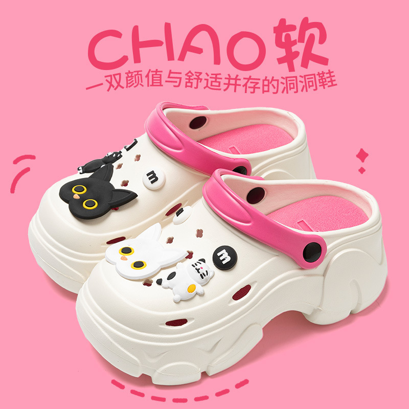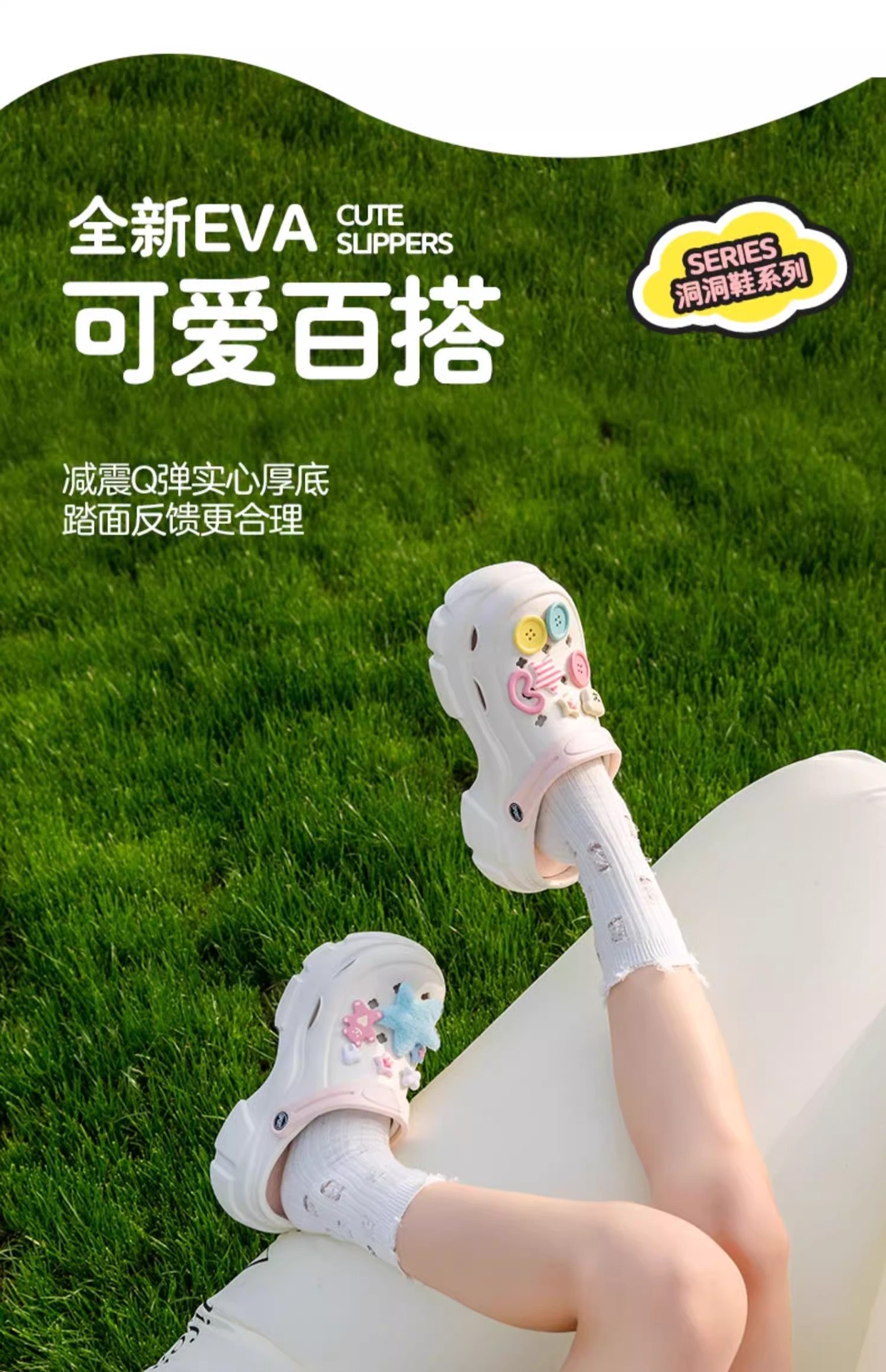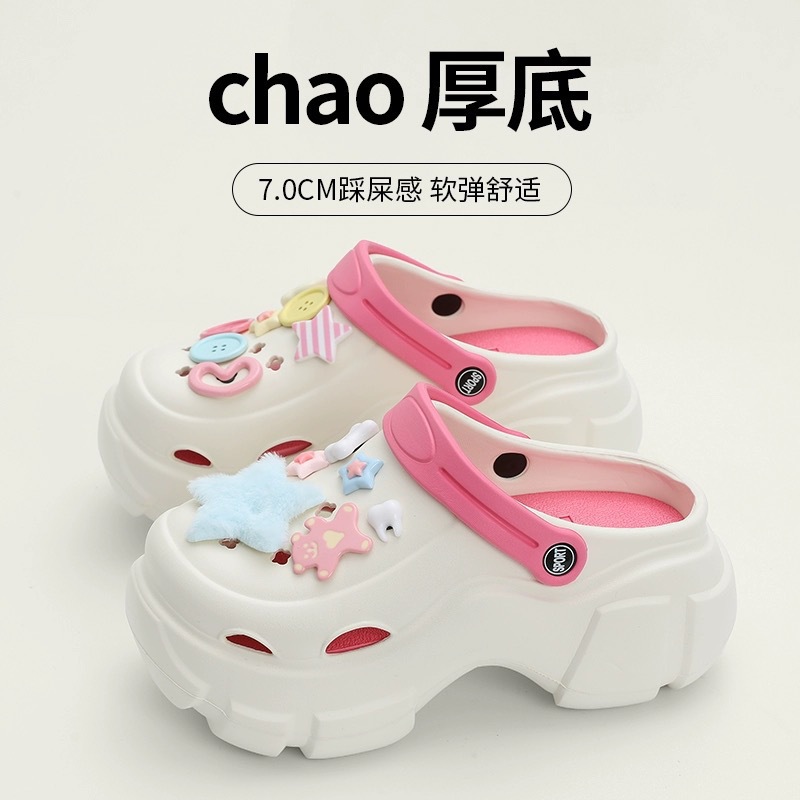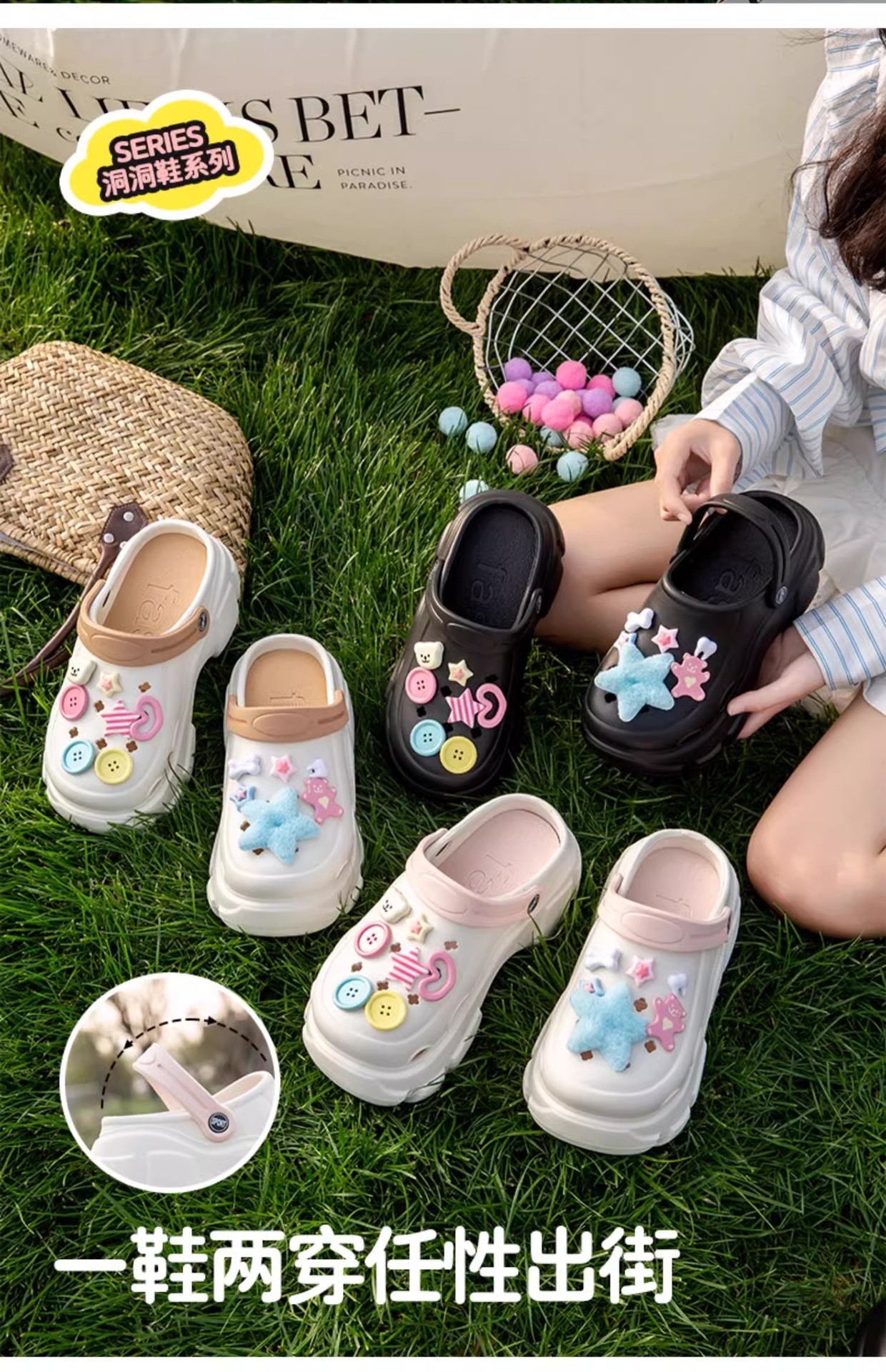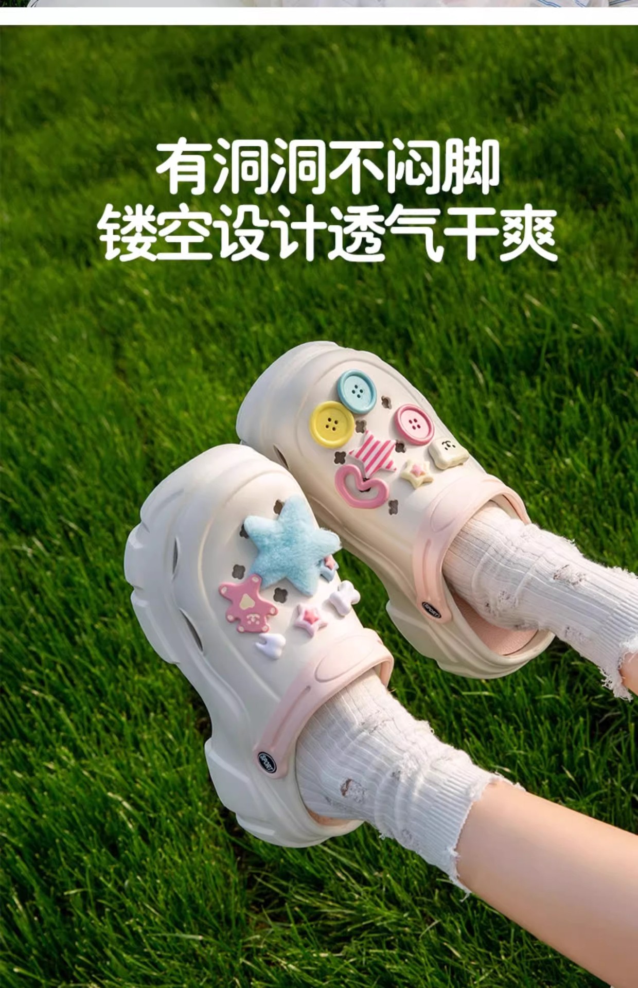 스타 버튼 홀 신발 여성 여름 의류 슬리퍼 2024 새로운 두꺼운 밑창 강화 미끄럼 방지 양방향 샌들
