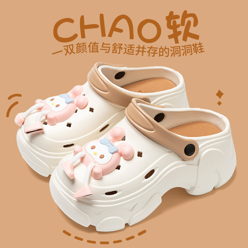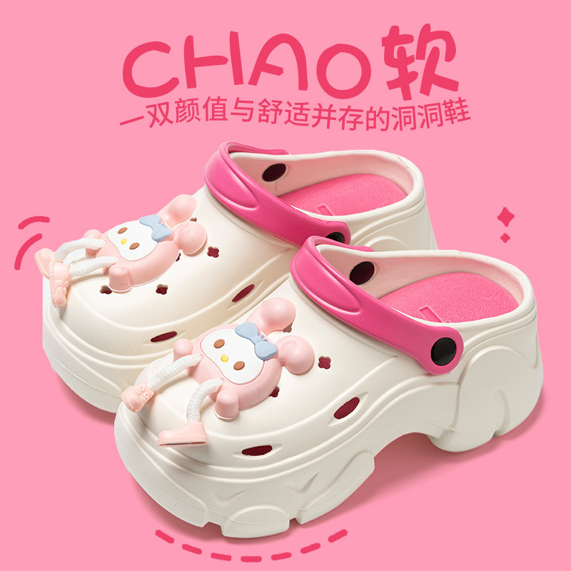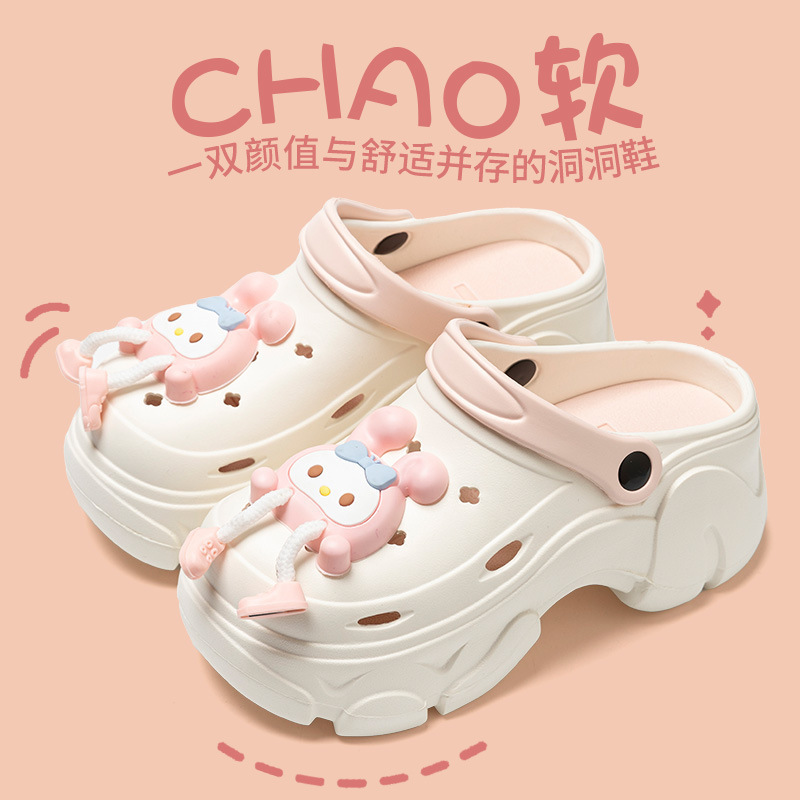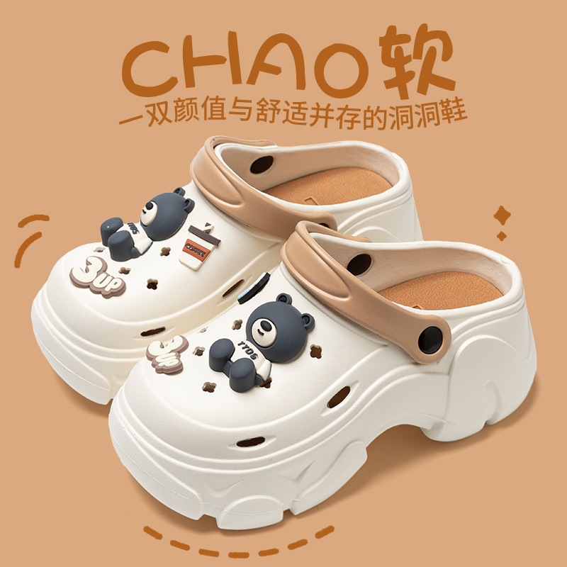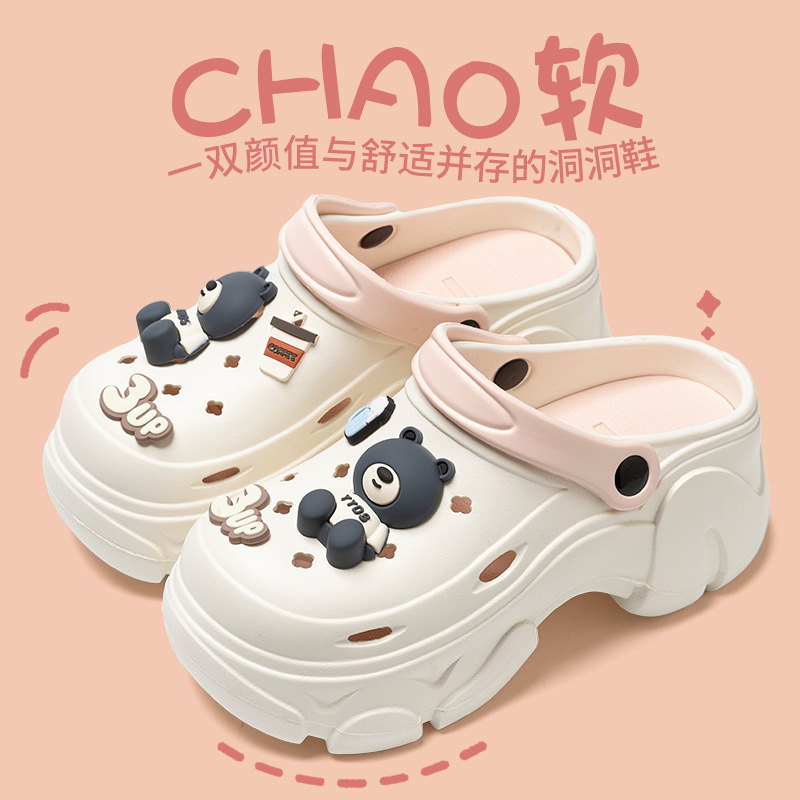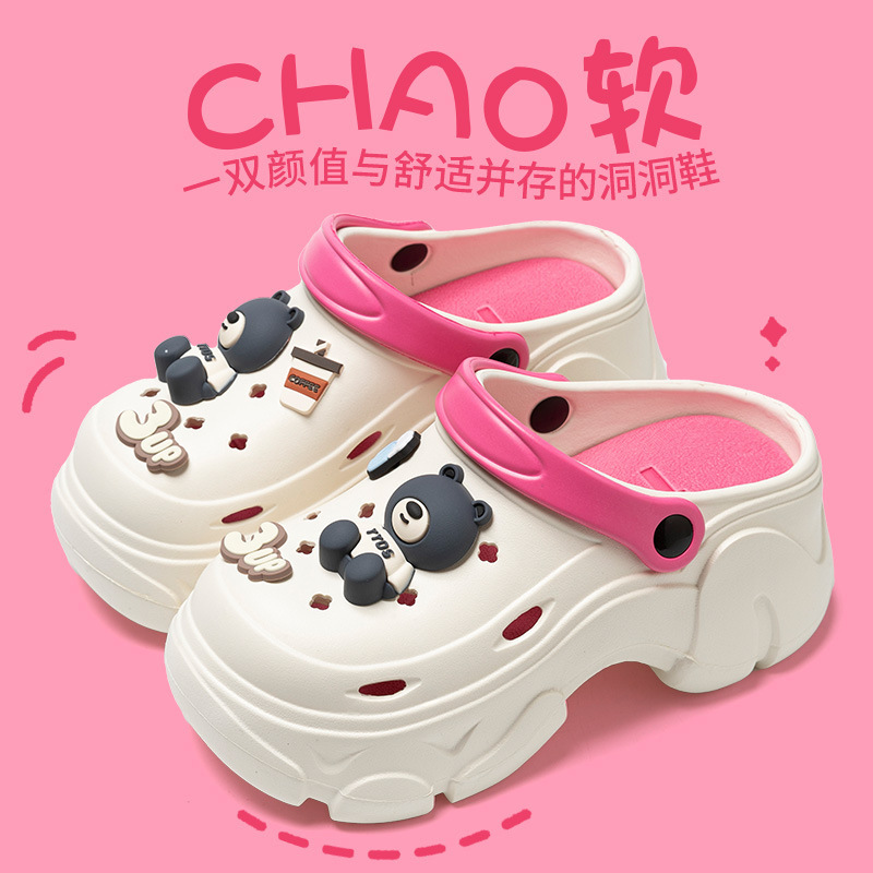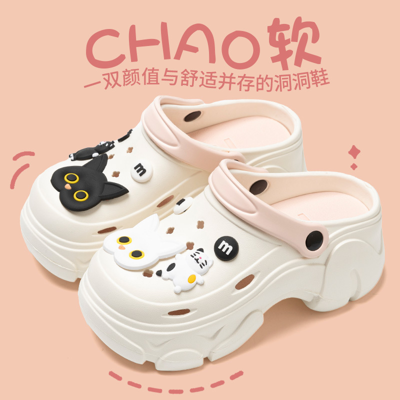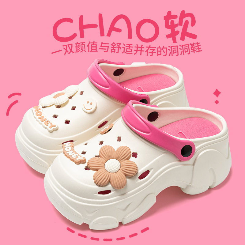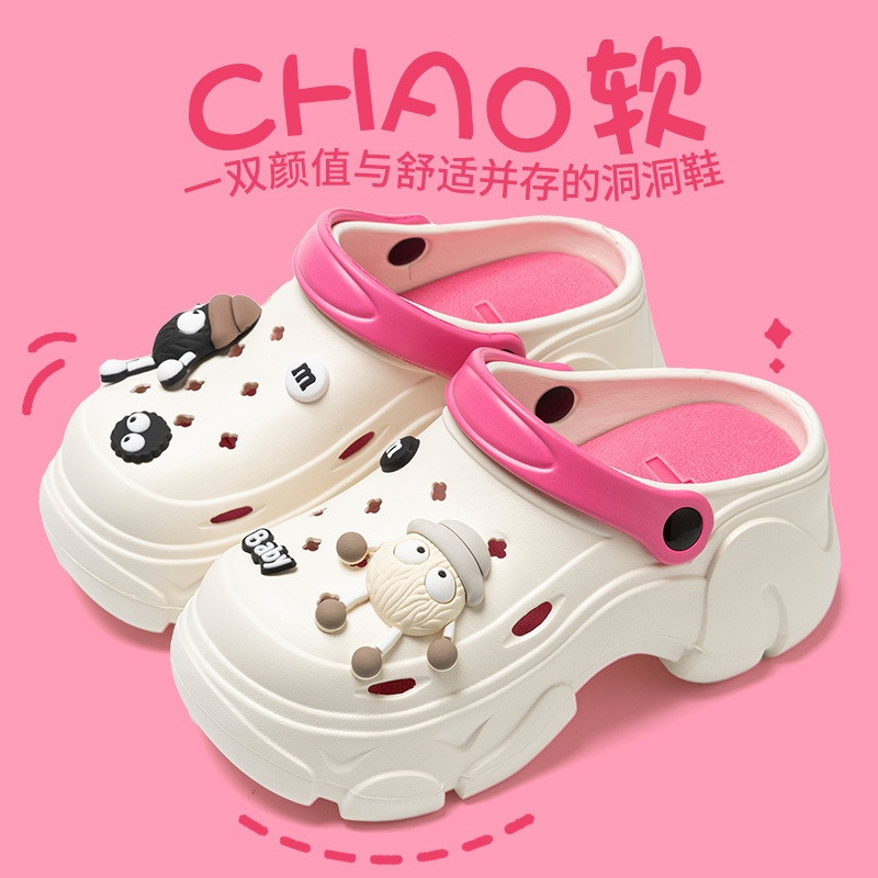 스타 버튼 홀 신발 여성 여름 의류 슬리퍼 2024 새로운 두꺼운 밑창 강화 미끄럼 방지 양방향 샌들