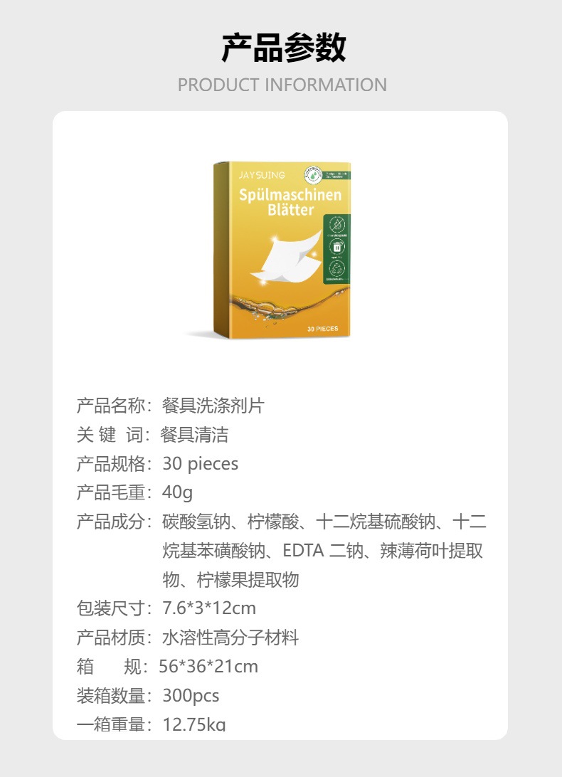 JAYSUING 식기 세제 정제 주방 식기 오염 제거 신선한 부드러운 청소 접시 청소 정제