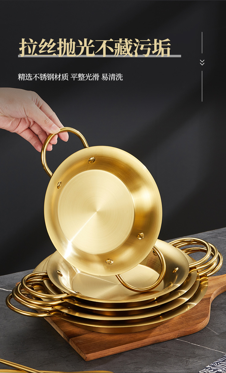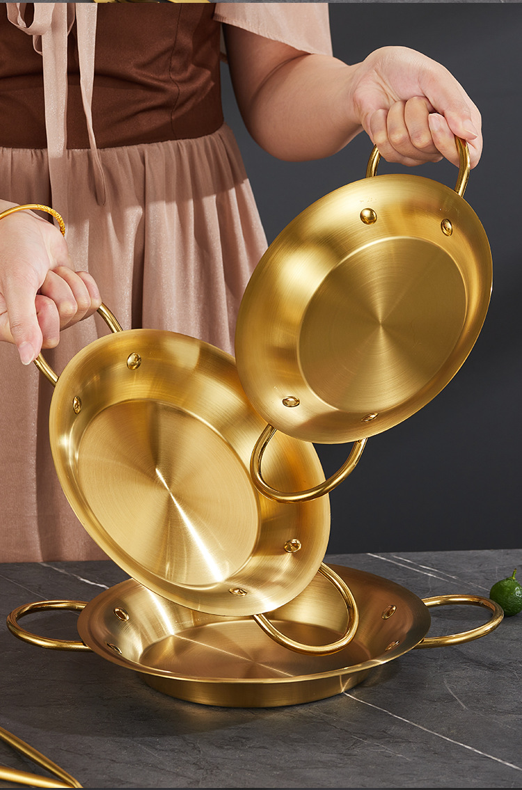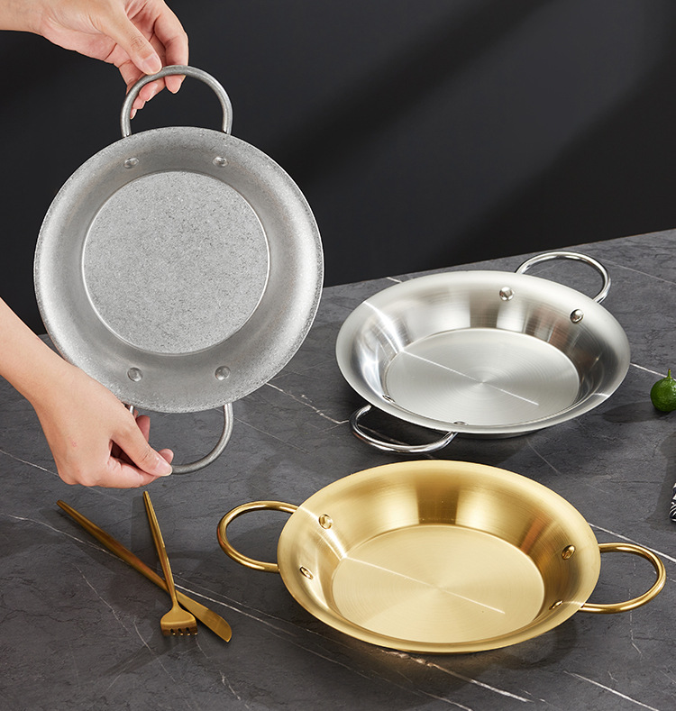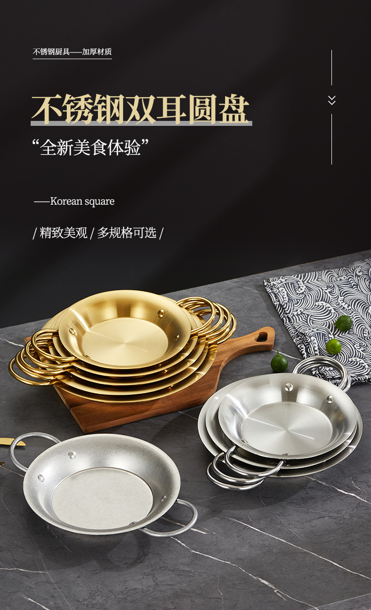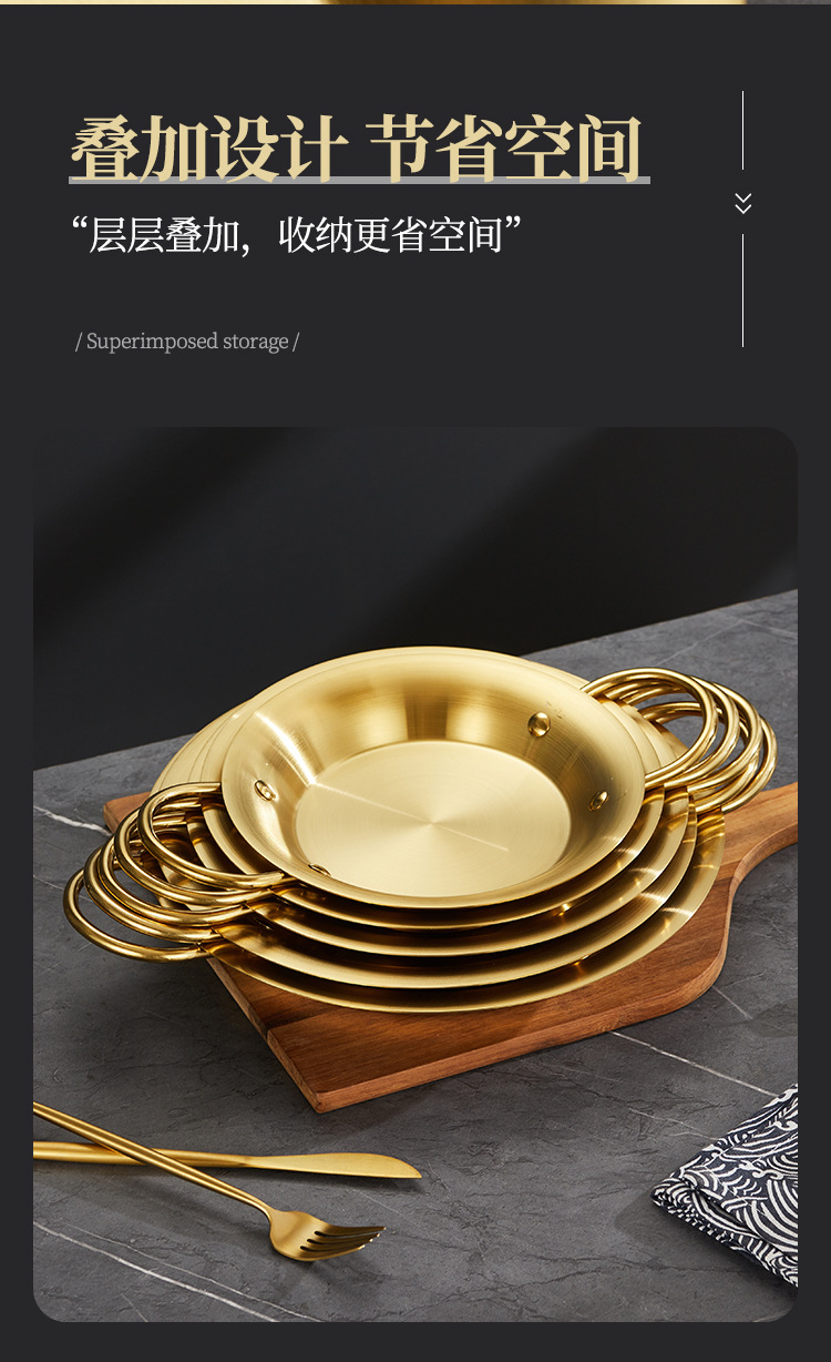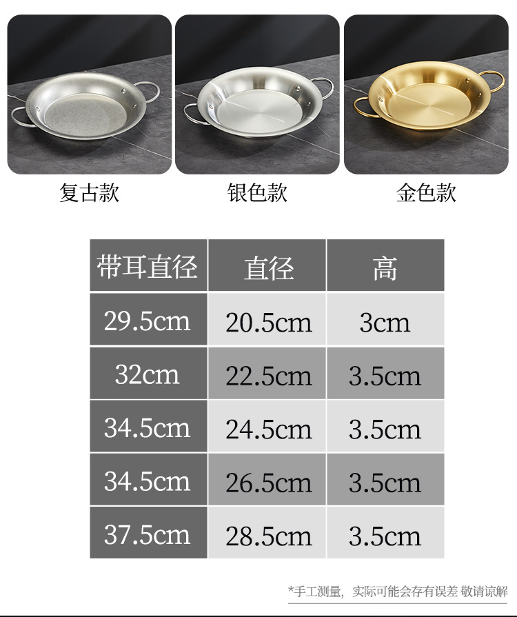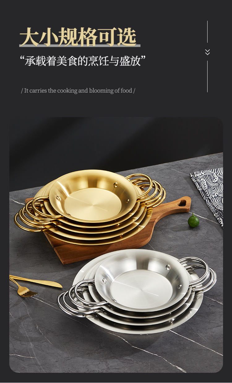 상업적인 여분의 두꺼운 스테인리스 해산물 플레이트 스테이크 플레이트 트레이 과일 플레이트 평면 바닥 디스크 황금 바베큐 플레이트스토어 가기