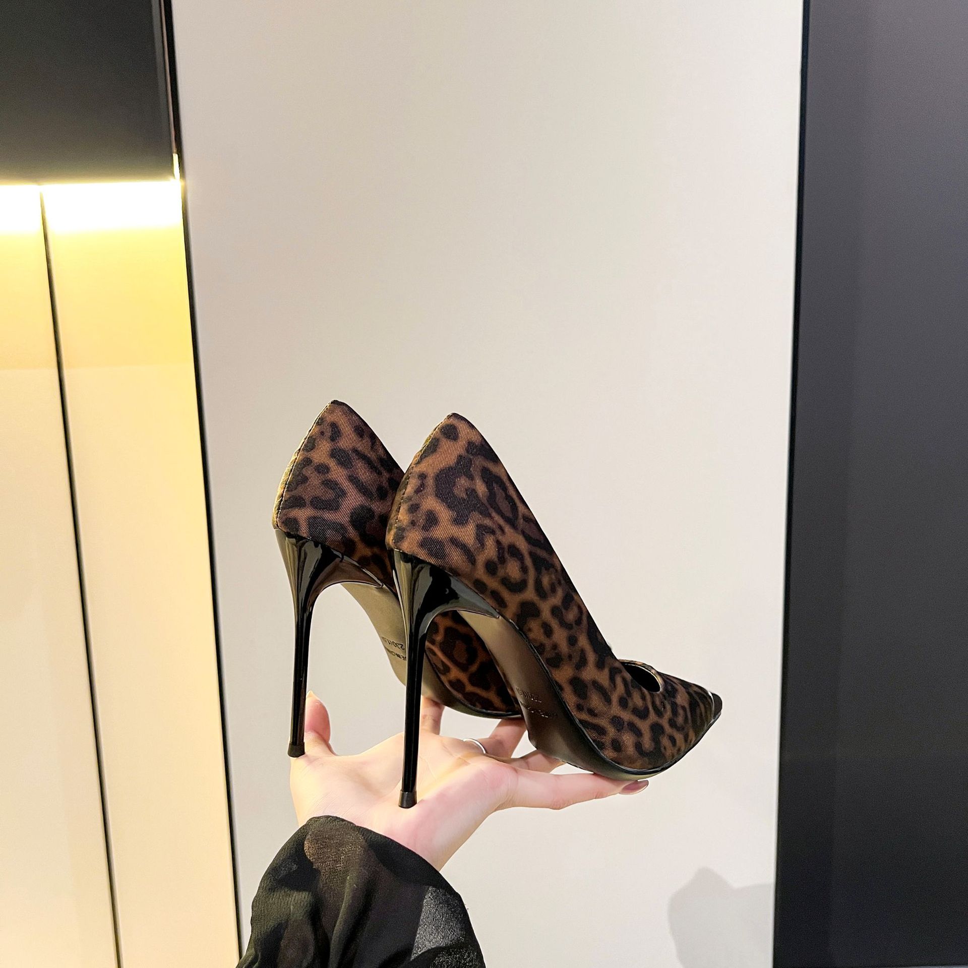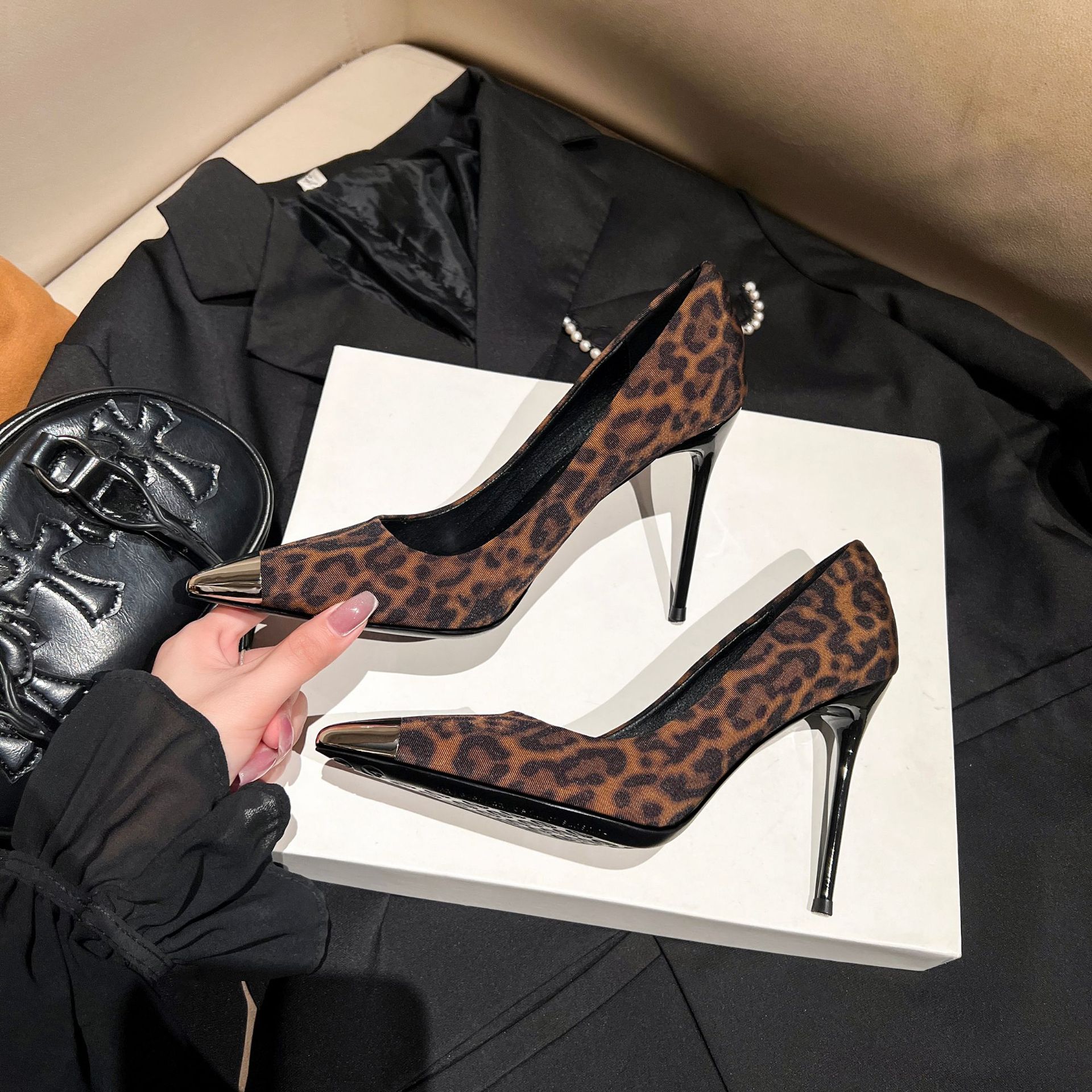 가을 새로운 프랑스 금속 머리 레오파드 무늬 스틸레토 힐 여성 조커 기질 사교계 섹시한 얕은 입스토어 가기
