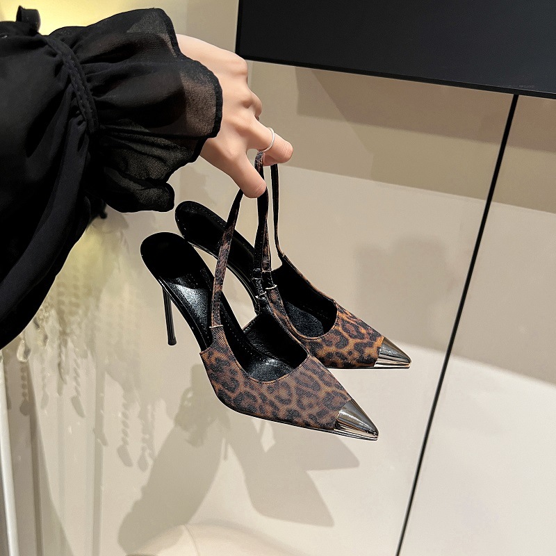 • 레오파드 프린트 아이언 토 슈즈 8CM