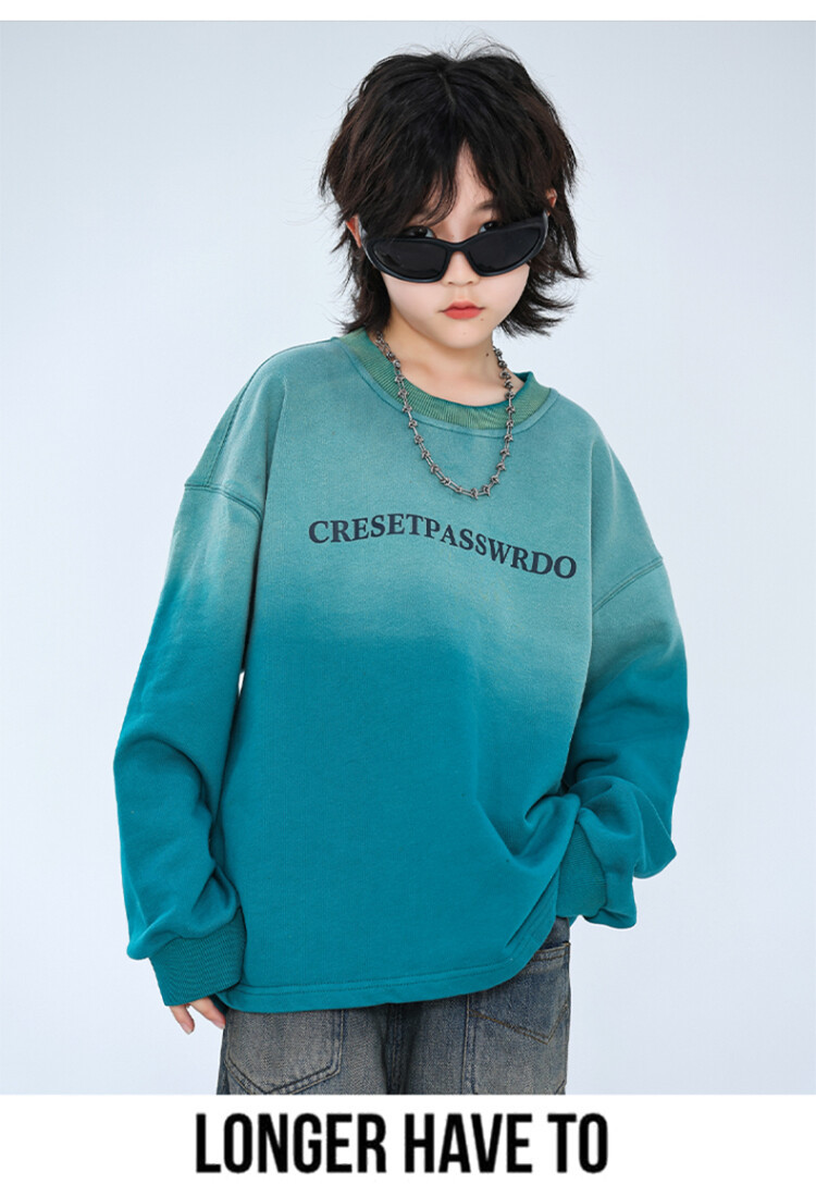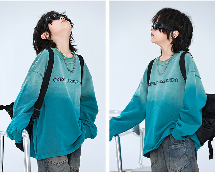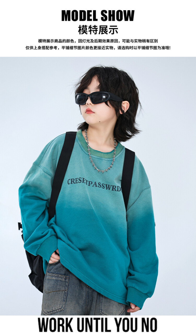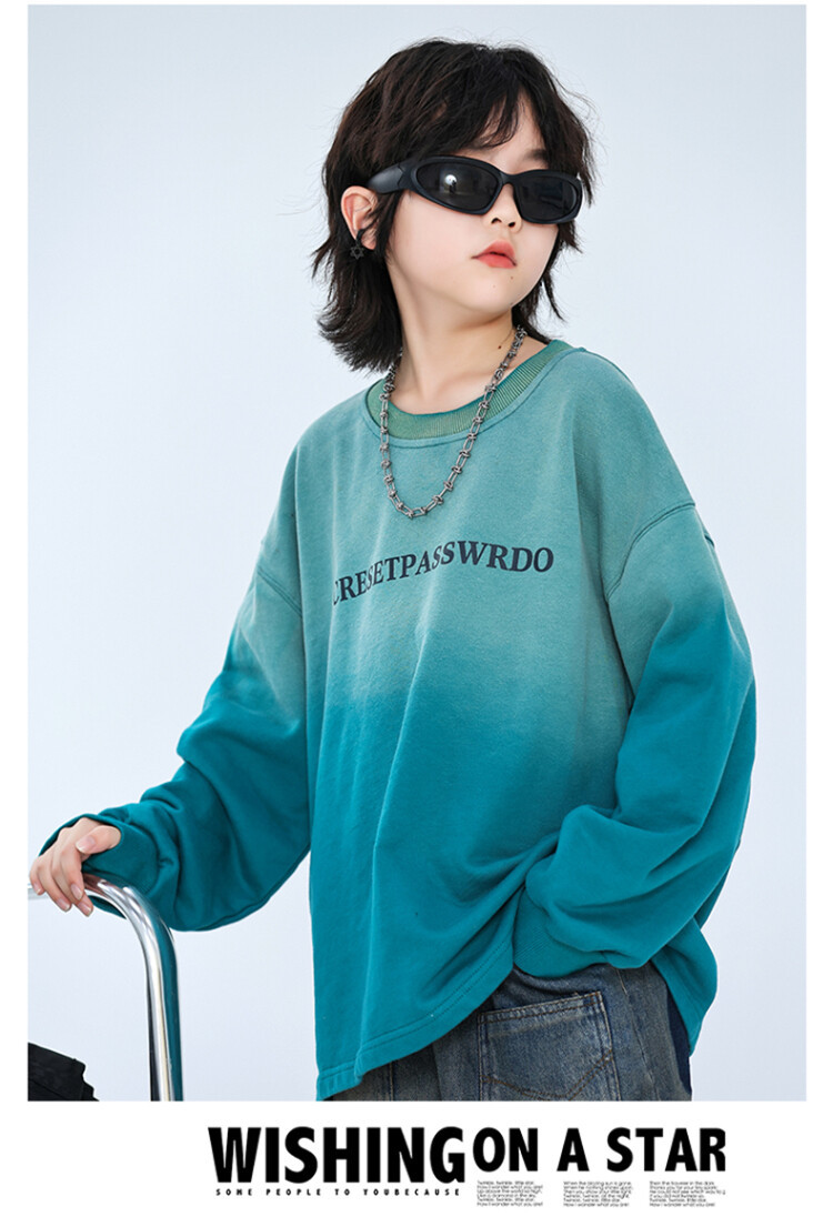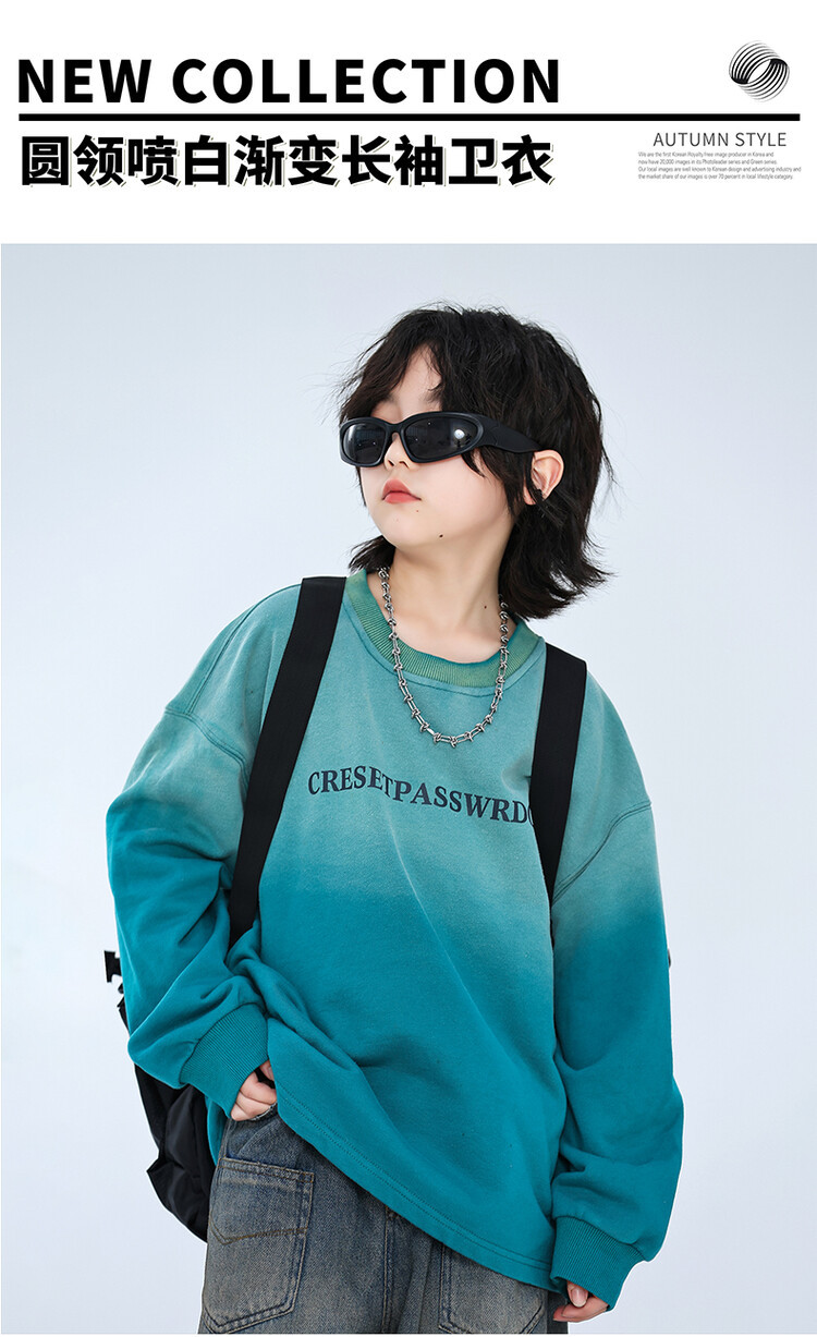 소년 이른 봄 유행 브랜드 그라데이션 느슨한 스웨터 2025 새로운 어린이 소년 봄, 가을 멋진 잘 생긴 얇은 티셔츠 탑스토어 가기