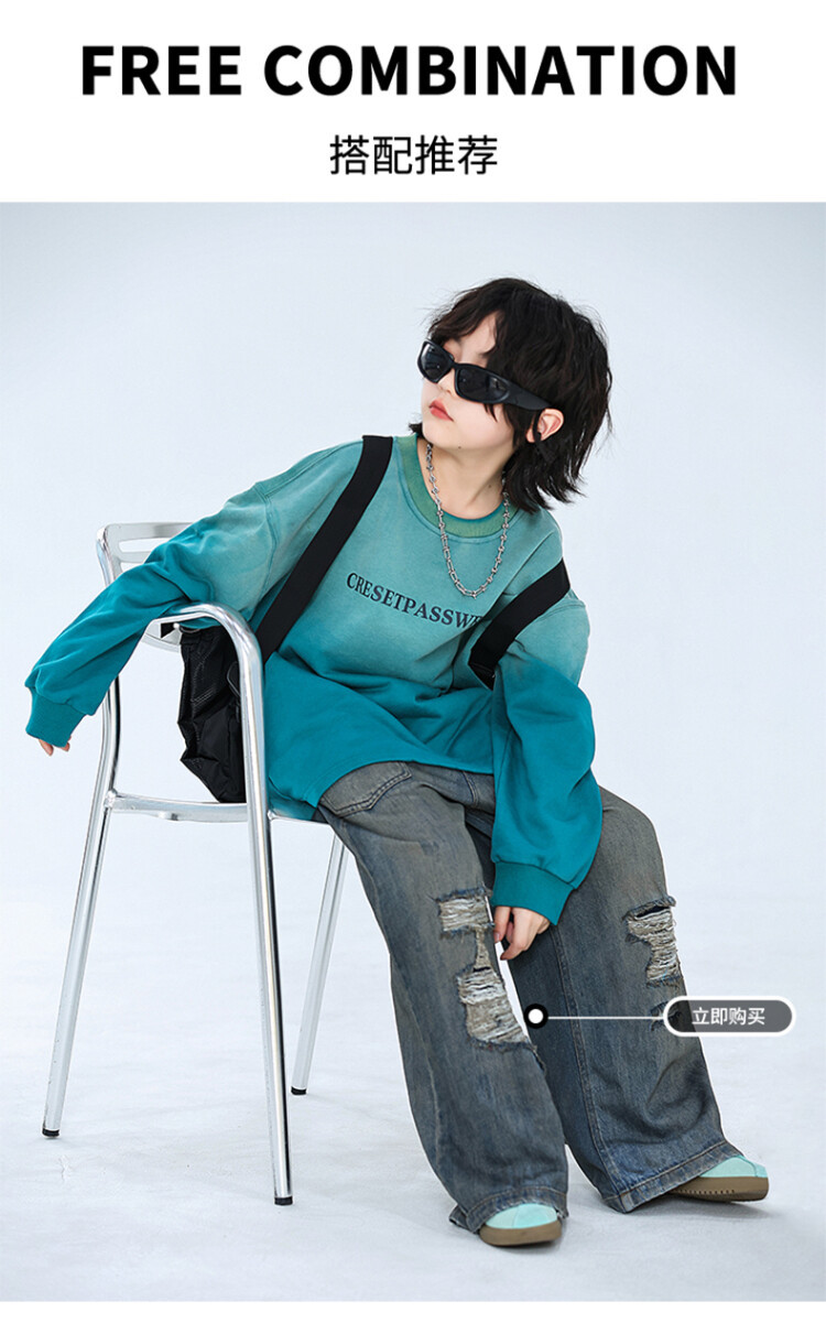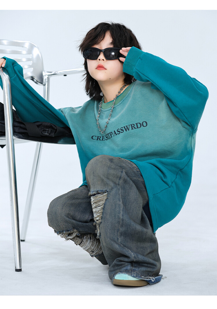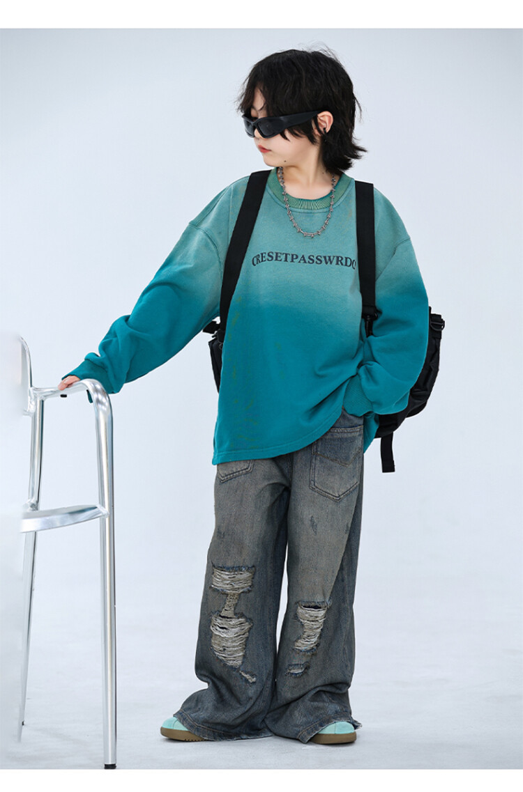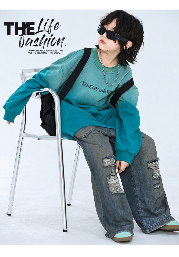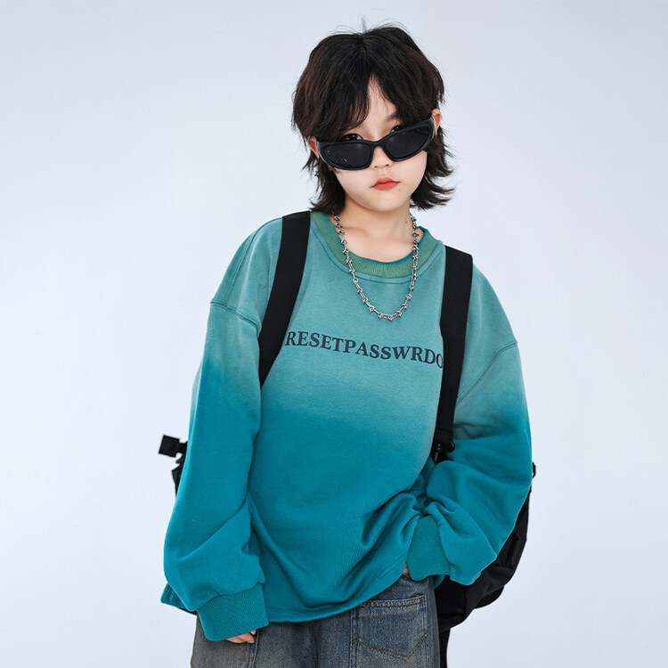 소년 이른 봄 유행 브랜드 그라데이션 느슨한 스웨터 2025 새로운 어린이 소년 봄, 가을 멋진 잘 생긴 얇은 티셔츠 탑스토어 가기