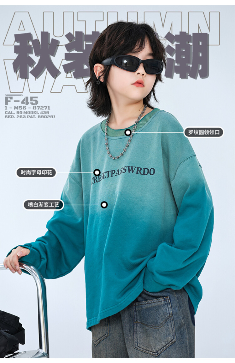 소년 이른 봄 유행 브랜드 그라데이션 느슨한 스웨터 2025 새로운 어린이 소년 봄, 가을 멋진 잘 생긴 얇은 티셔츠 탑