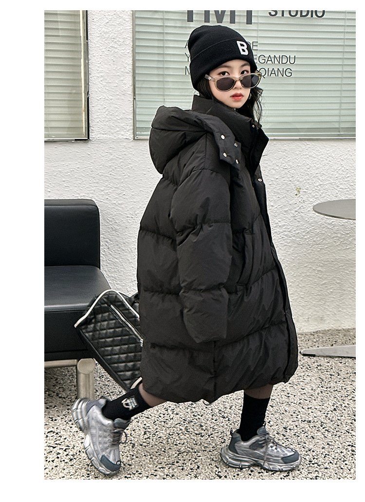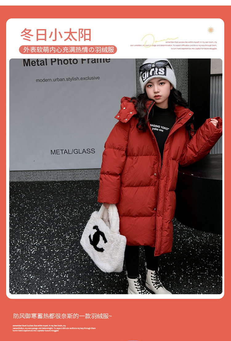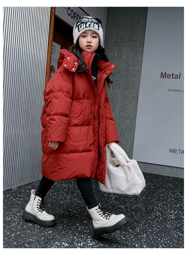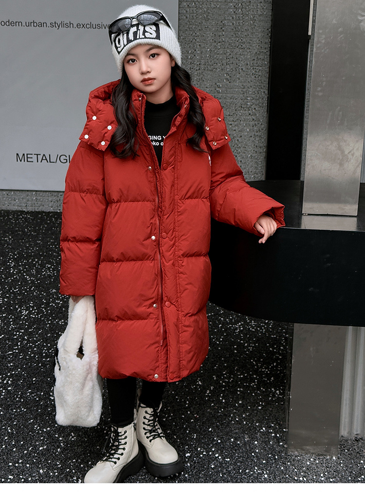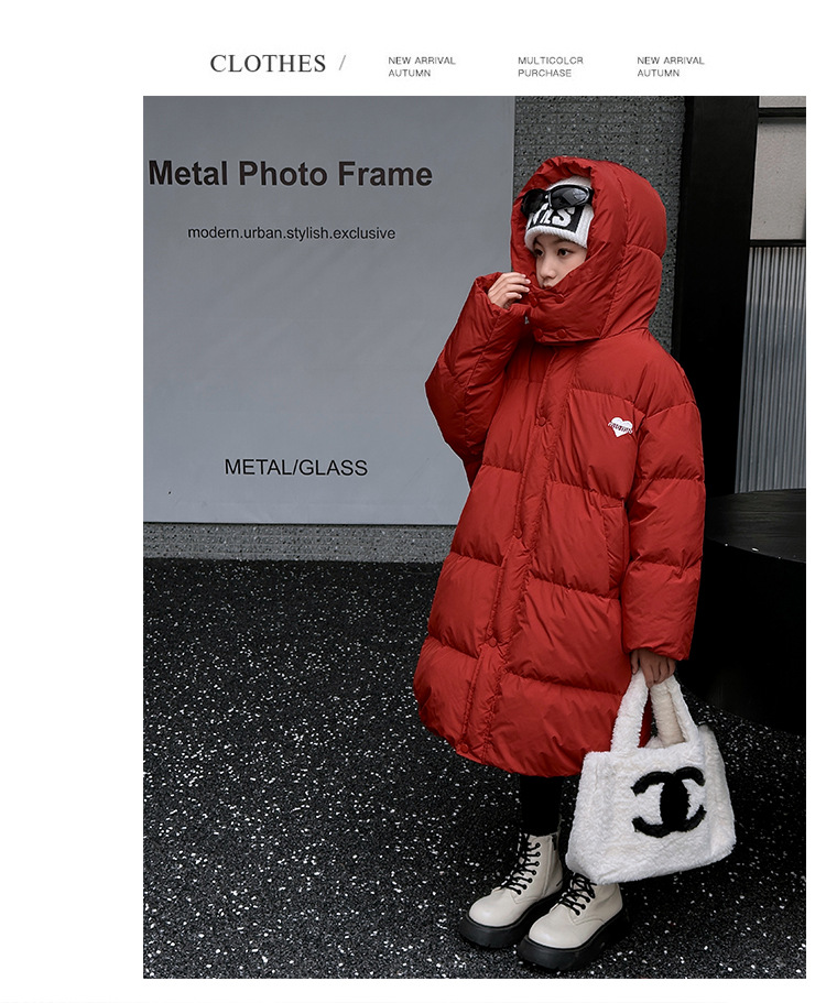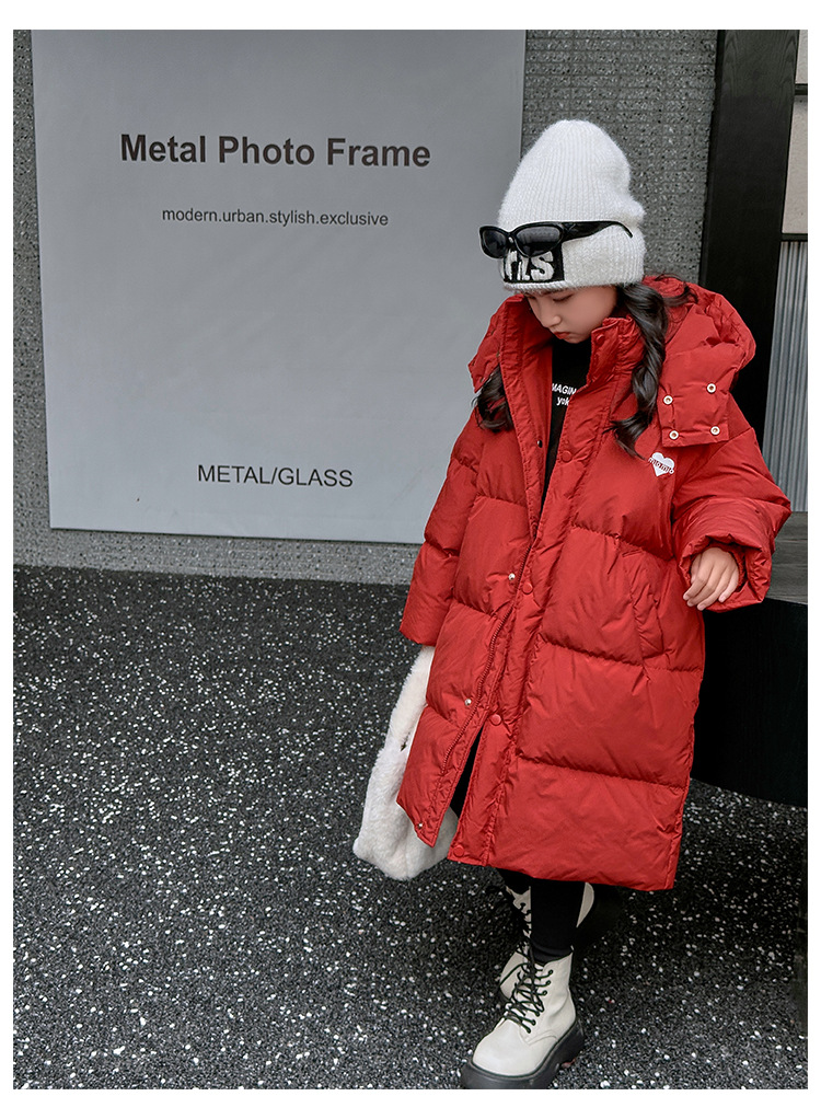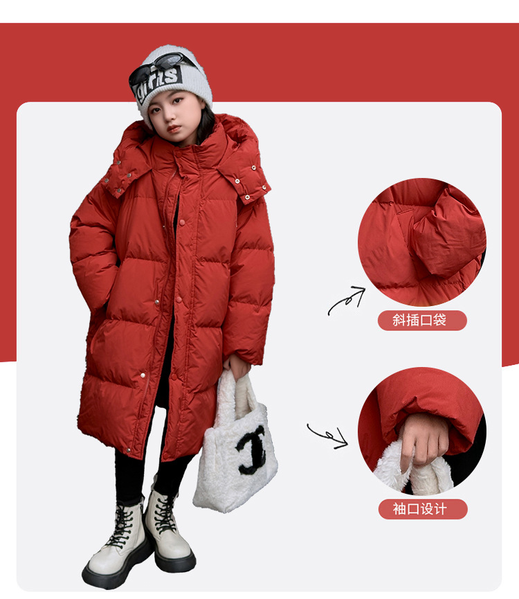 소녀 겨울 옷 수 놓은 사랑 긴 부풀어 오른 흰색 오리 다운 재킷 2024 새로운 스타일 소녀의 두꺼운 후드 자켓 트렌디스토어 가기