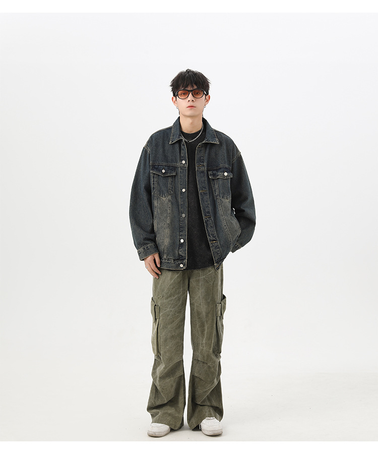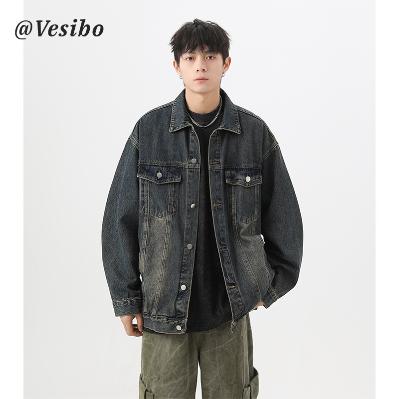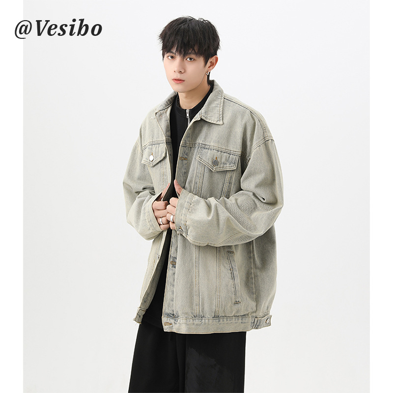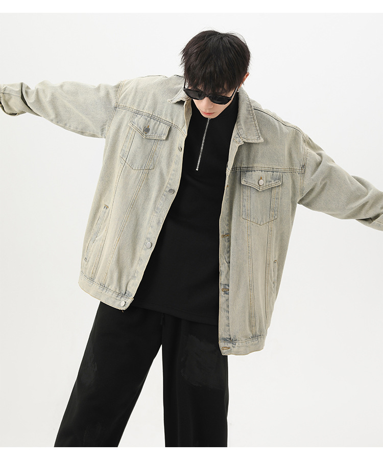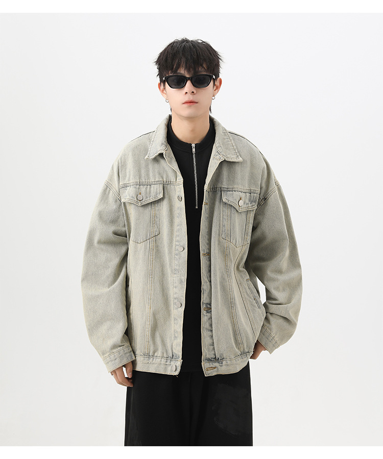 하이 스트리트 파이 핸섬 데님 재킷 남자 가을 미국 세탁 오래 된 옐로우 머드 재킷 레트로 트렌디 브랜드 커플 탑스토어 가기