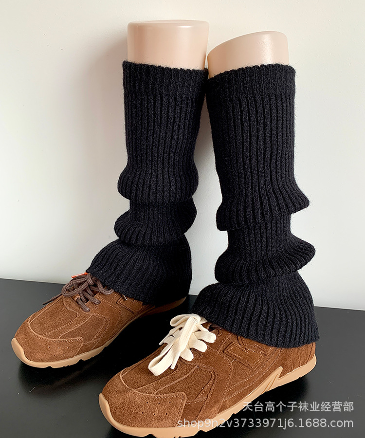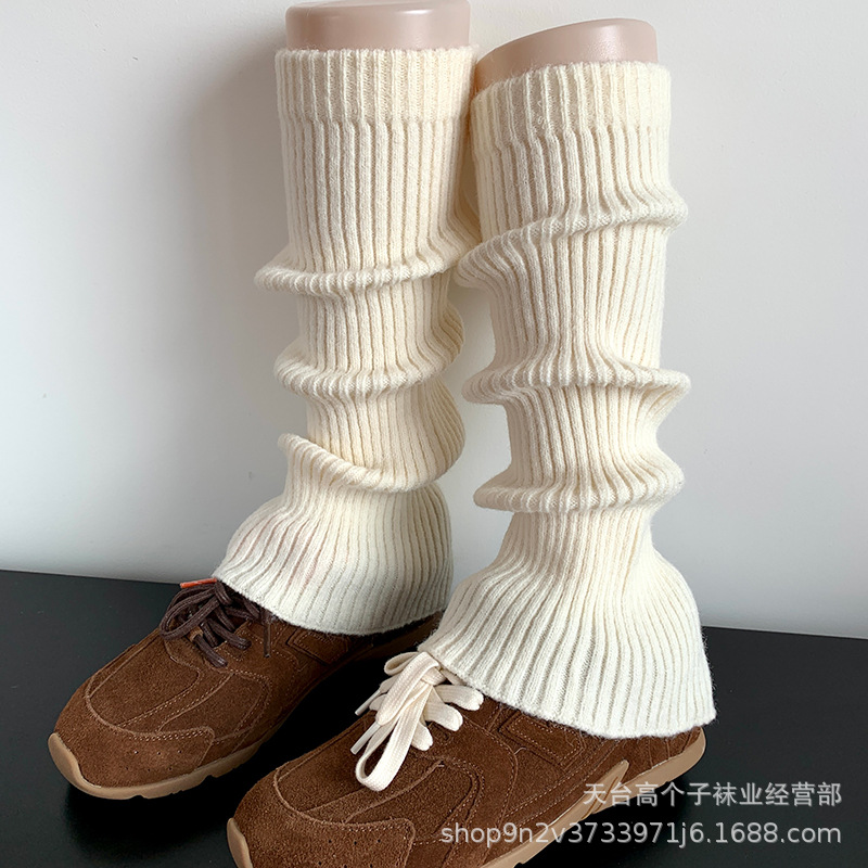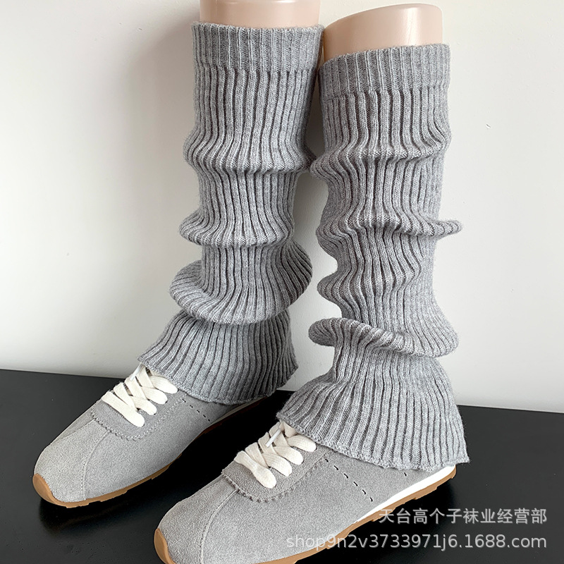 가을과 겨울 회색 미우 종아리 니트 양말 여성용 흰색 송아지 양말 검은 따뜻한 다리 소매