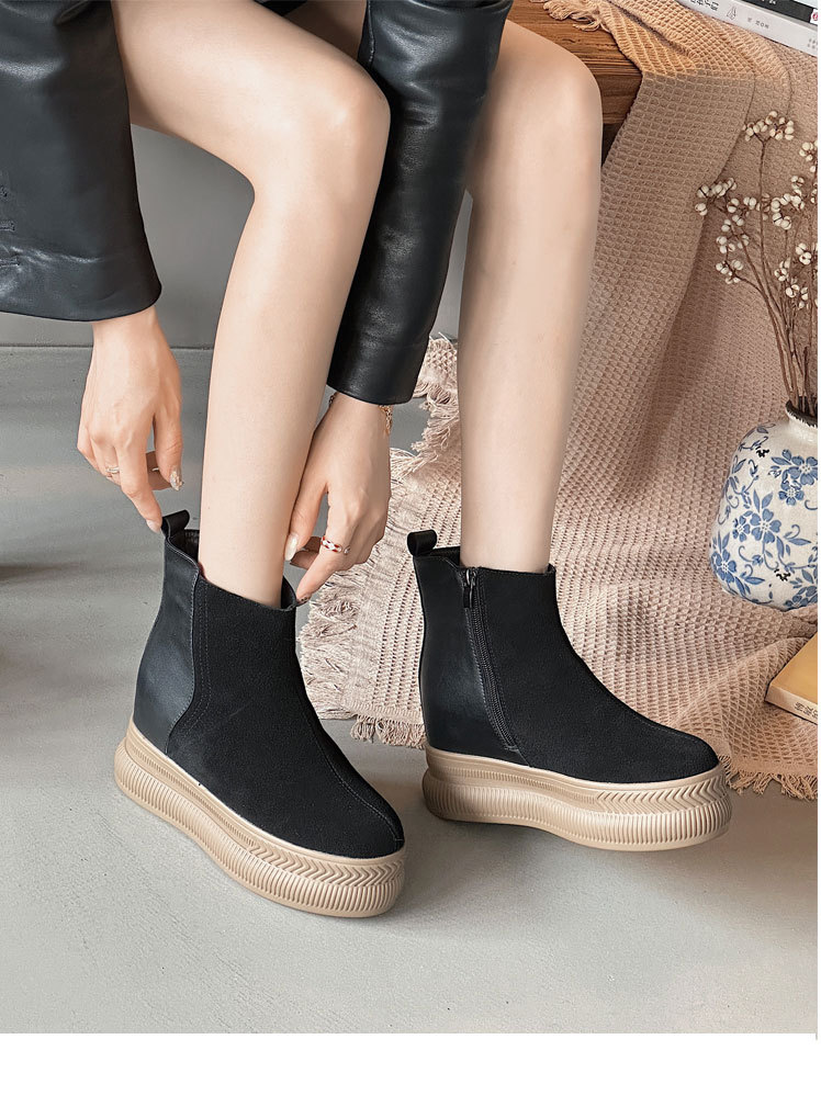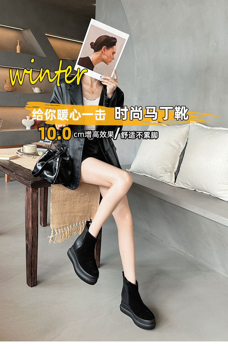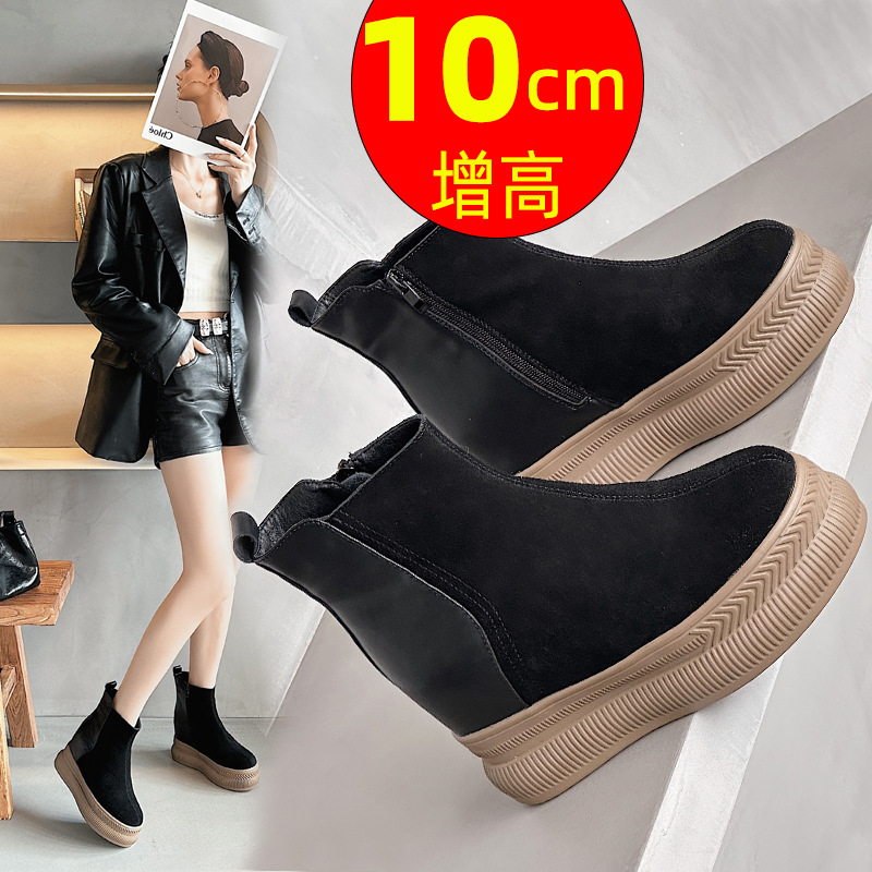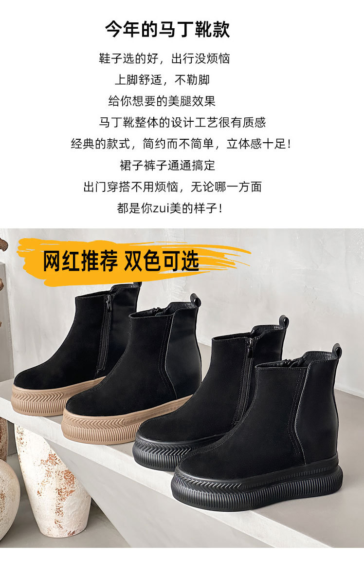 내부 높이 증가 마틴 부츠 여성의 2024 가을 및 겨울 새로운 영국 스타일 두꺼운 바닥 기모 작은 10cm 슈퍼 하이힐 발목 부츠스토어 가기