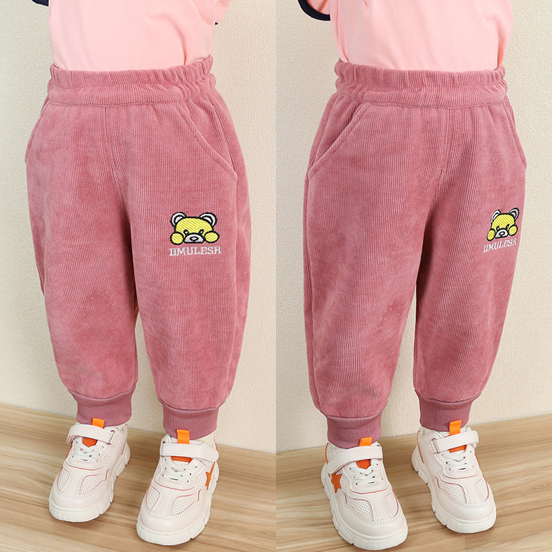 2024 한국식 아기 기모 바지 서양식 올매치 아기 소녀 땀 바지 따뜻한 겨울 바지 착용스토어 가기