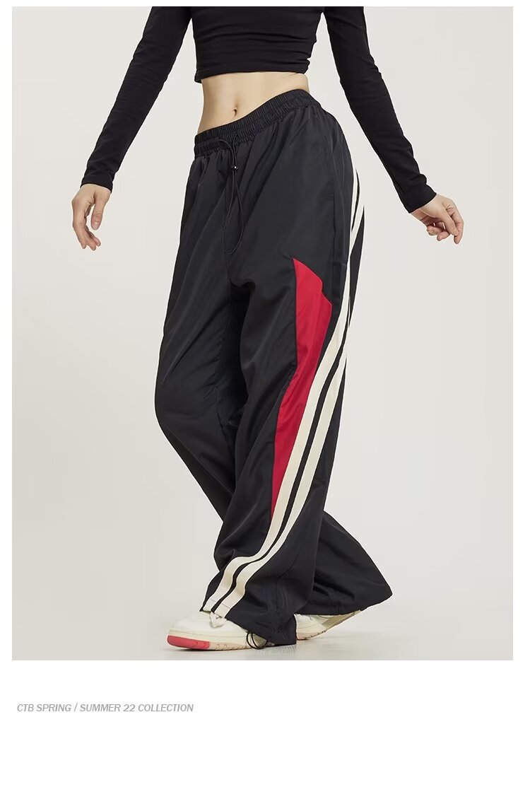국경 간 거리 기능 스타일 스티커 바느질 줄무늬 캐주얼 바지 스트레이트 디자인 센스 바지 남자 여름 올 매치 트렌디스토어 가기