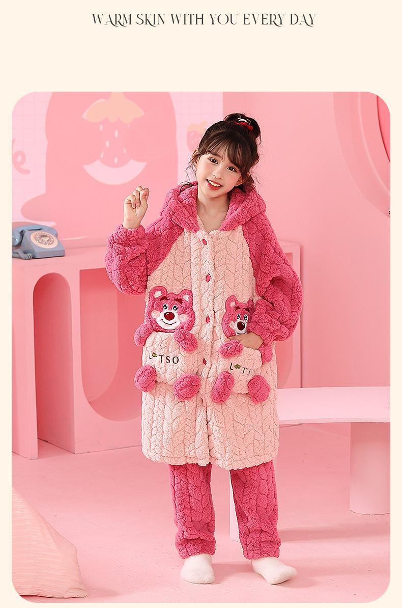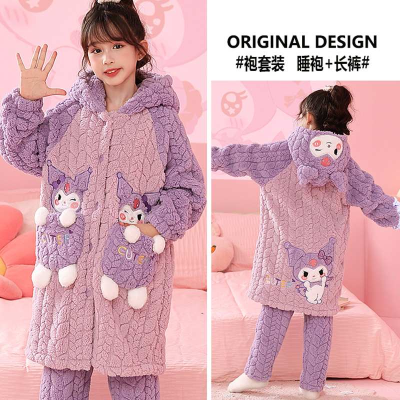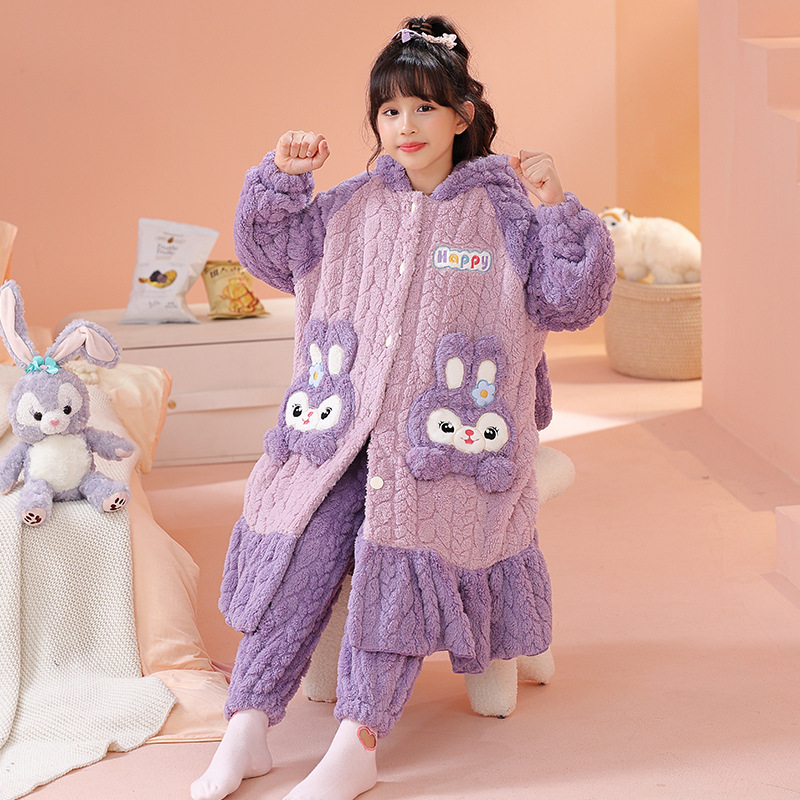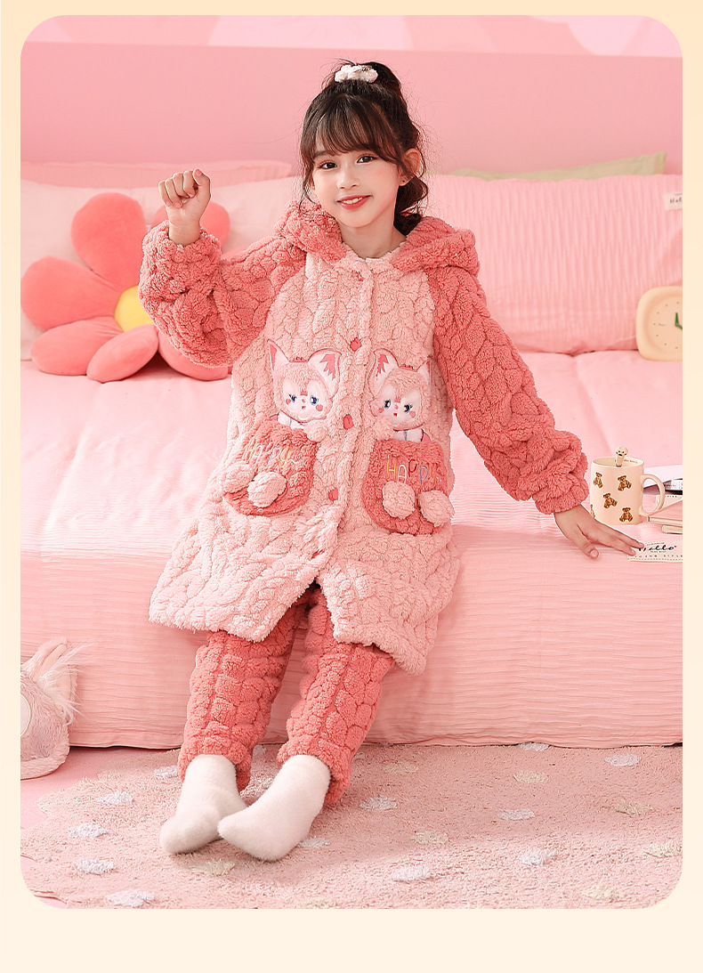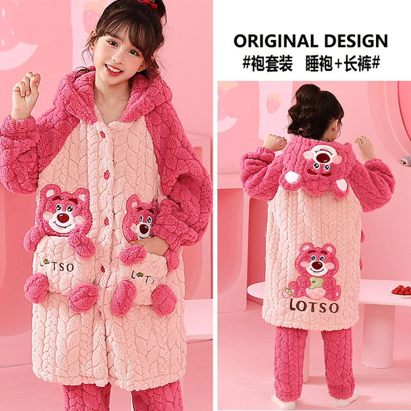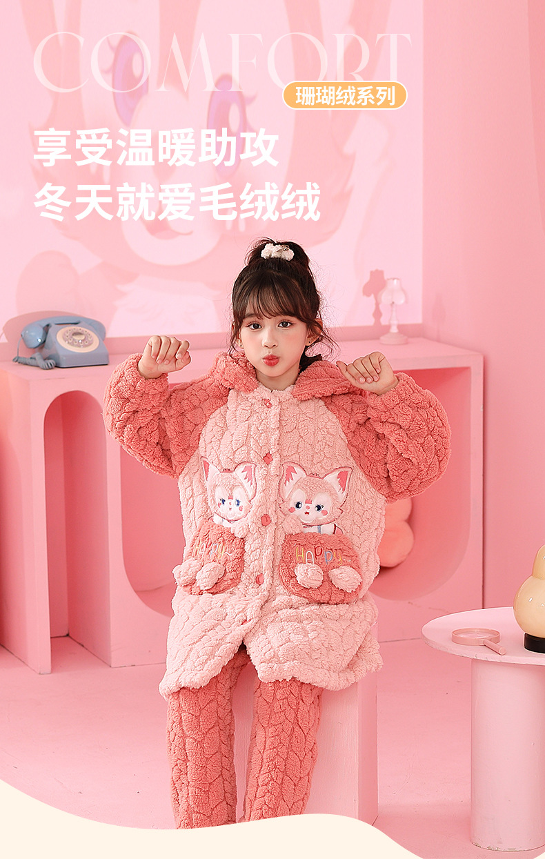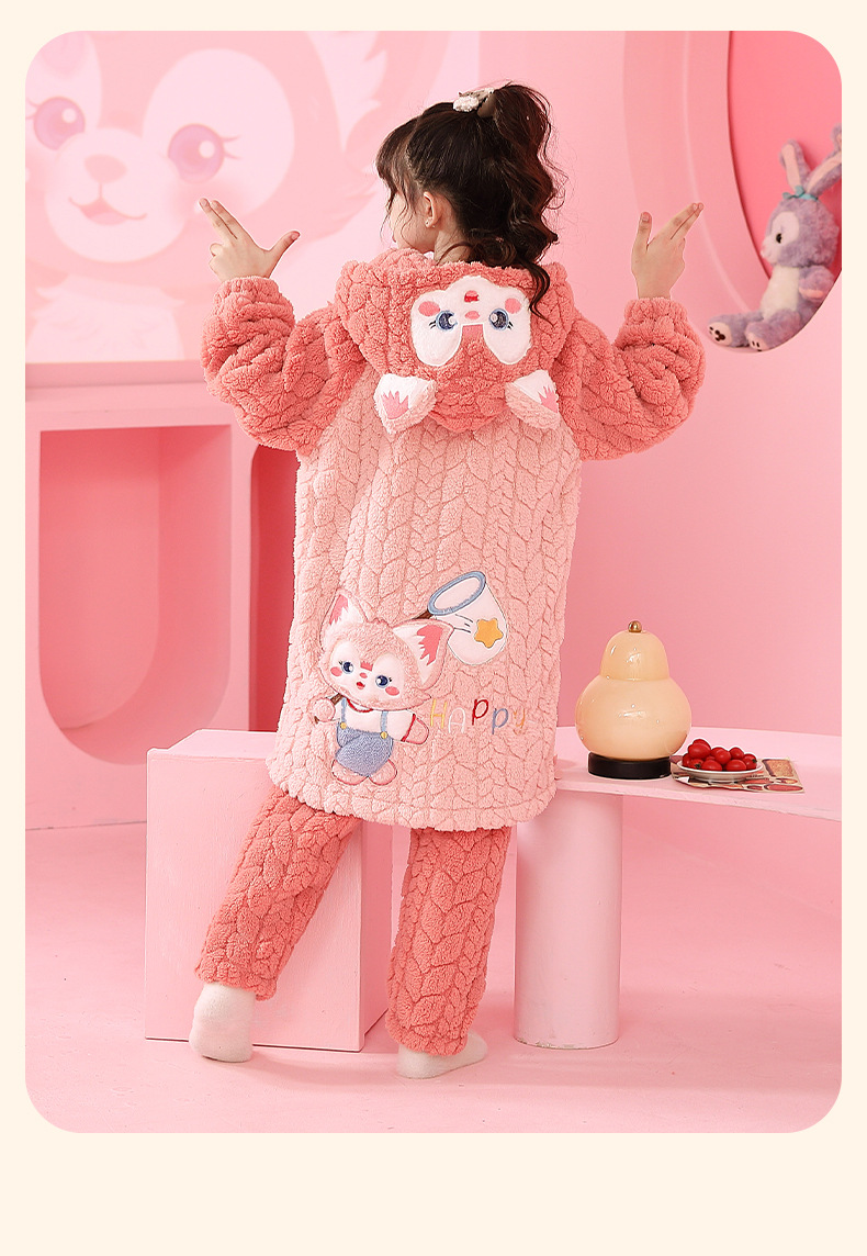 소녀 잠옷 가을과 겨울 기모 두꺼운 산호 양털 어린이 잠옷 긴 만화 귀여운 소녀 세트 겨울 스타일스토어 가기