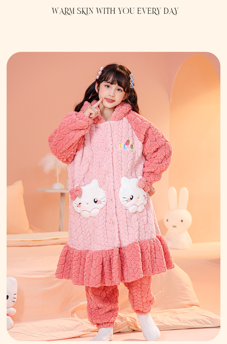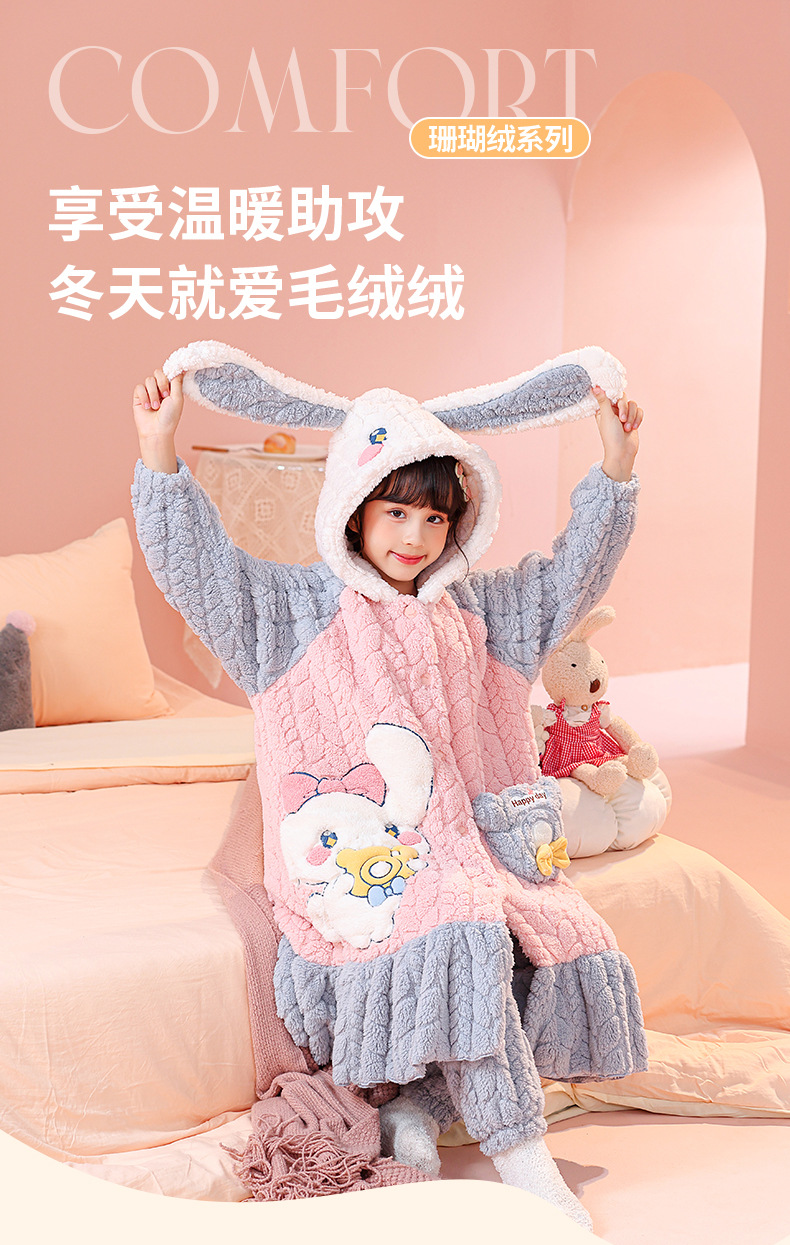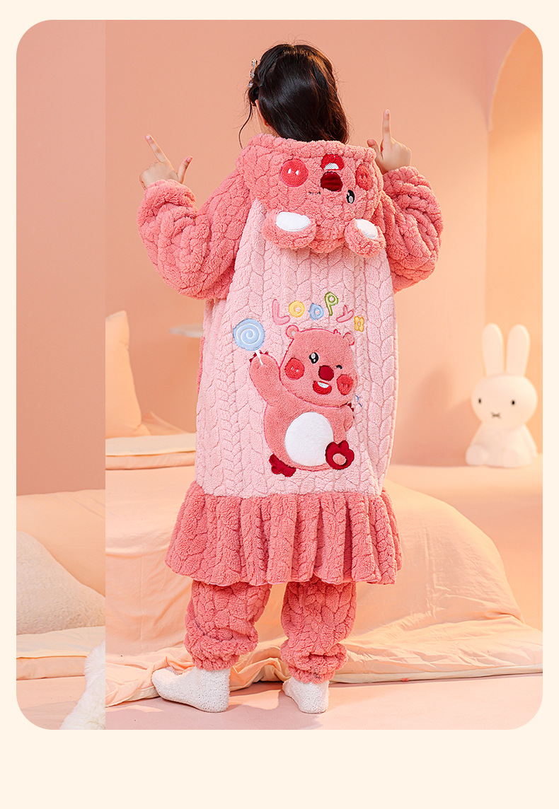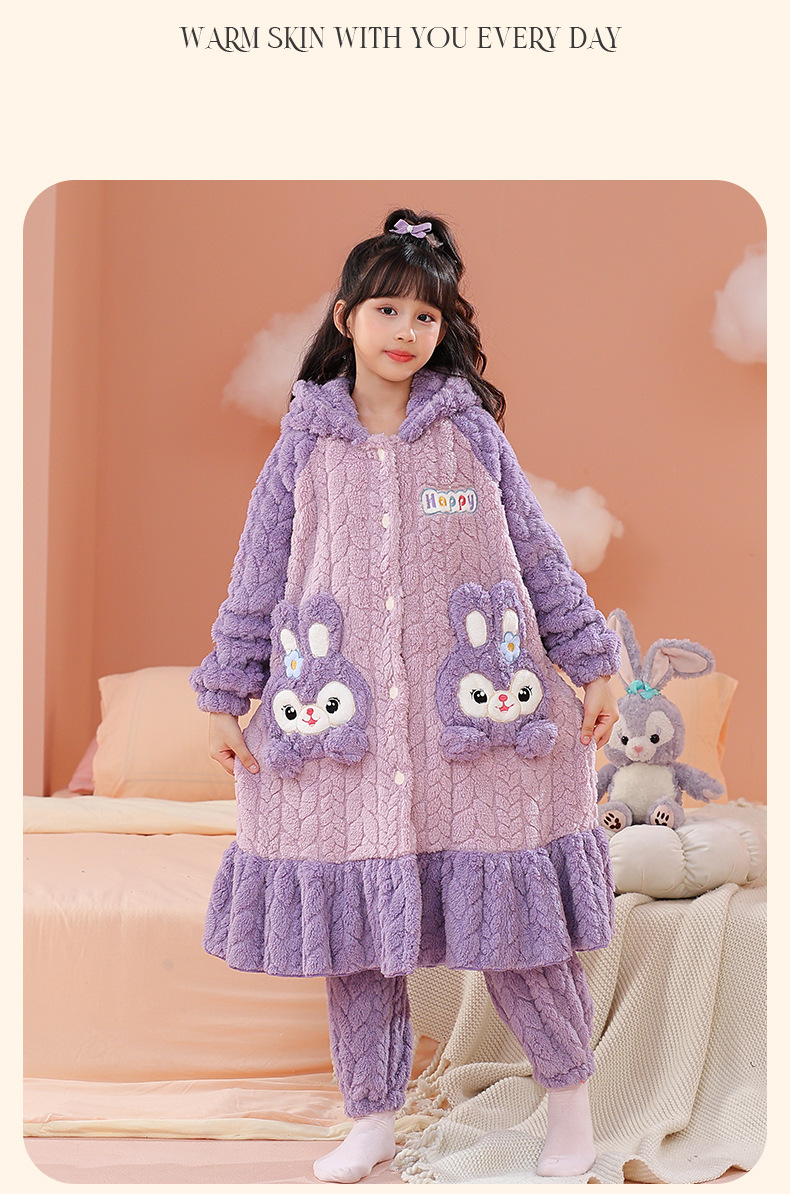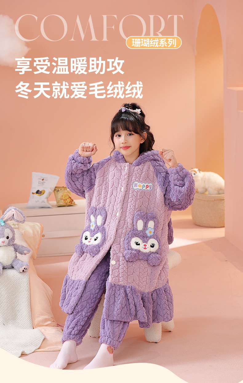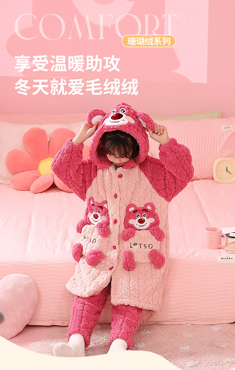 소녀 잠옷 가을과 겨울 기모 두꺼운 산호 양털 어린이 잠옷 긴 만화 귀여운 소녀 세트 겨울 스타일스토어 가기