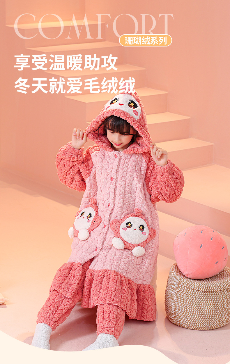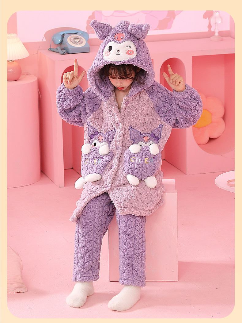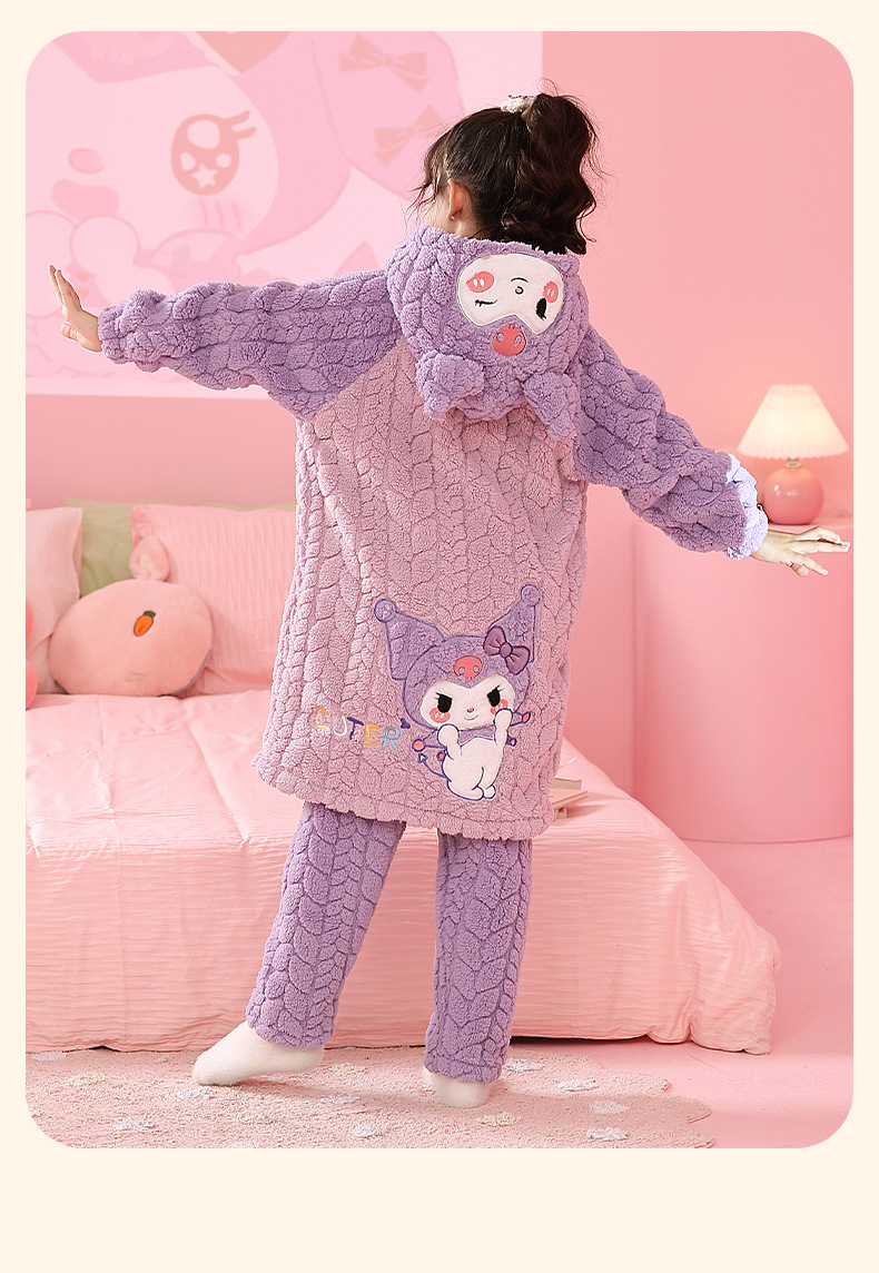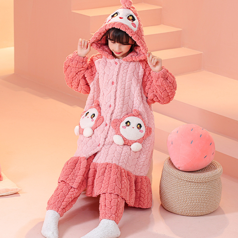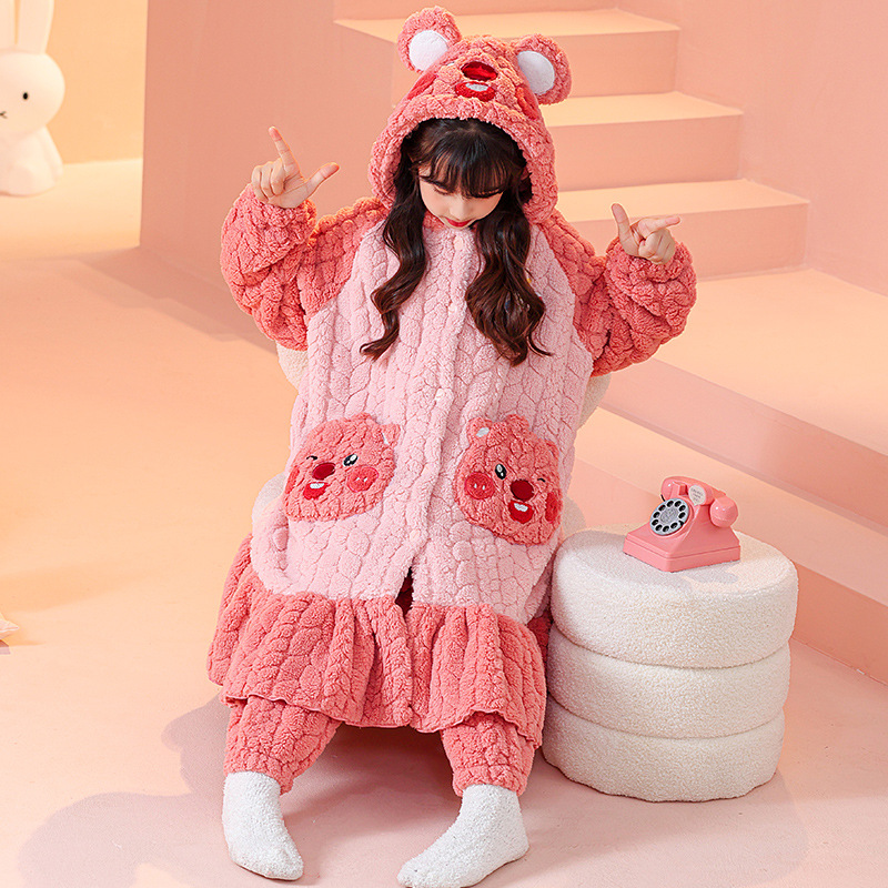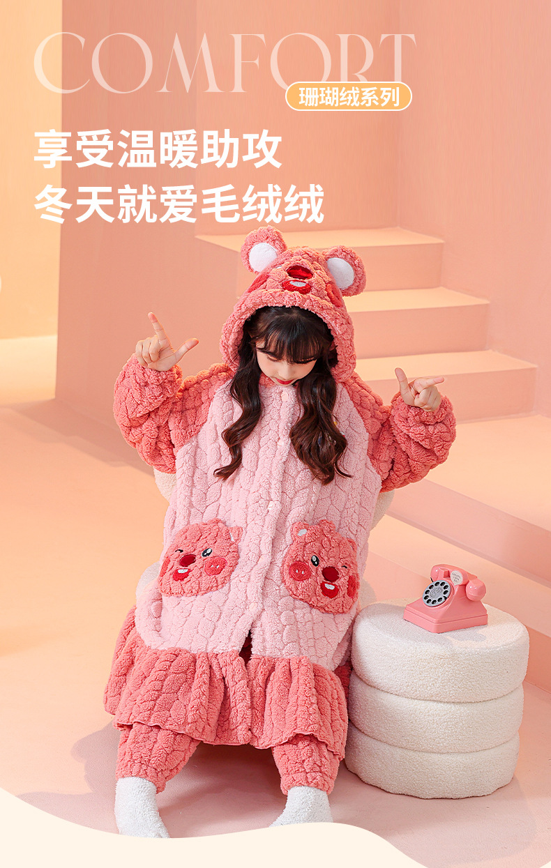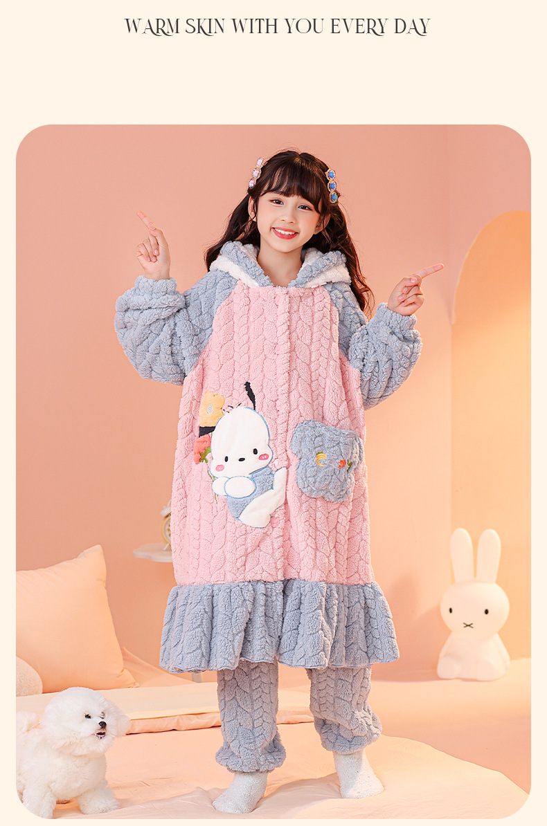 소녀 잠옷 가을과 겨울 기모 두꺼운 산호 양털 어린이 잠옷 긴 만화 귀여운 소녀 세트 겨울 스타일스토어 가기