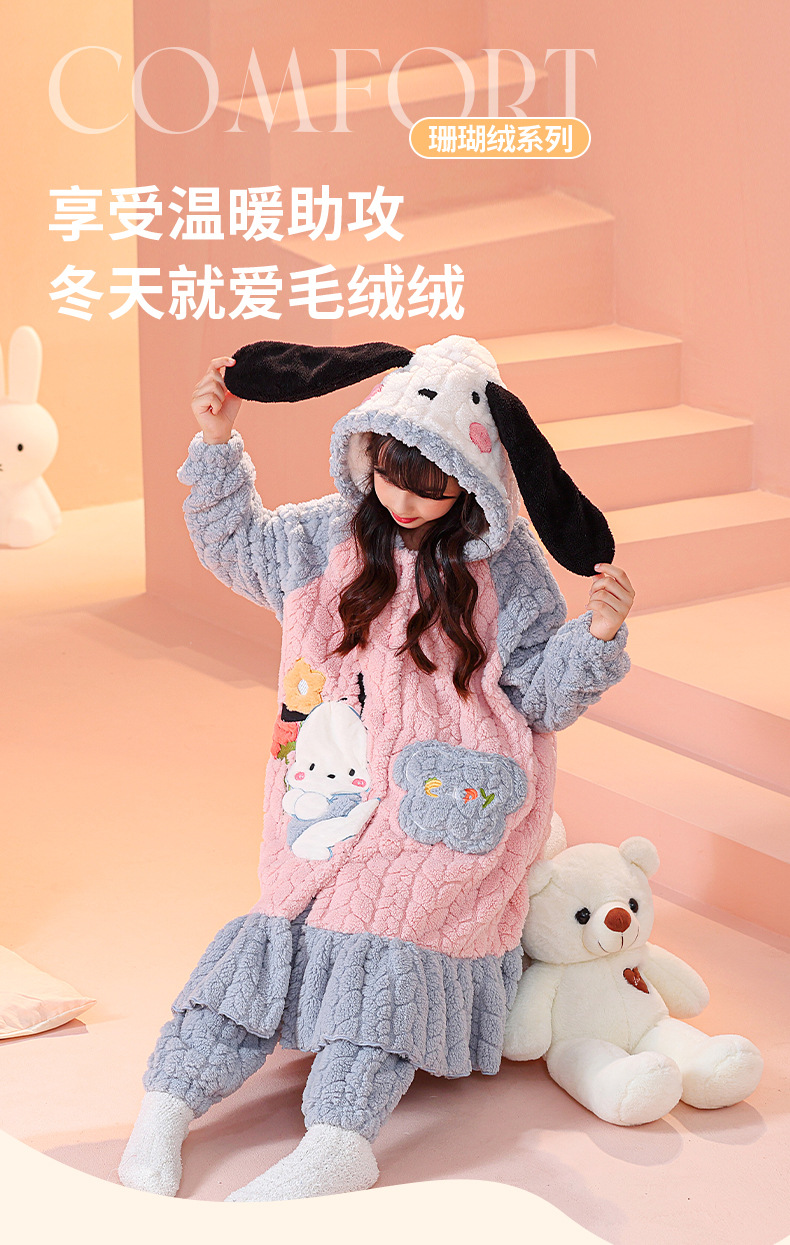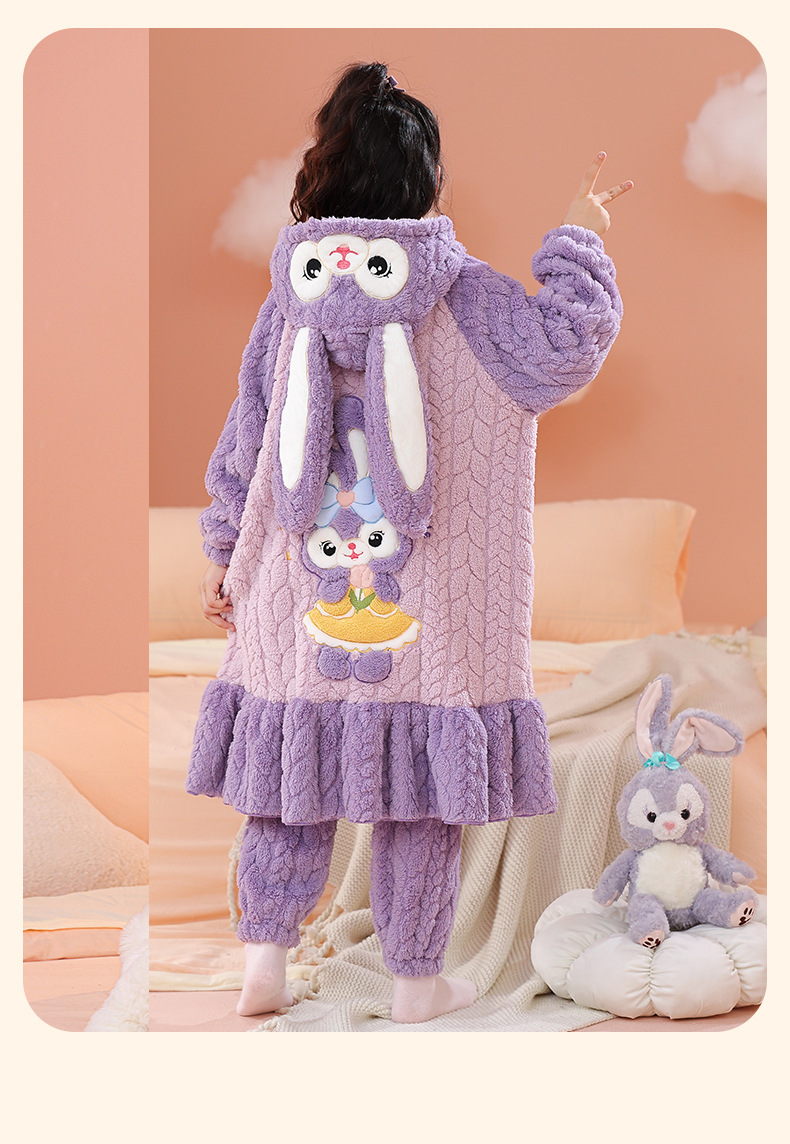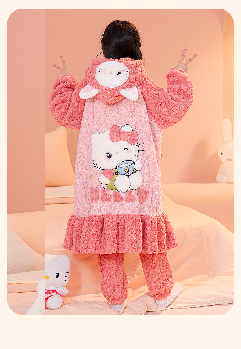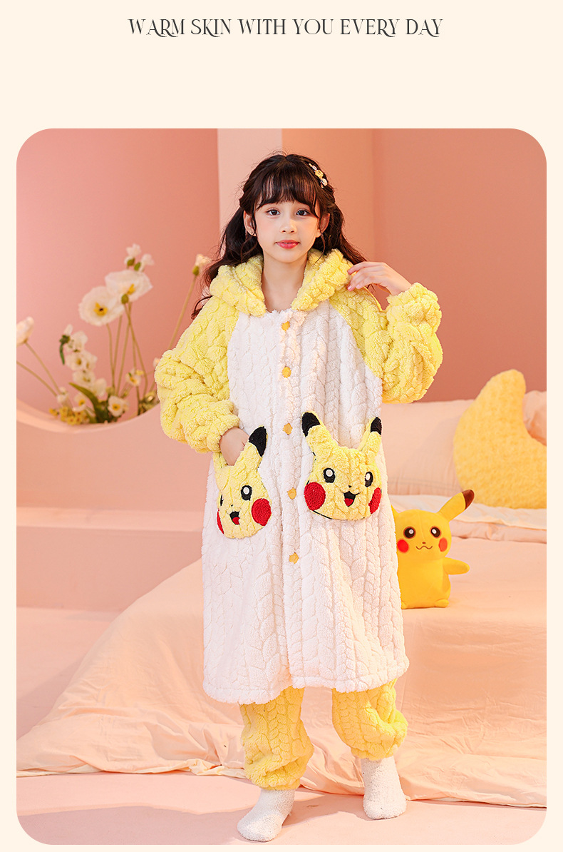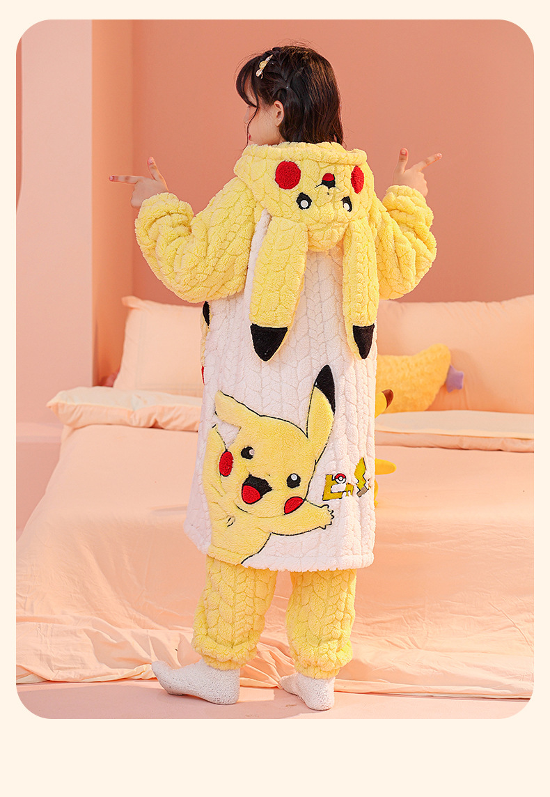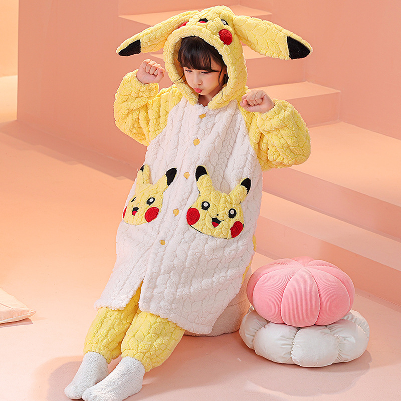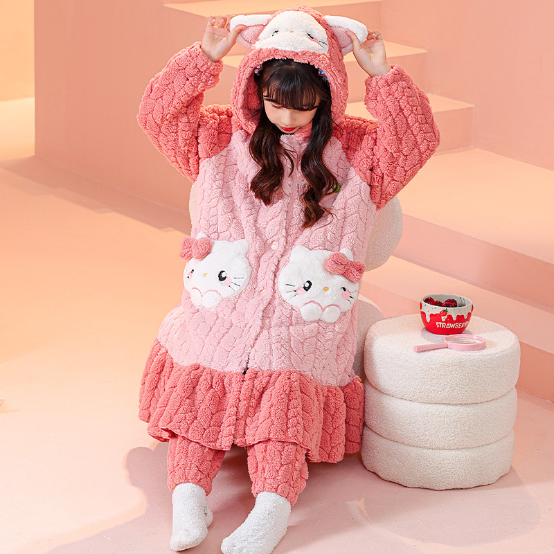 소녀 잠옷 가을과 겨울 기모 두꺼운 산호 양털 어린이 잠옷 긴 만화 귀여운 소녀 세트 겨울 스타일스토어 가기